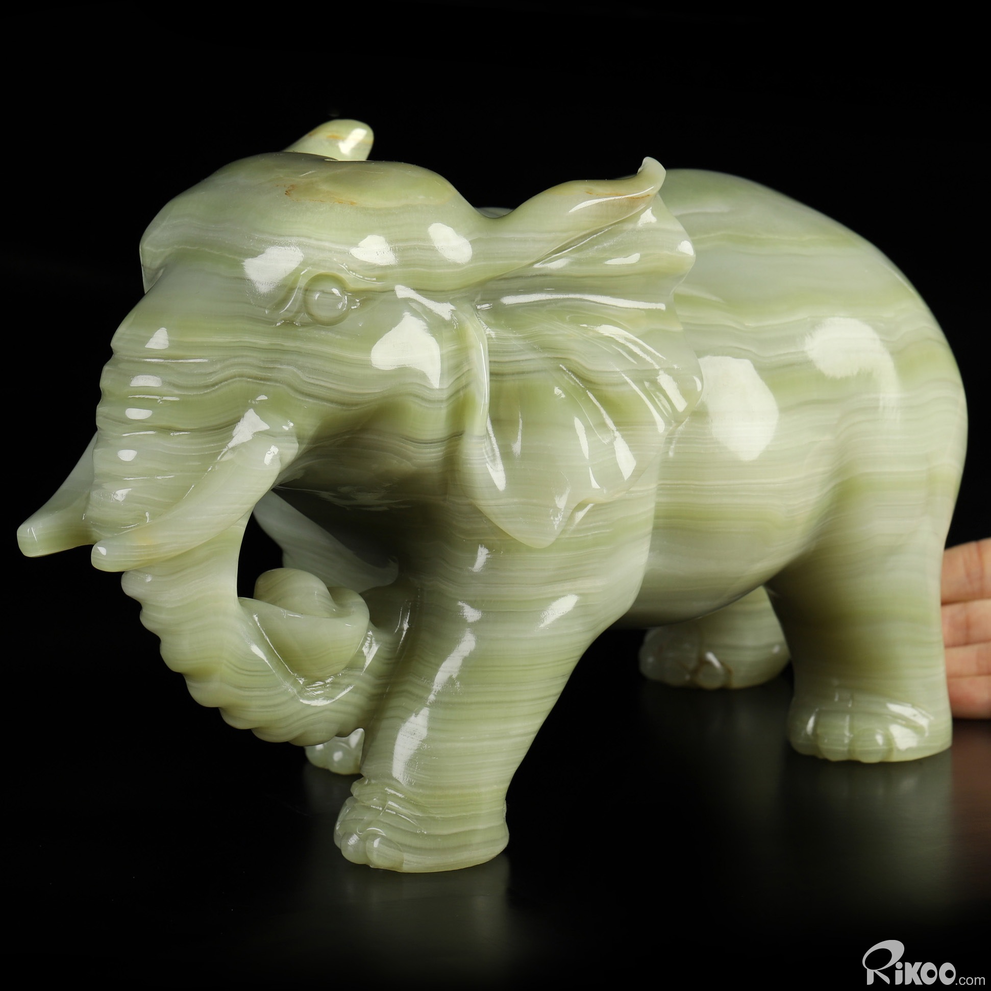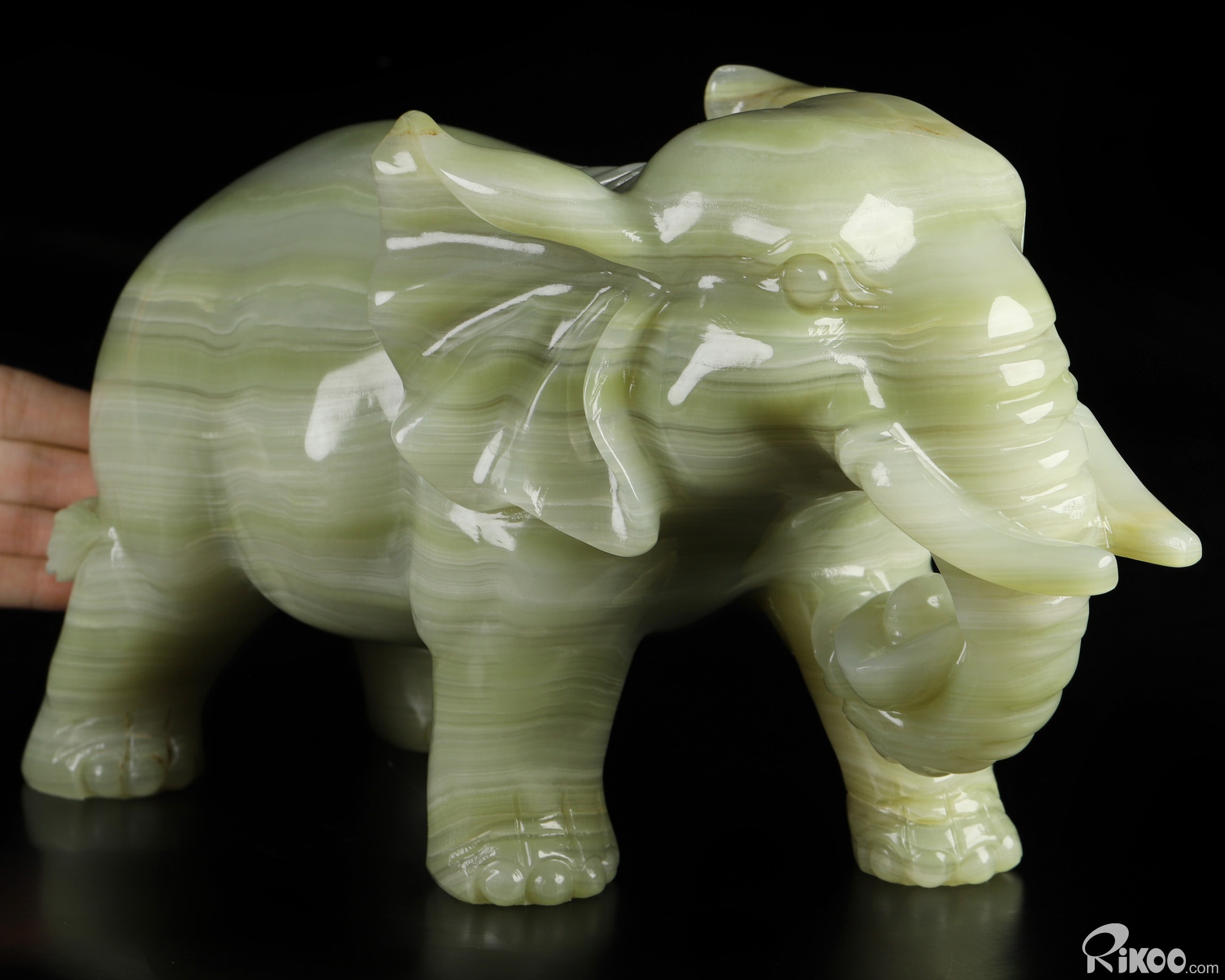 11.8" Afghanistan Jade Hand Carved Crystal Elephant Sculpture, Crystal Healing