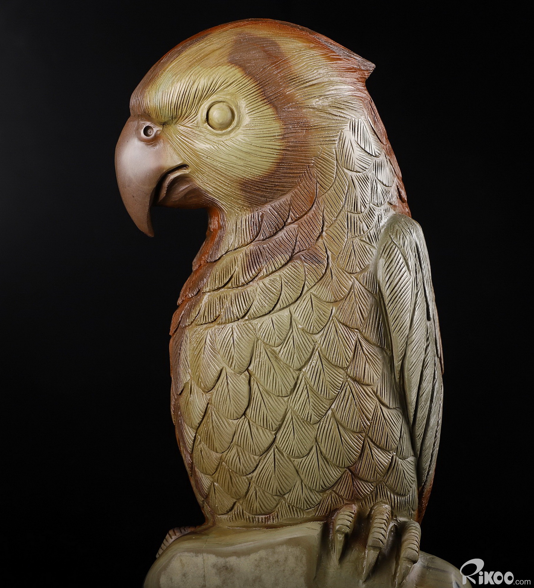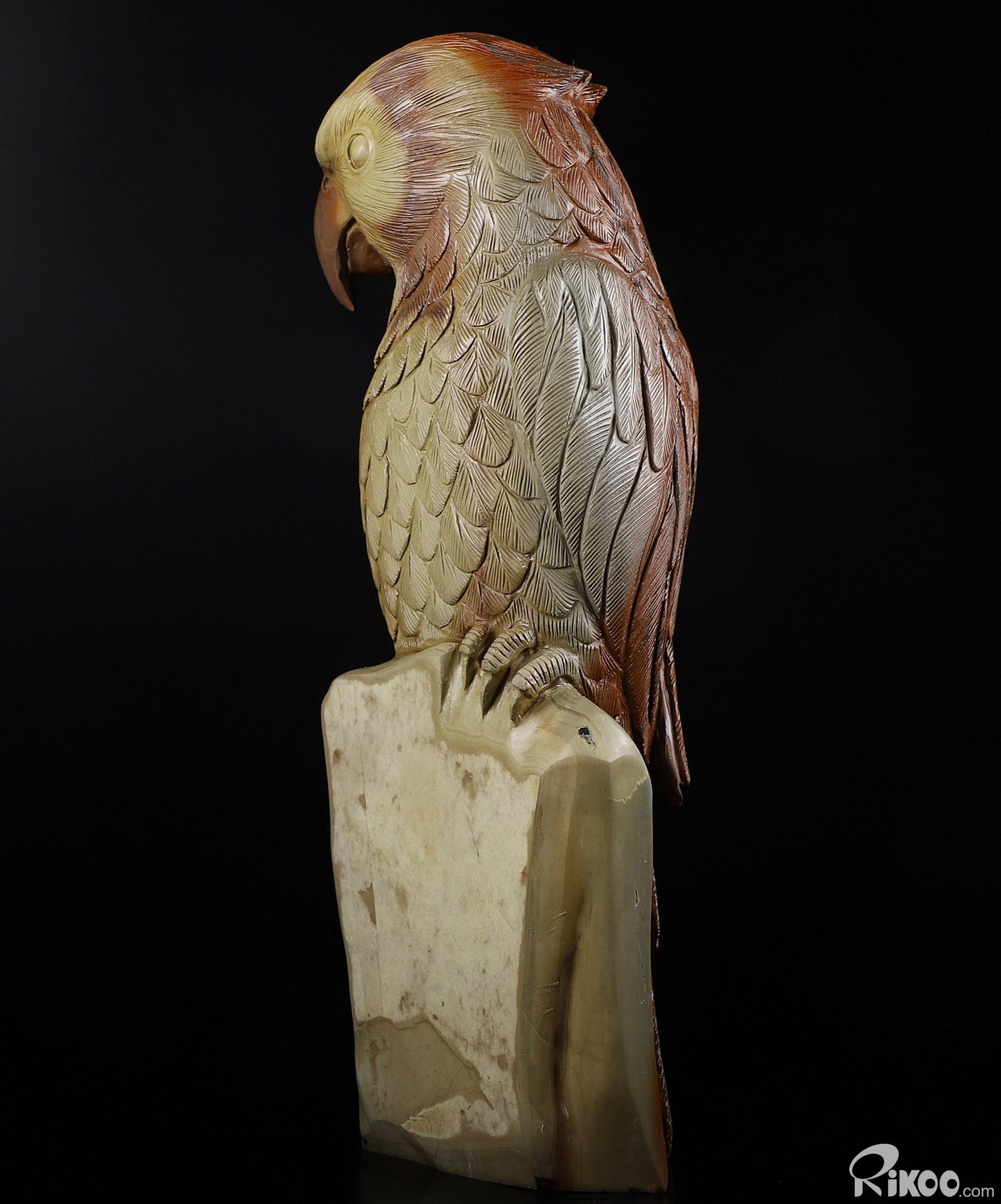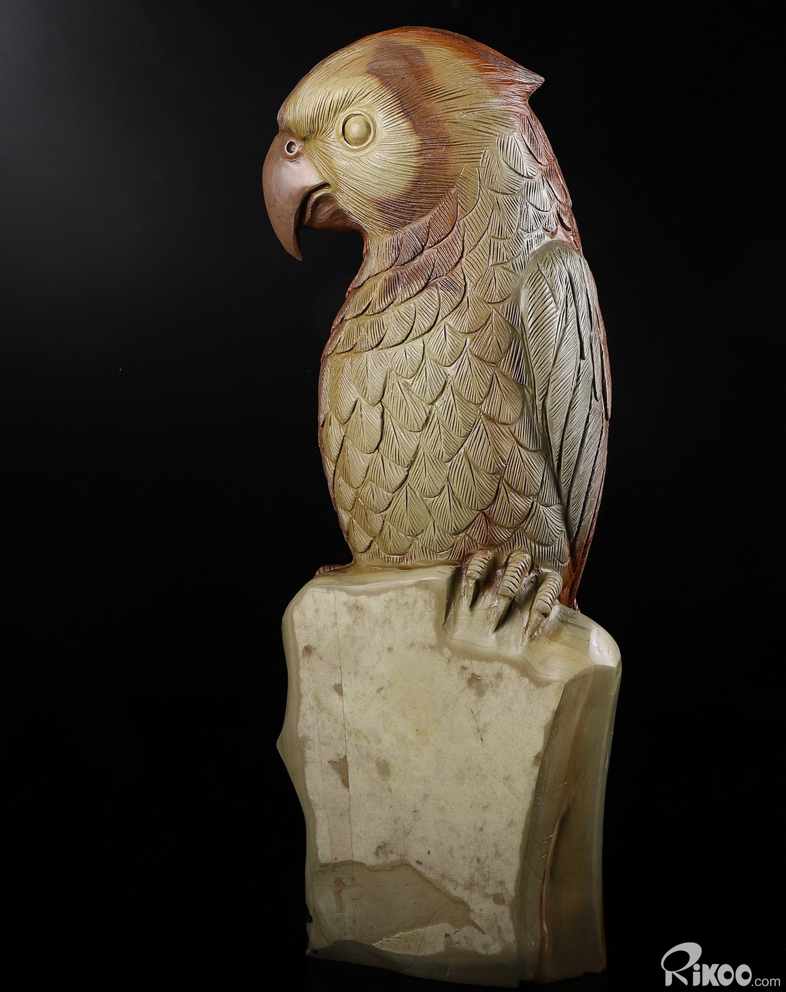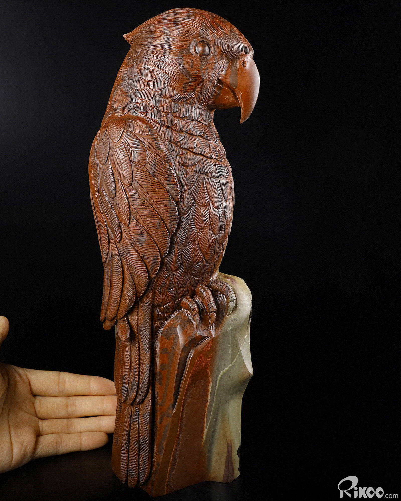 Giant 12.0" Australian Print Stone Carved Crystal Parrot Cockatoo Bird Sculpture, Crystal Healing