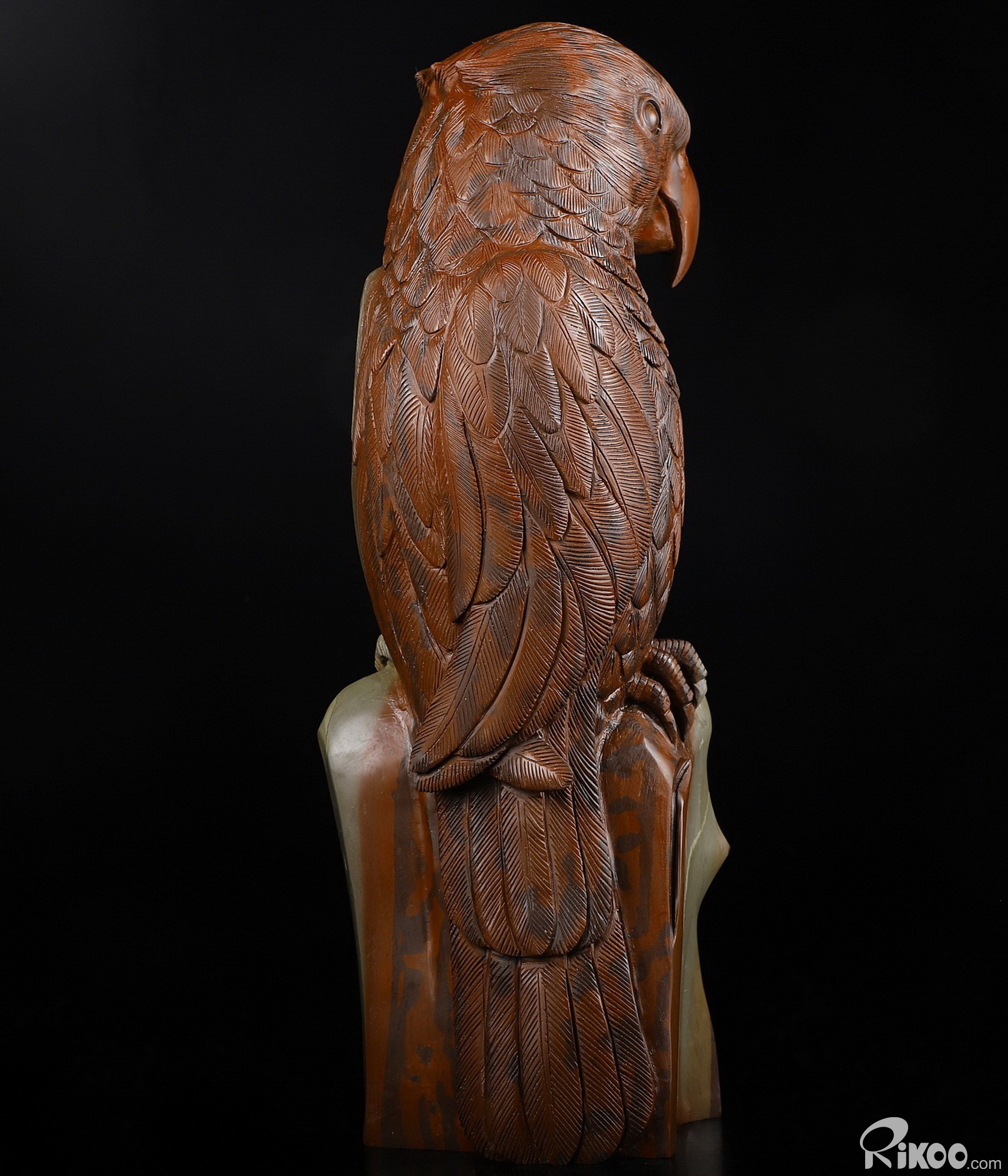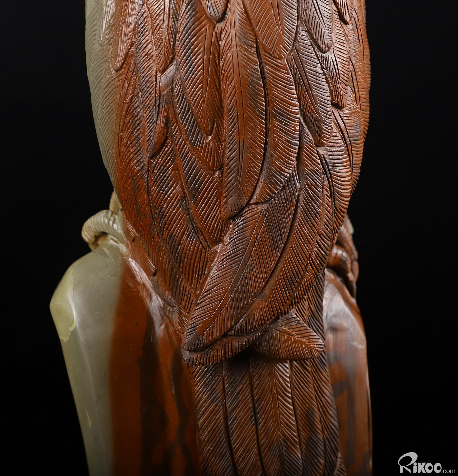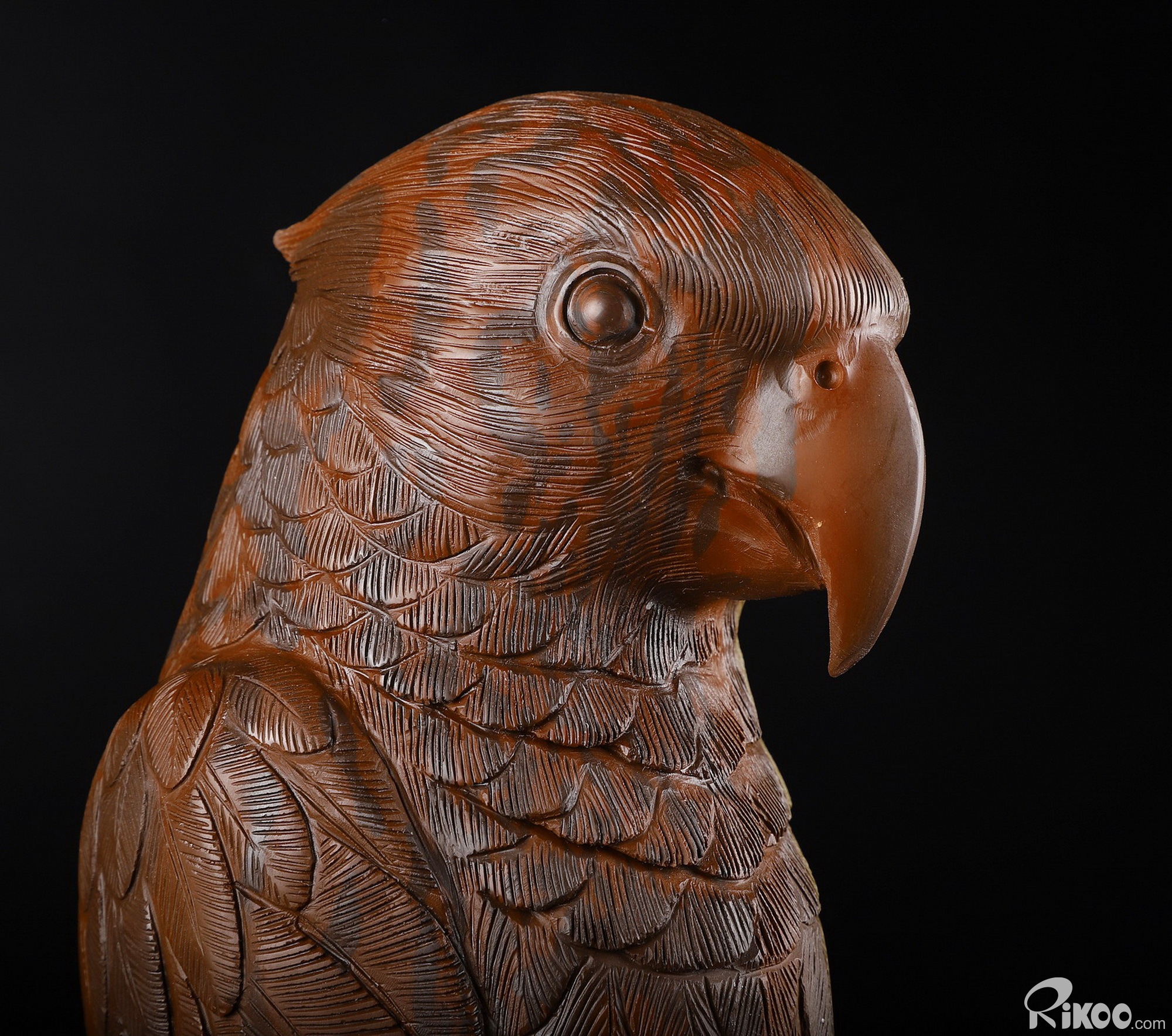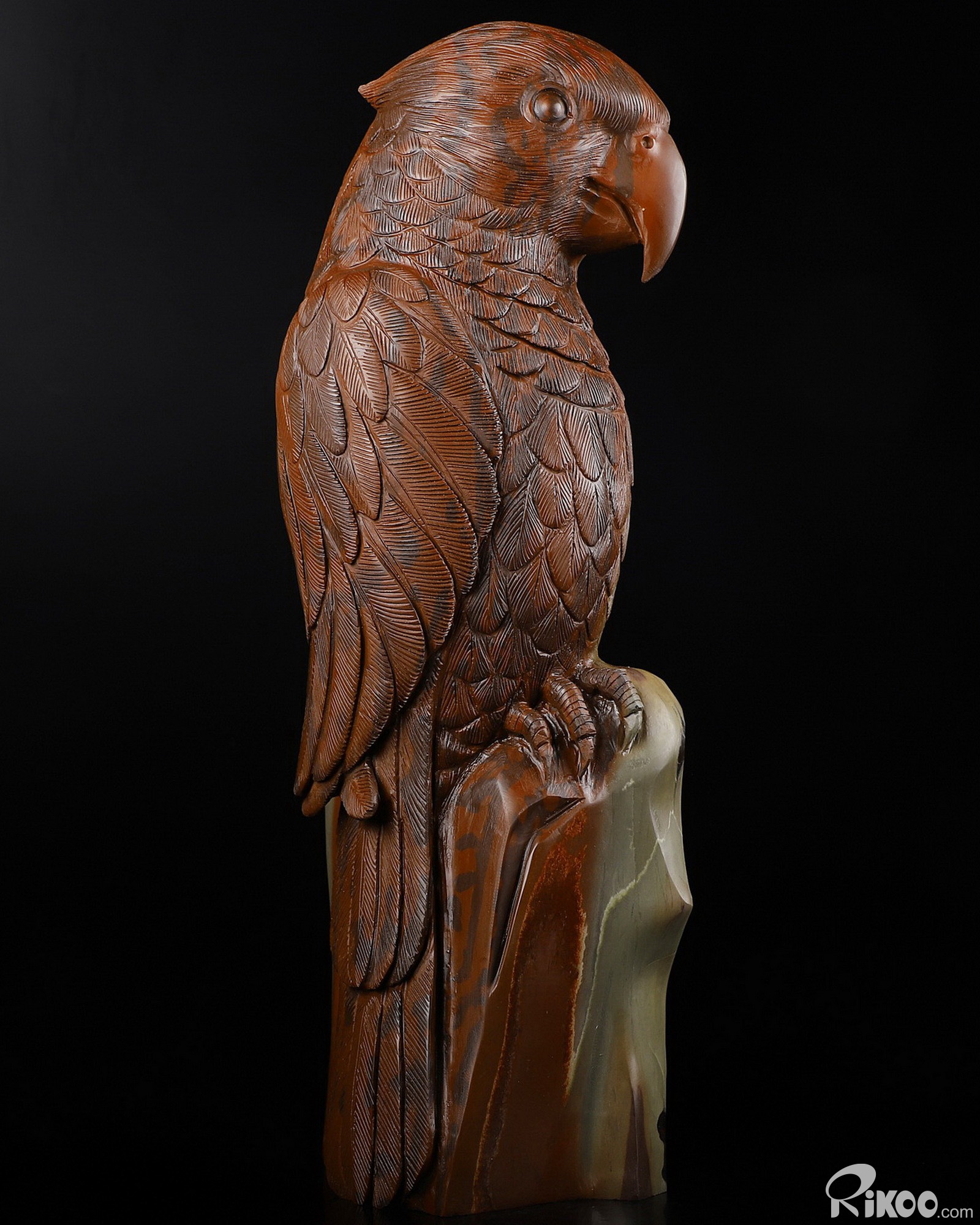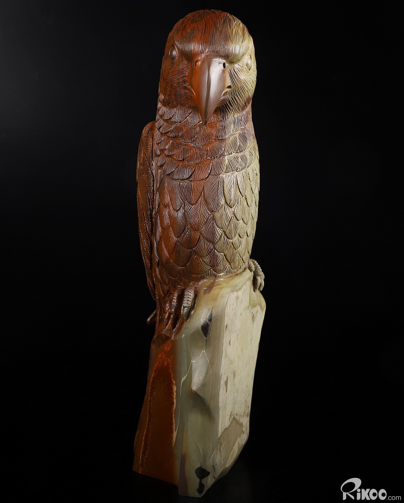 Giant 12.0" Australian Print Stone Carved Crystal Parrot Cockatoo Bird Sculpture, Crystal Healing
