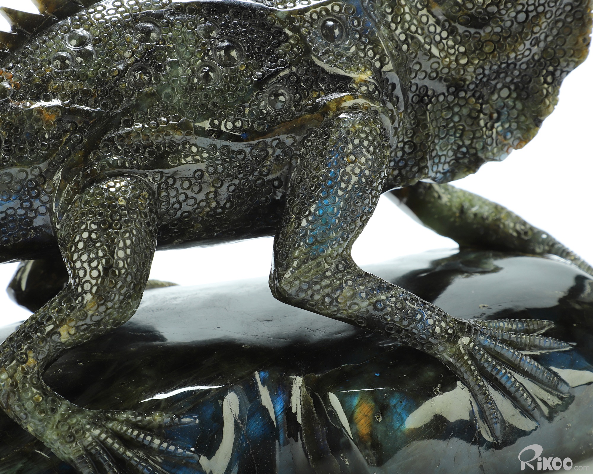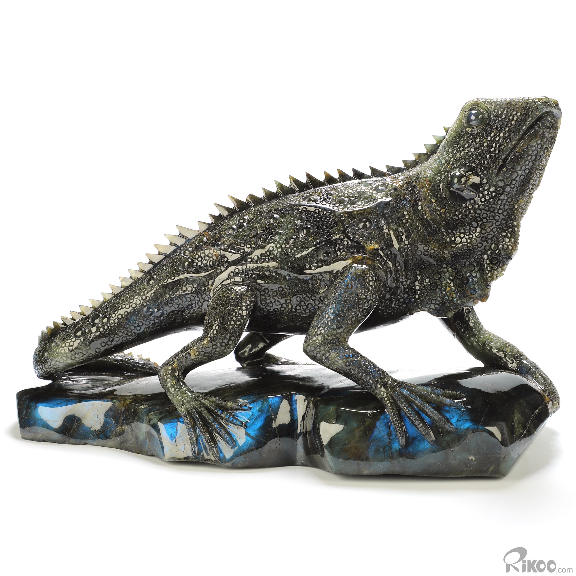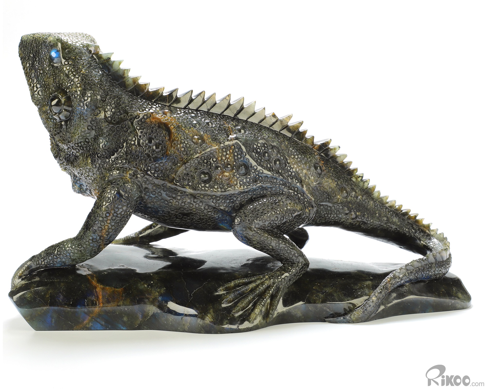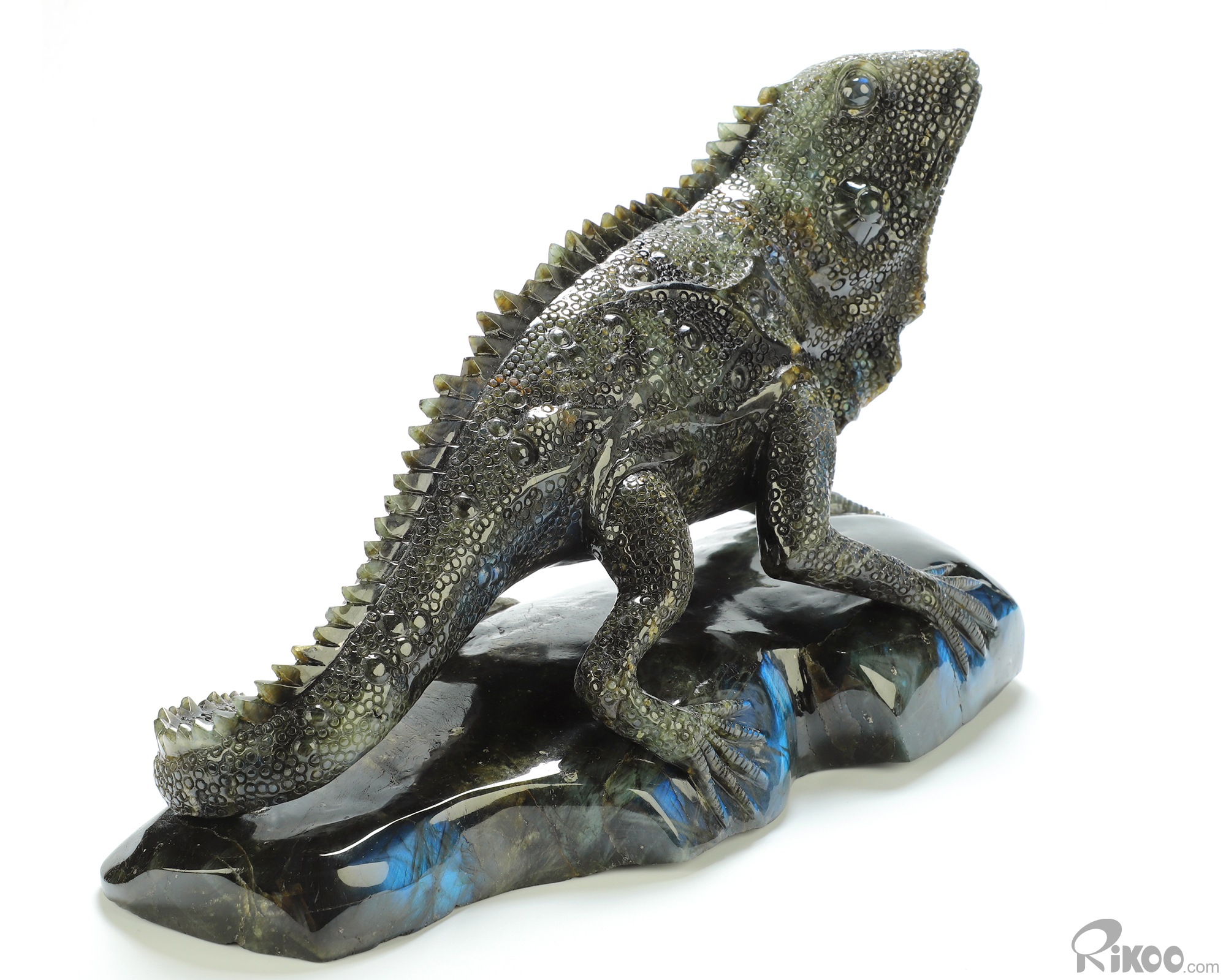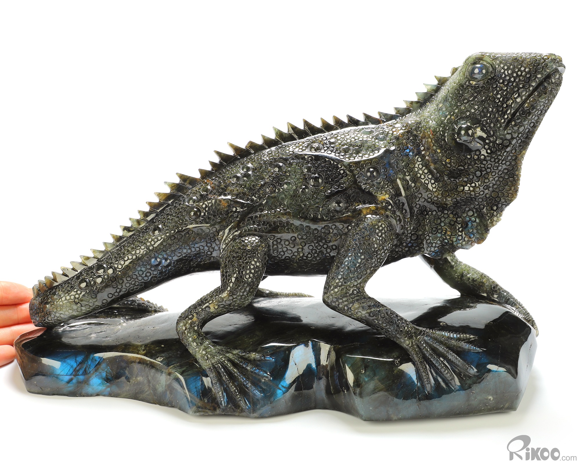 12.2" Labradorite Hand Carved Crystal Lizard Sculpture, Crystal Healing