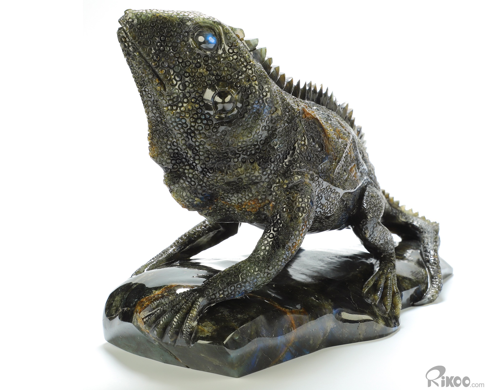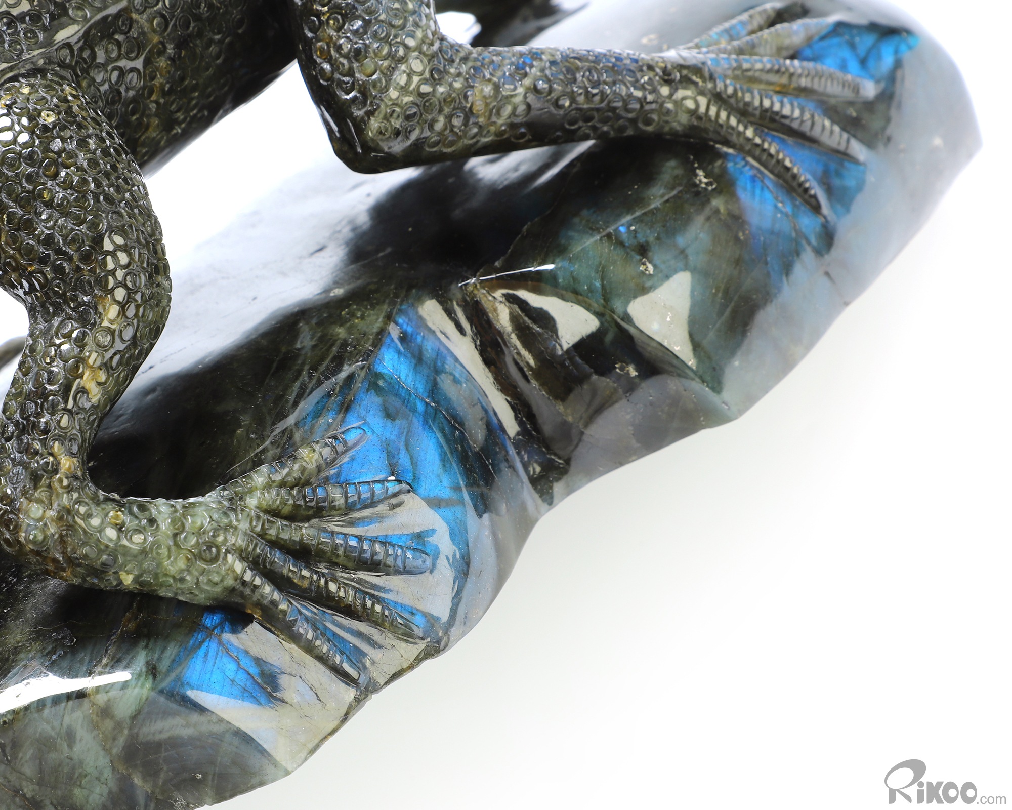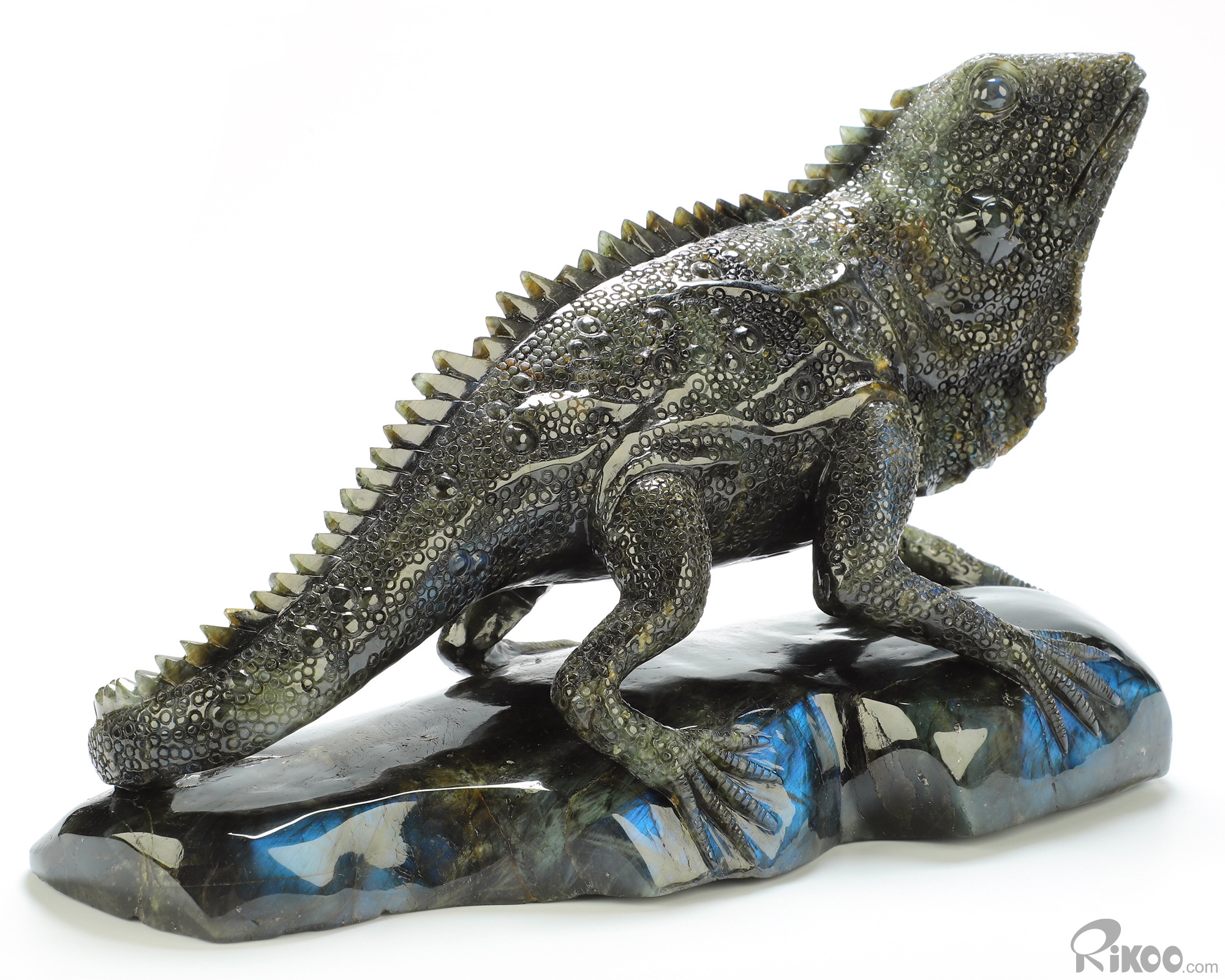 You are looking at a Labradorite sculpture. The sculpture is 12.2 inches long.