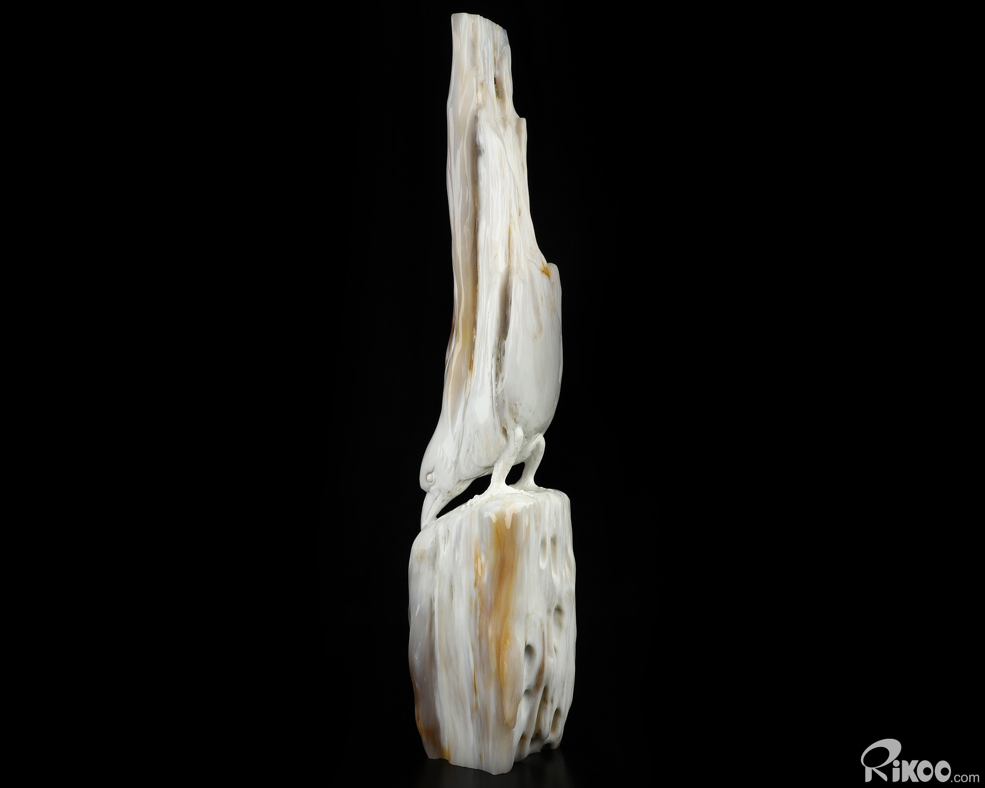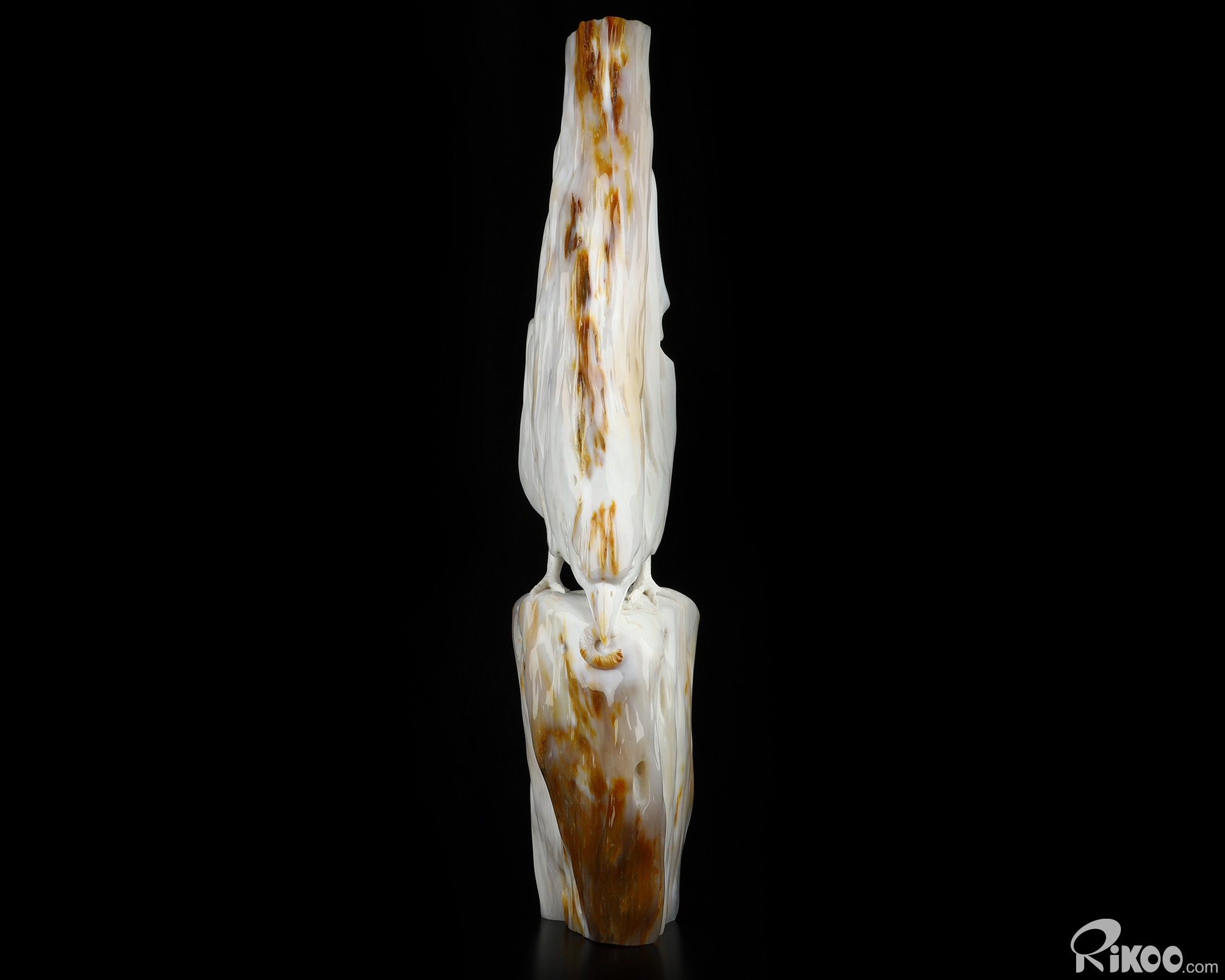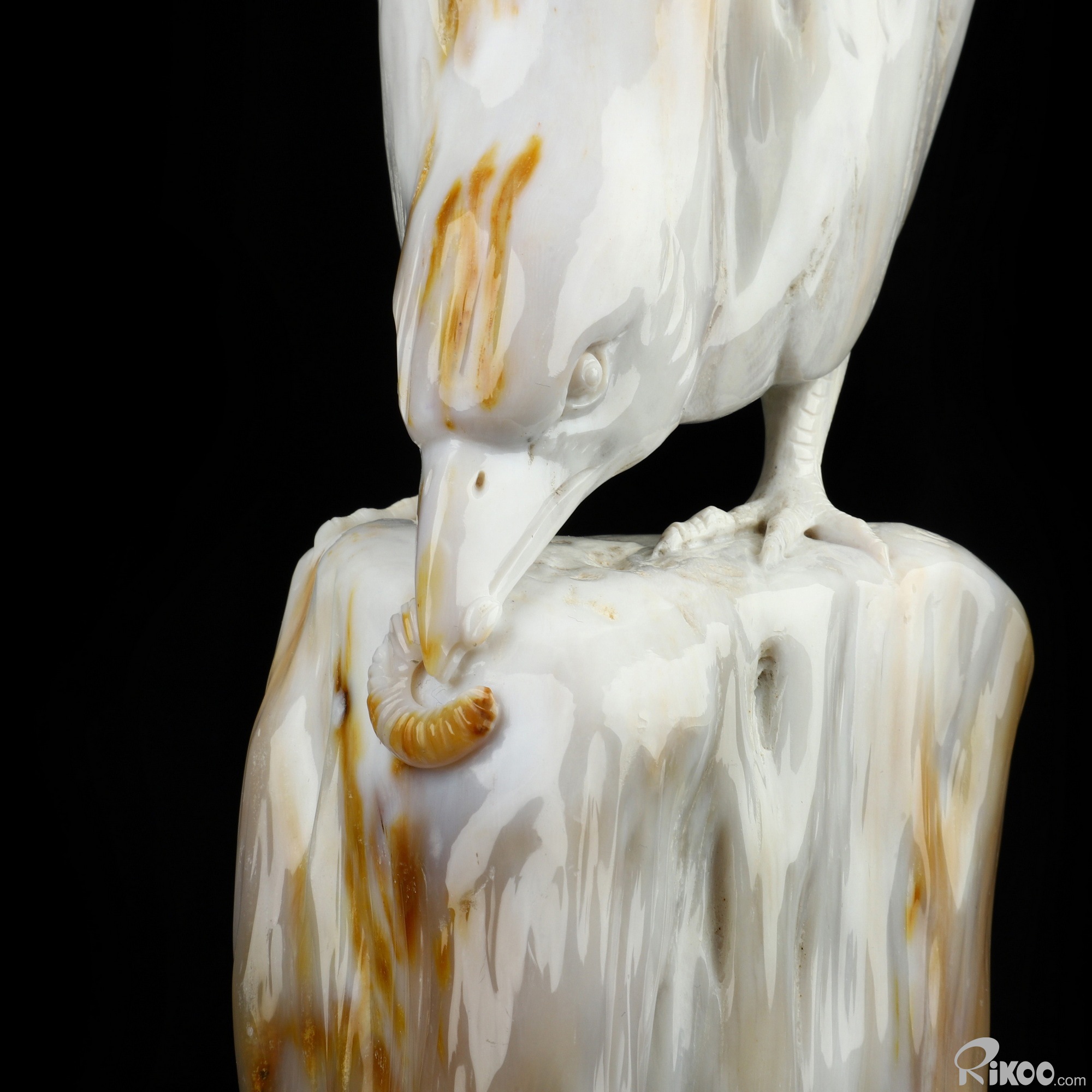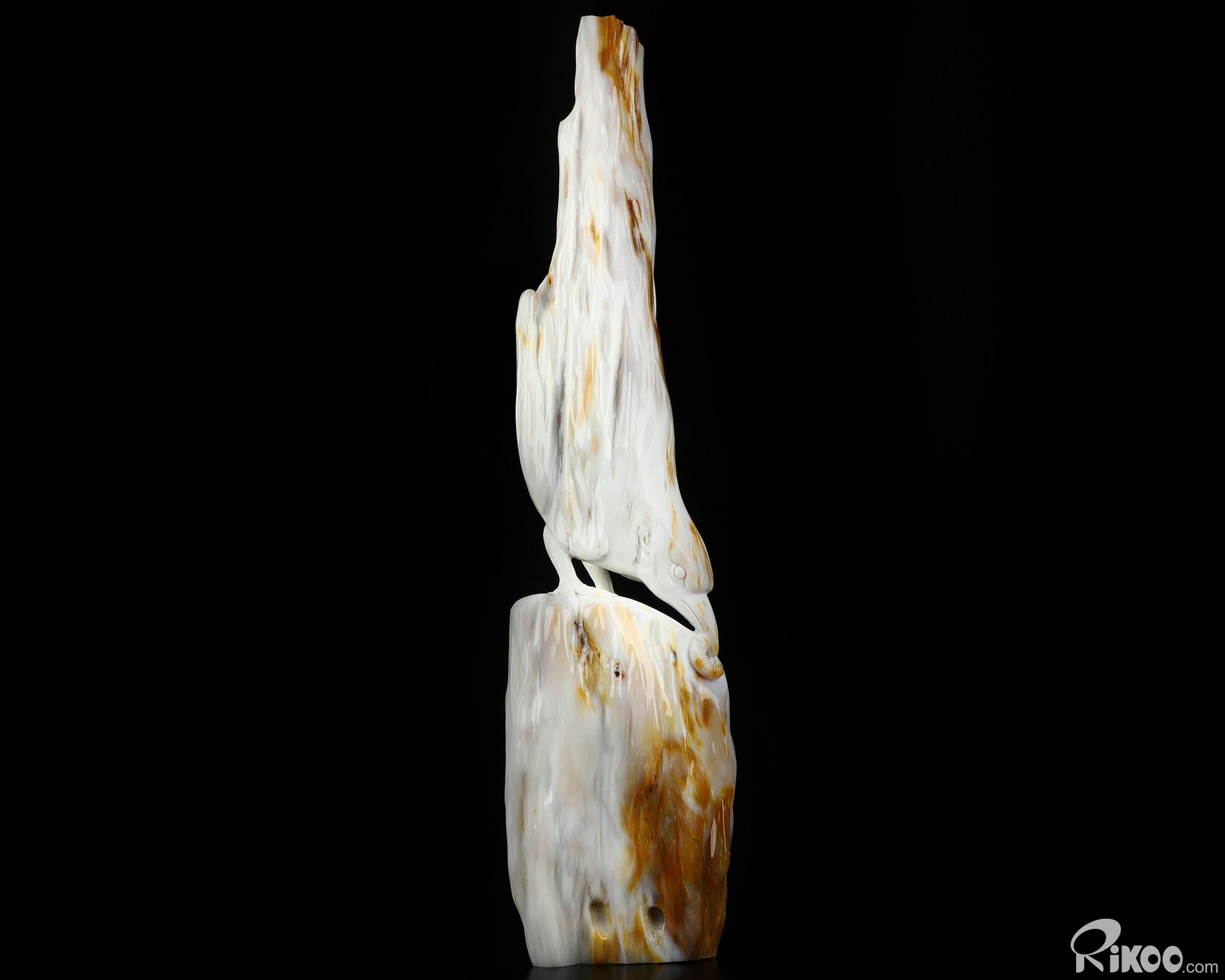 17.1" Petrified Wood Hand Carved Crystal Bird Sculpture, Crystal Healing