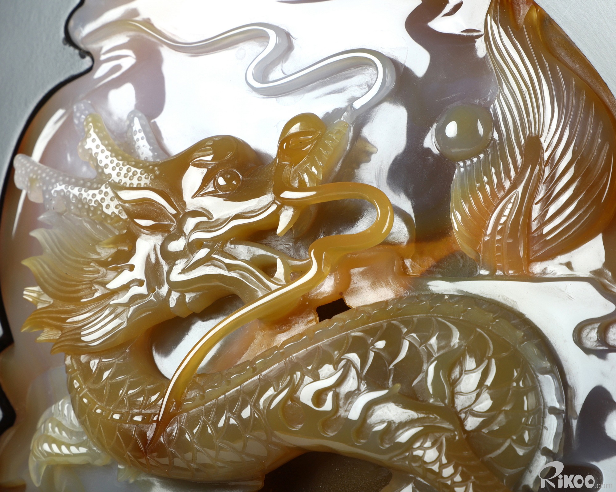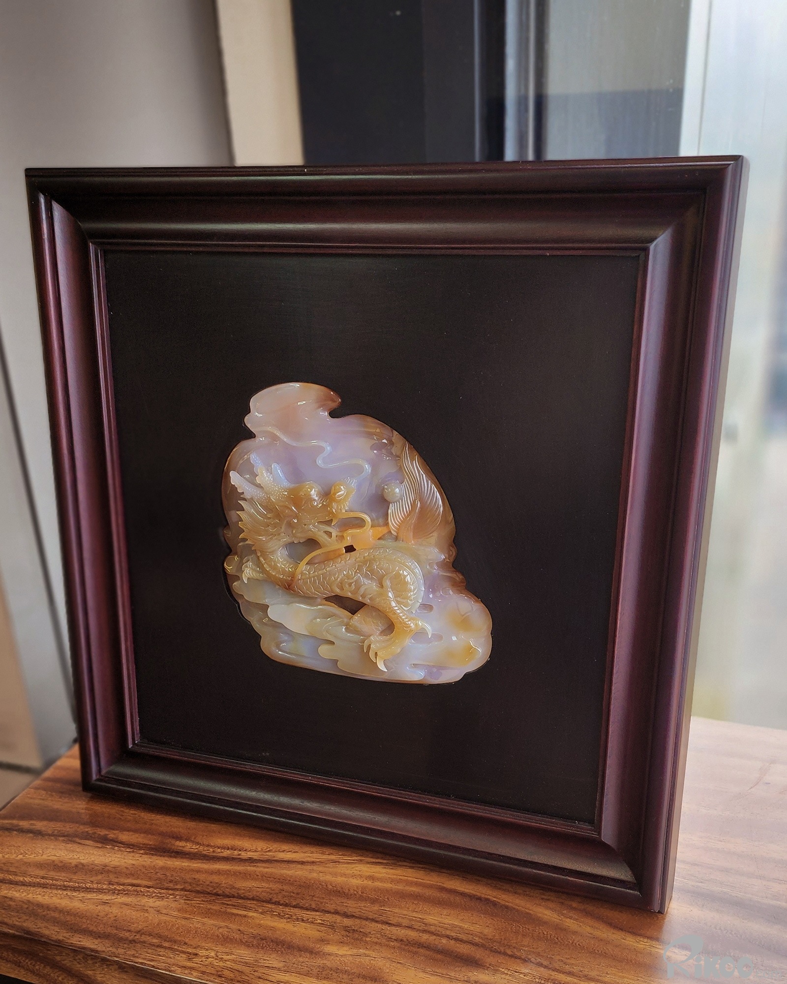 17.6" Agate Carved Framed Crystal Dragon Sculpture, Crystal Healing