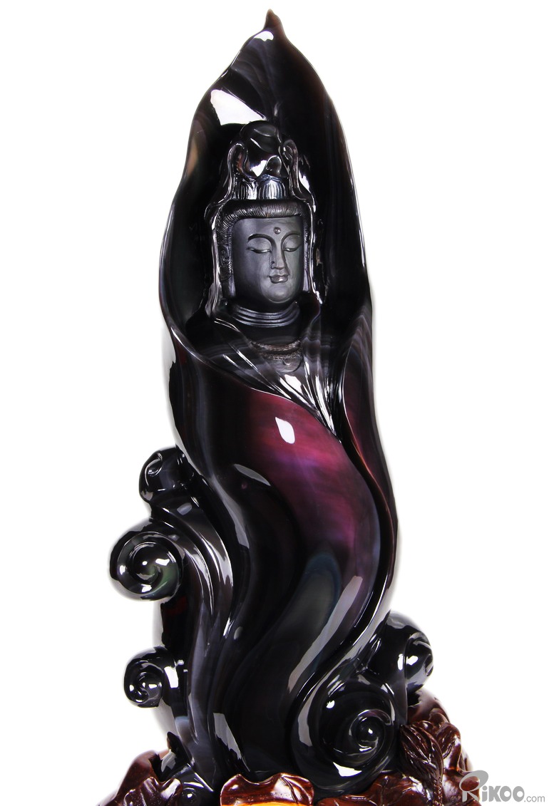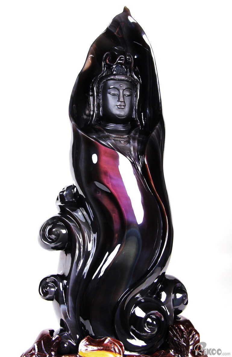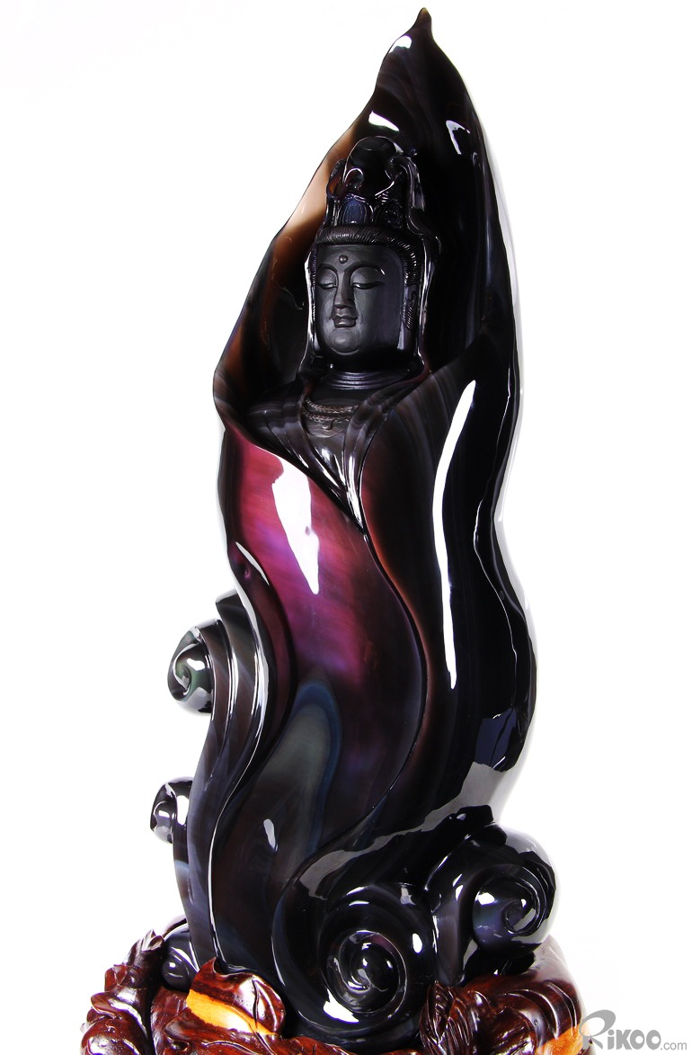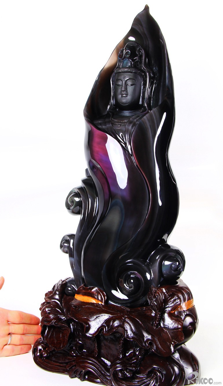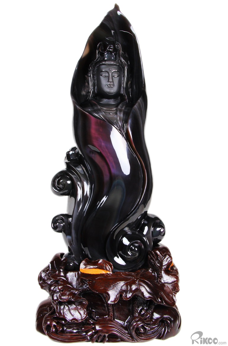 19.7" Rainbow Obsidian Hand Carved Crystal Kwan-yin Sculpture, Crystal Healing