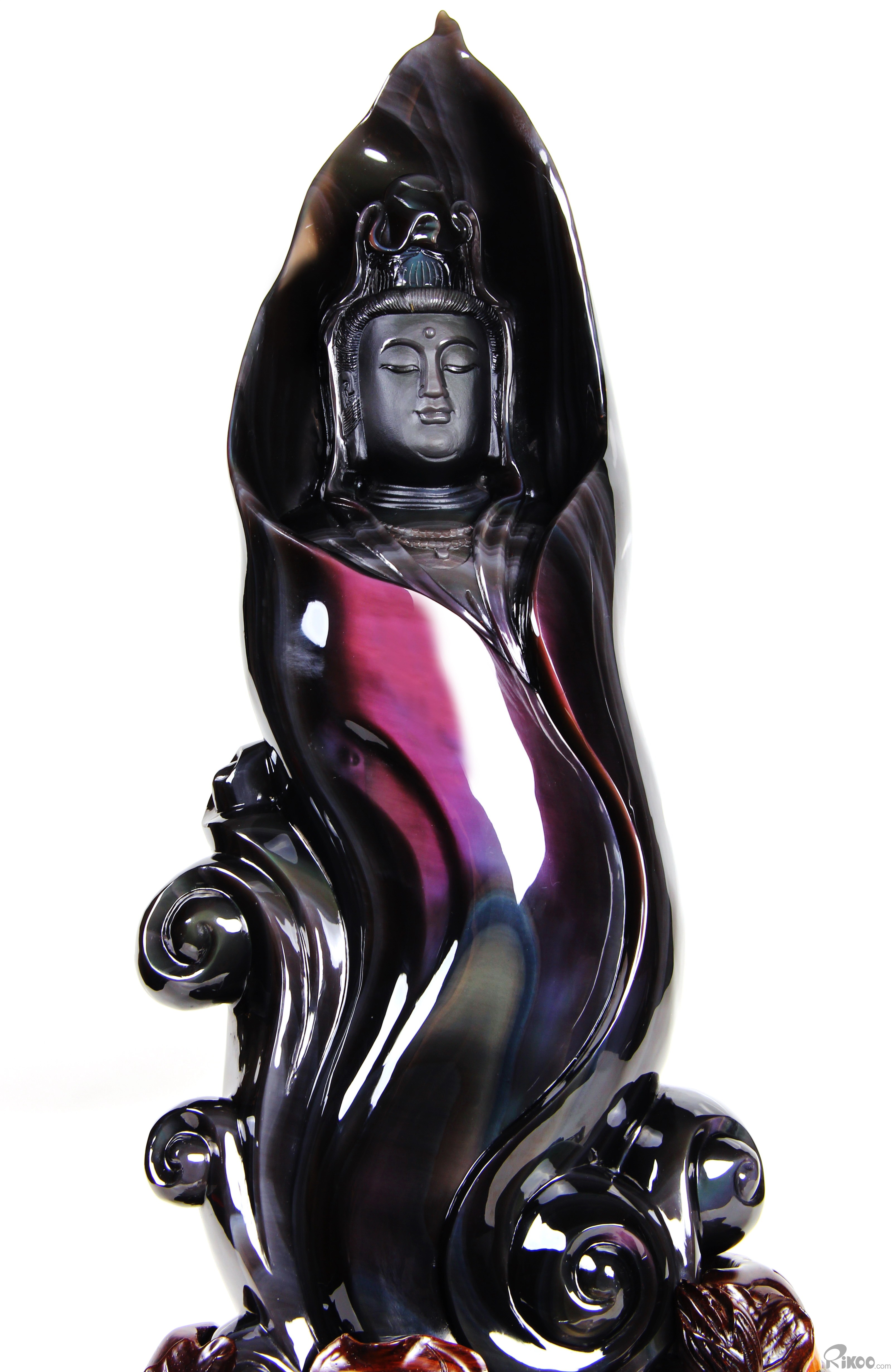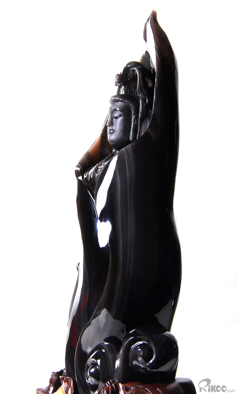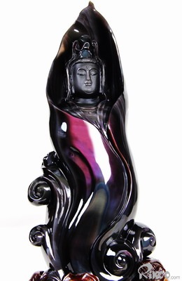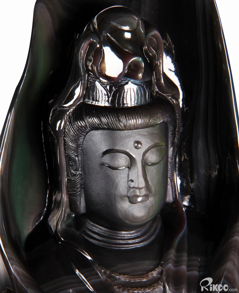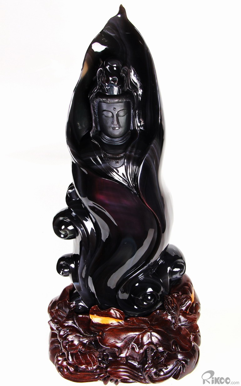 19.7" Rainbow Obsidian Hand Carved Crystal Kwan-yin Sculpture, Crystal Healing