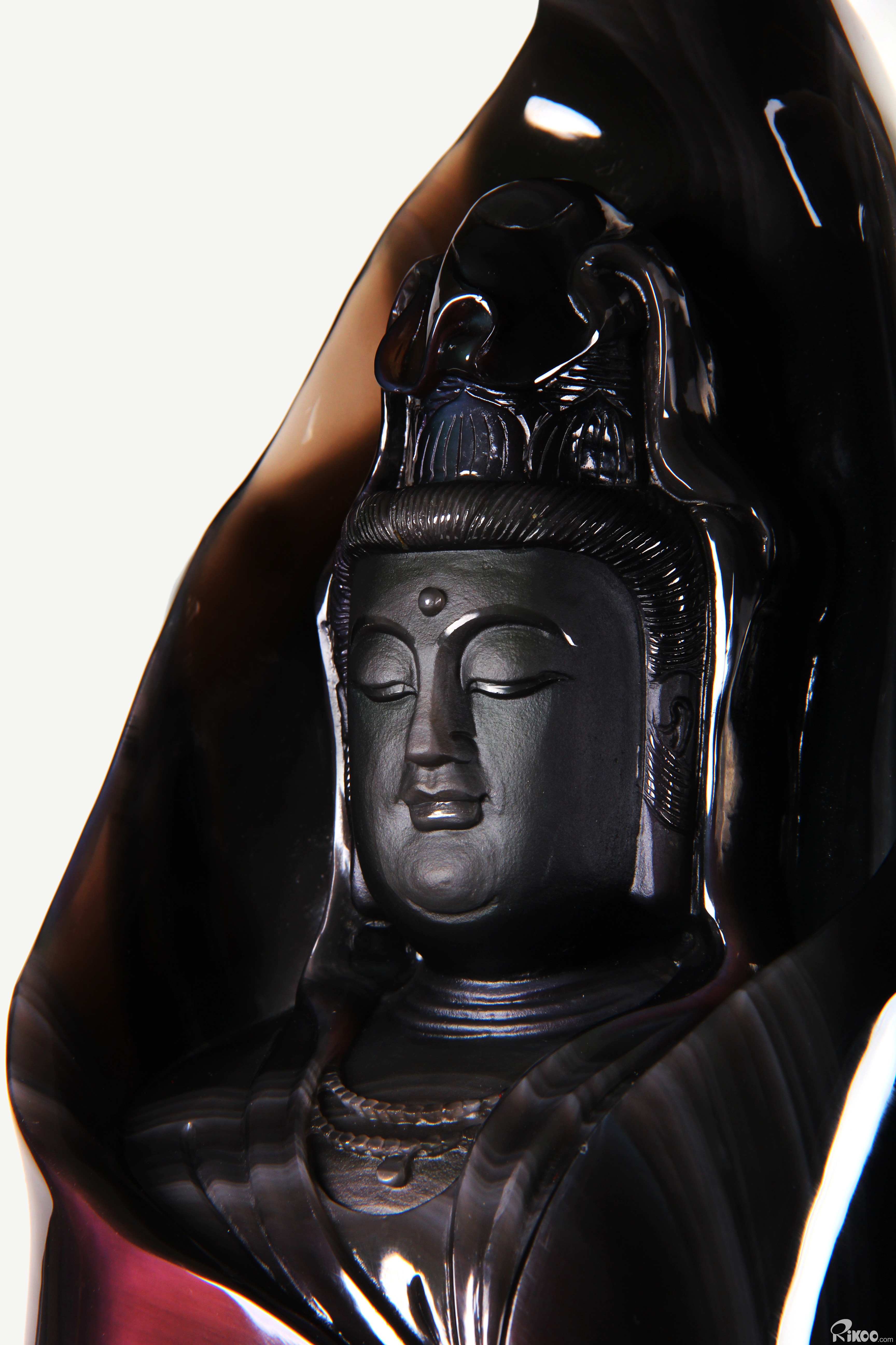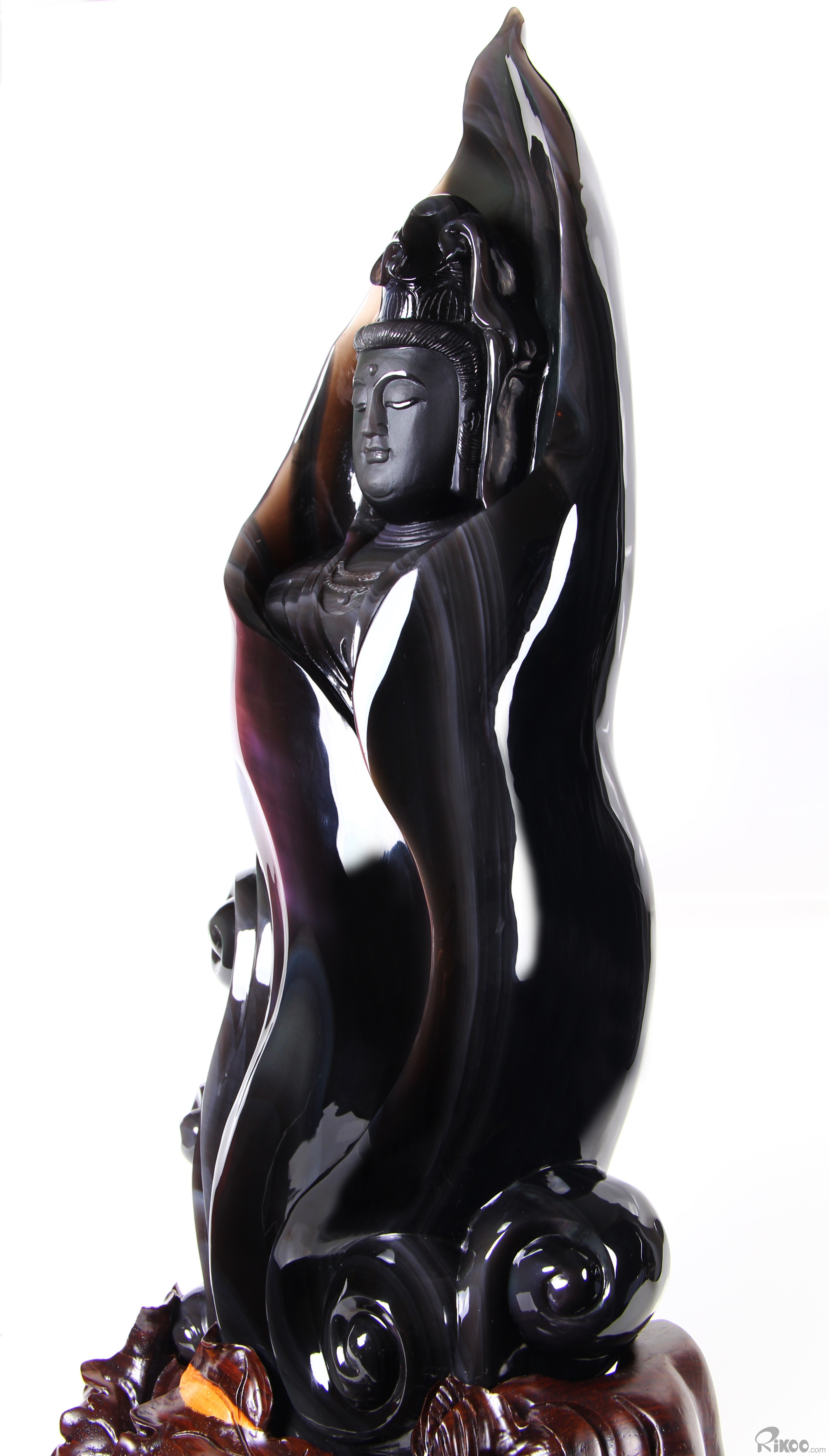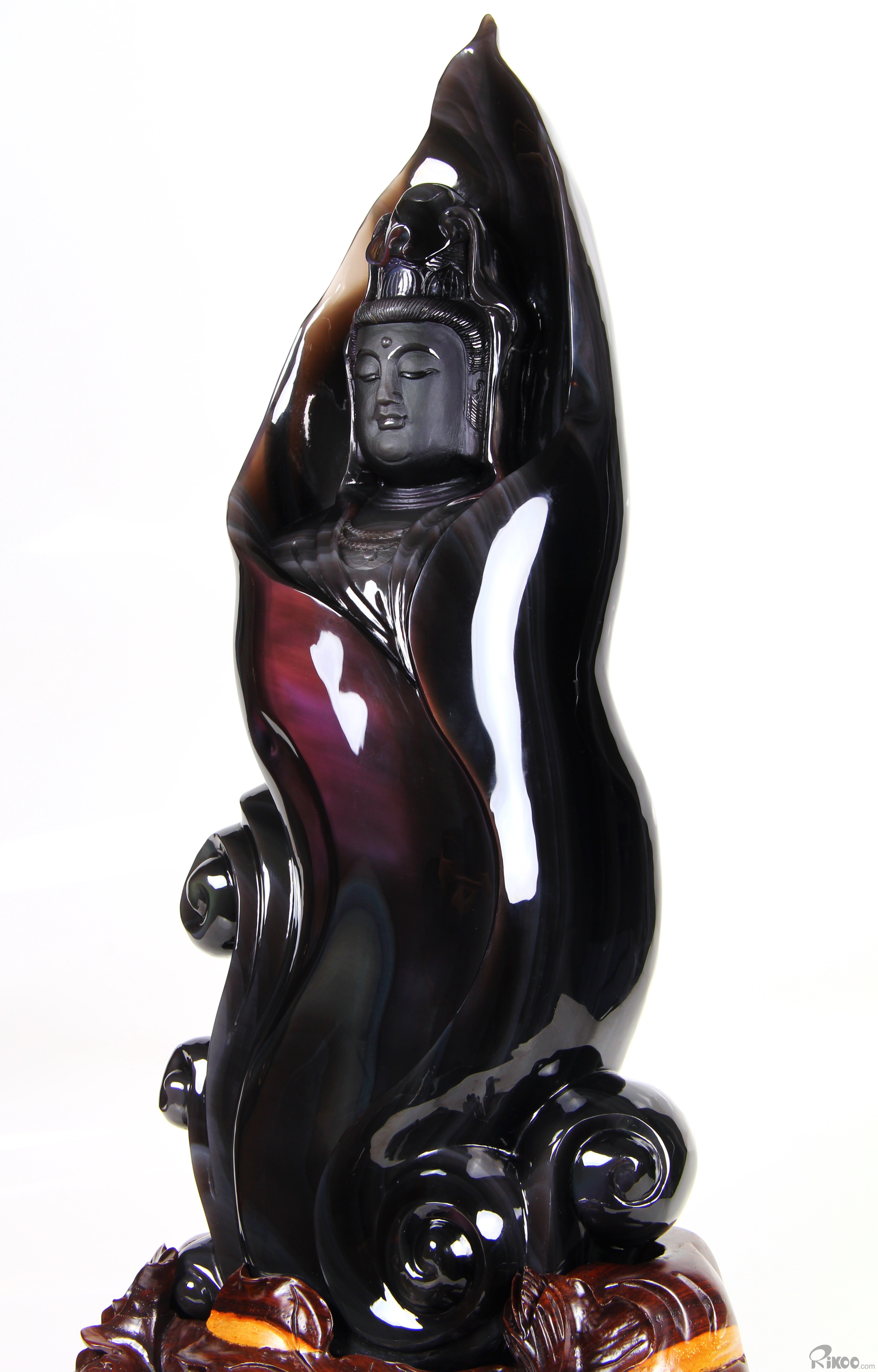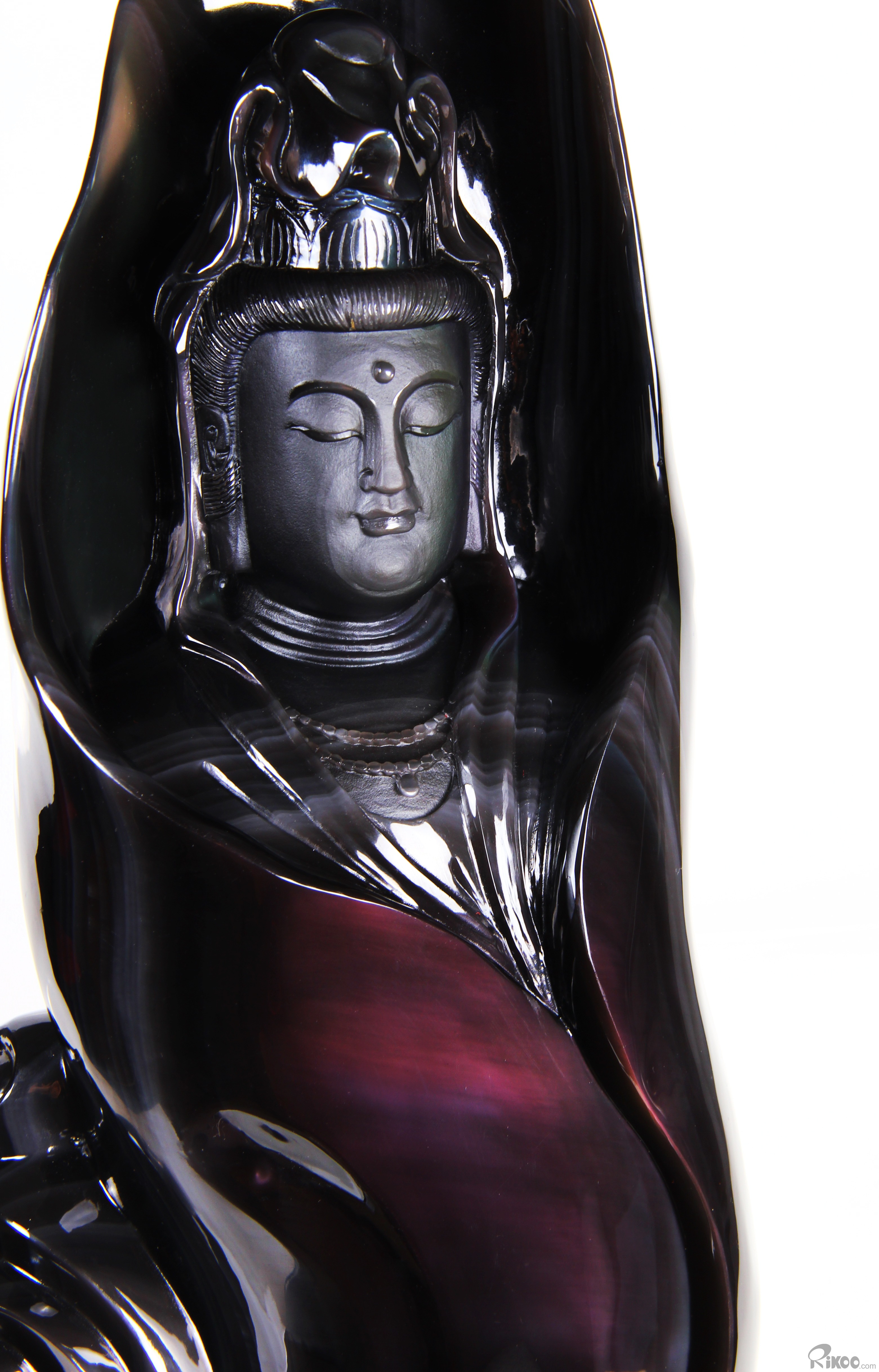 19.7" Rainbow Obsidian Hand Carved Crystal Kwan-yin Sculpture, Crystal Healing