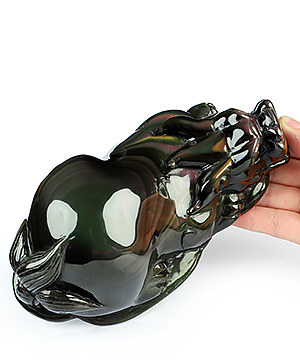 You are looking at a Rainbow Obsidian sculpture. The sculpture is 19.7 inches long.