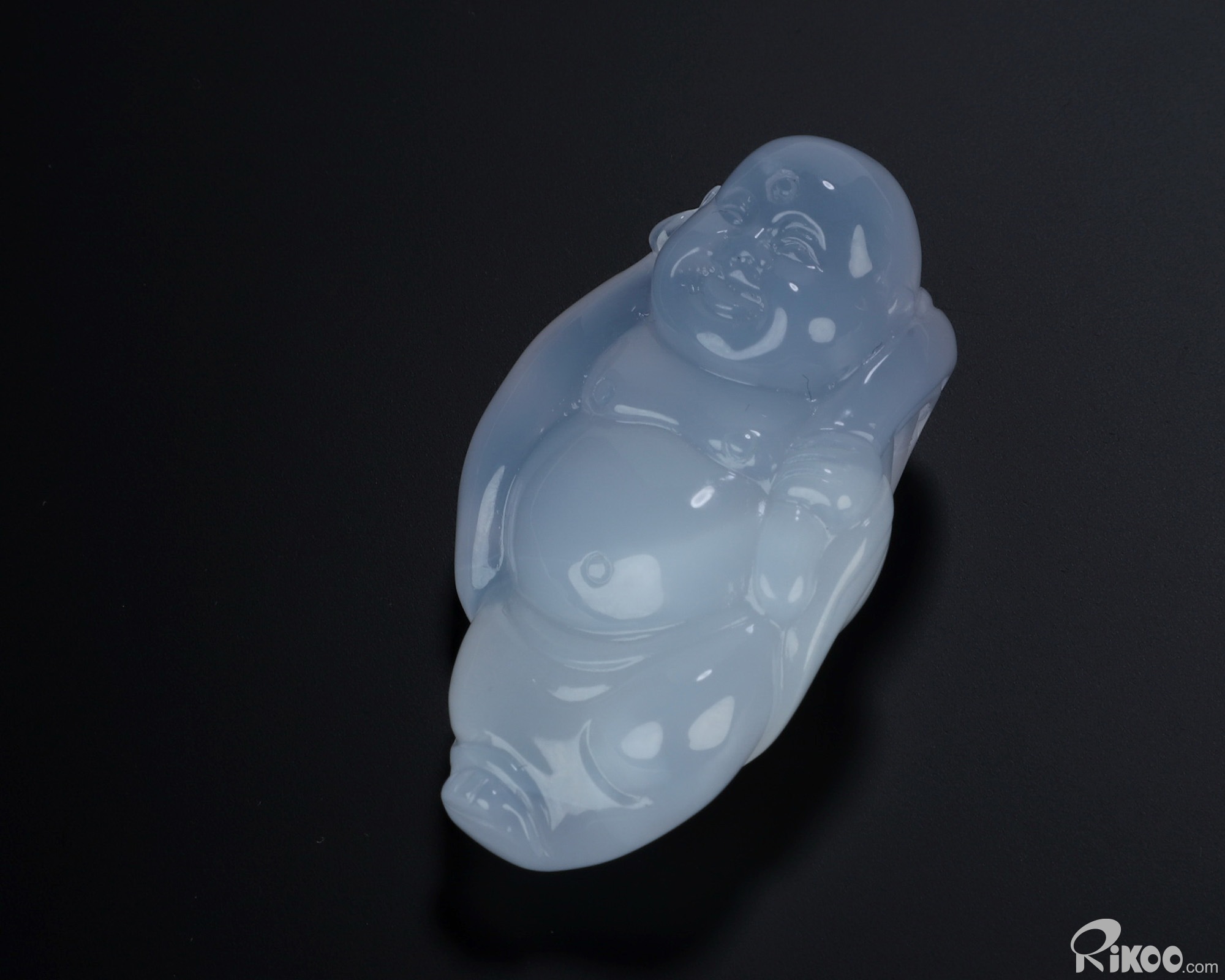 2.0" Blue Chalcedony Hand Carved Crystal Buddha Sculpture, Crystal Healing