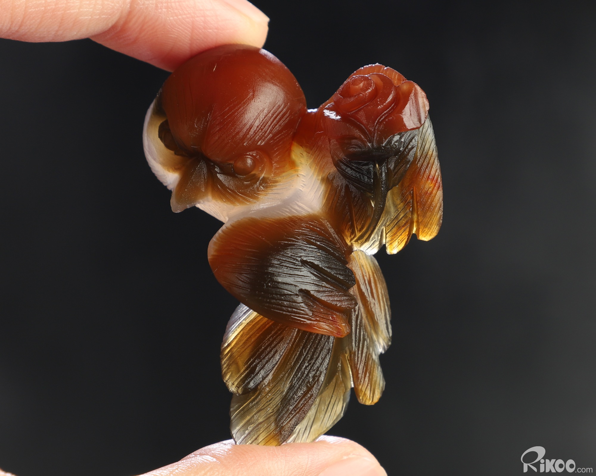 You are looking at a Carnelian sculpture. The sculpture is 2 inches long.