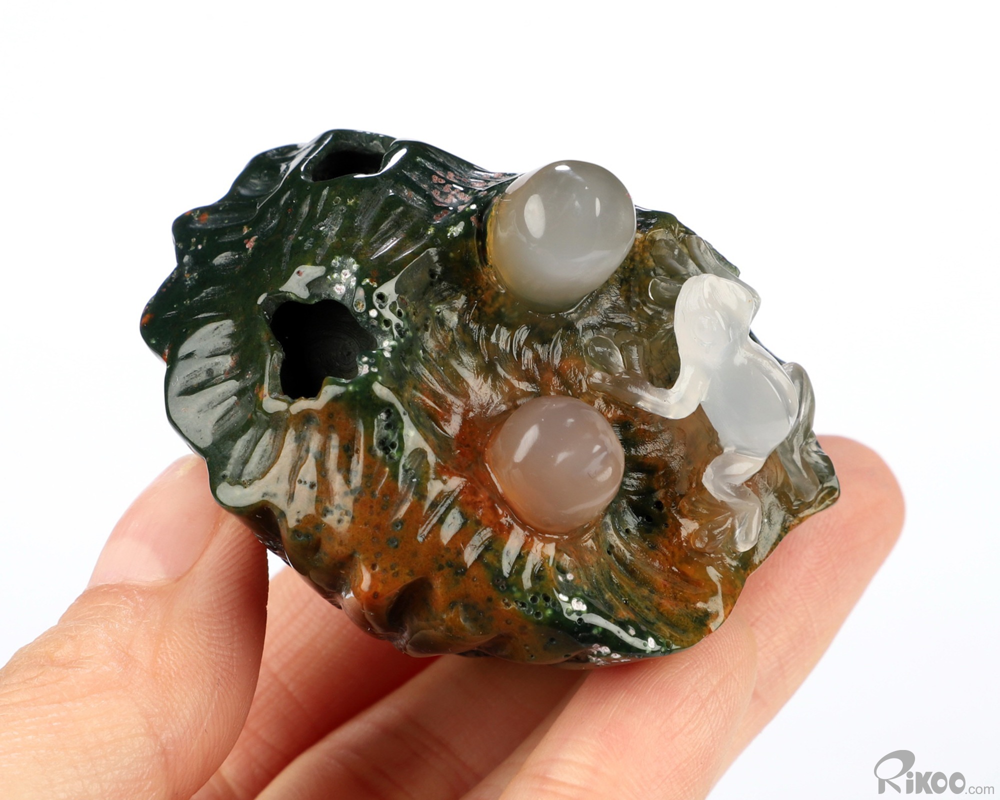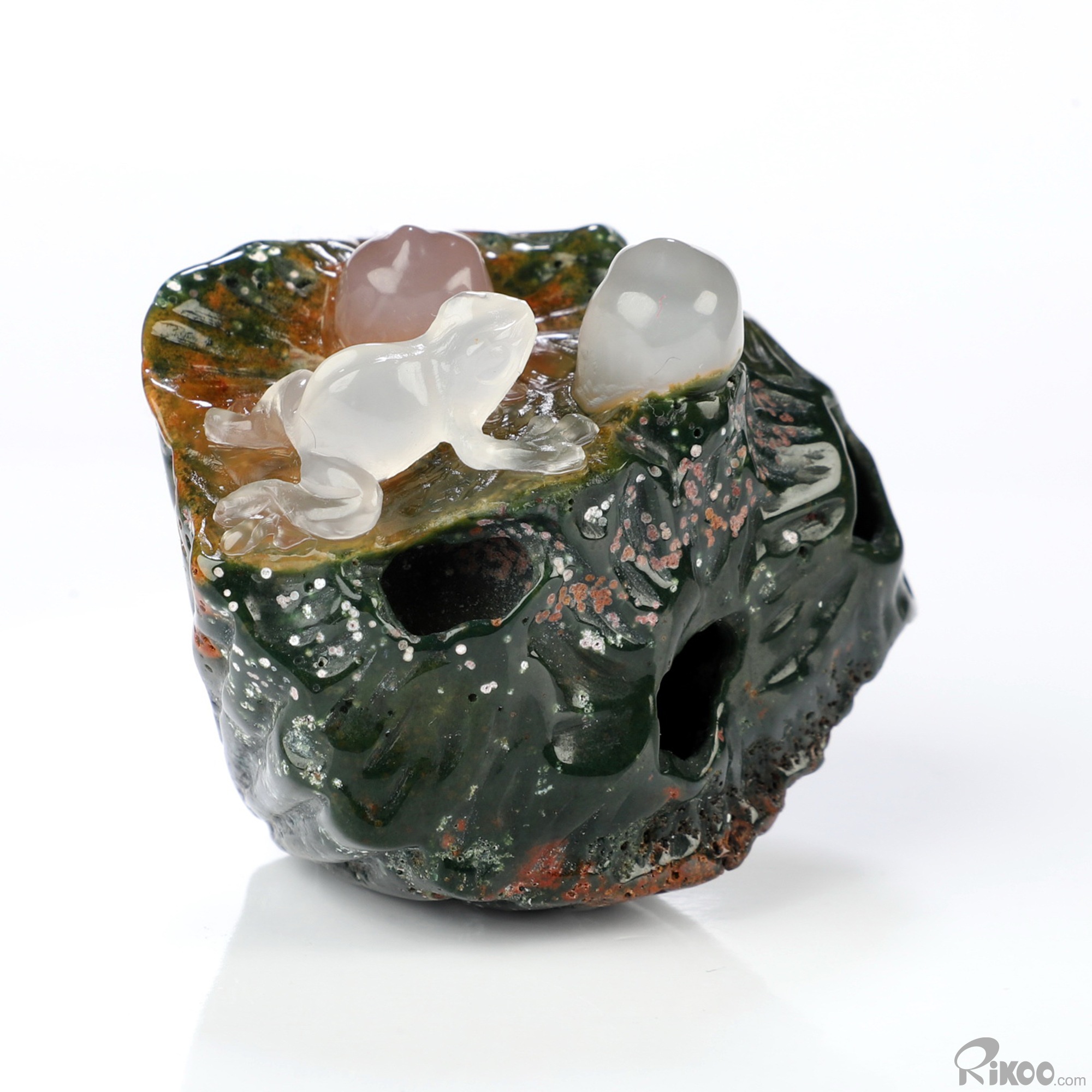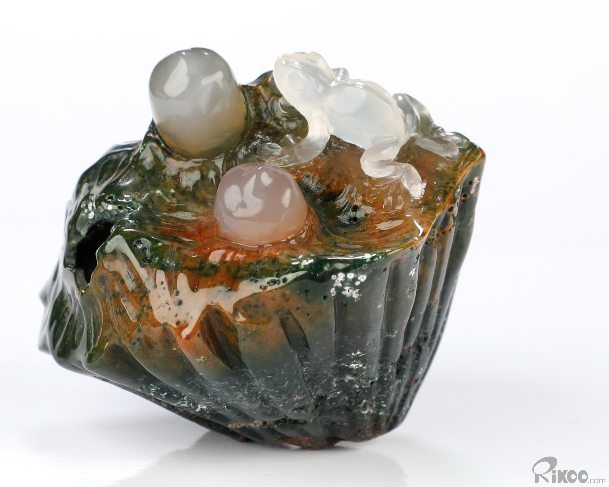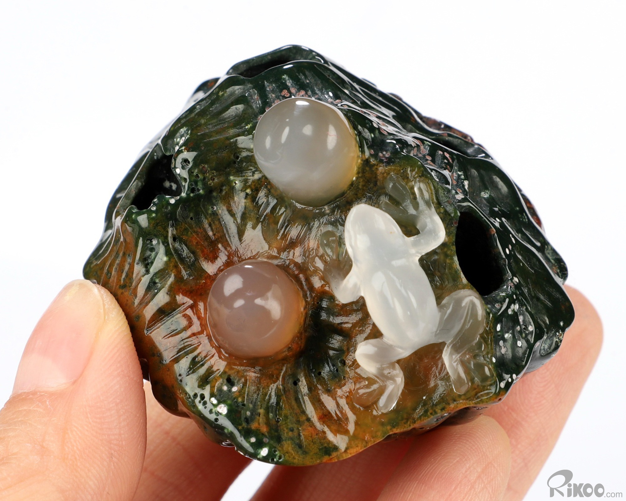 You are looking at an Indian Agate Frog sculpture. The sculpture is 2 inches long.