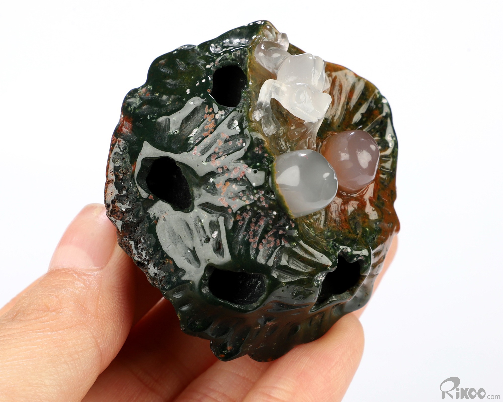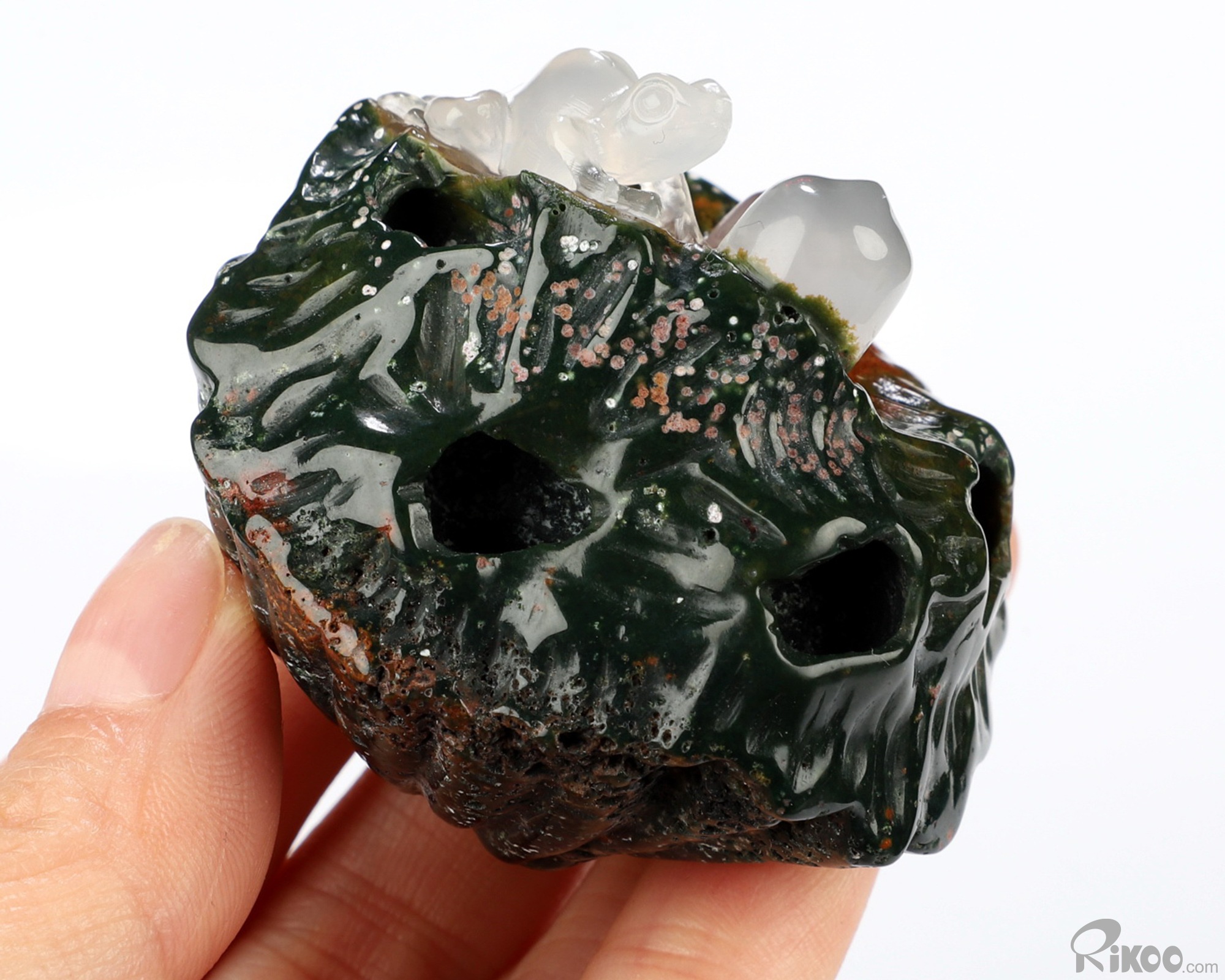 2.0" Indian Agate Hand Carved Crystal Frog Sculpture, Crystal Healing