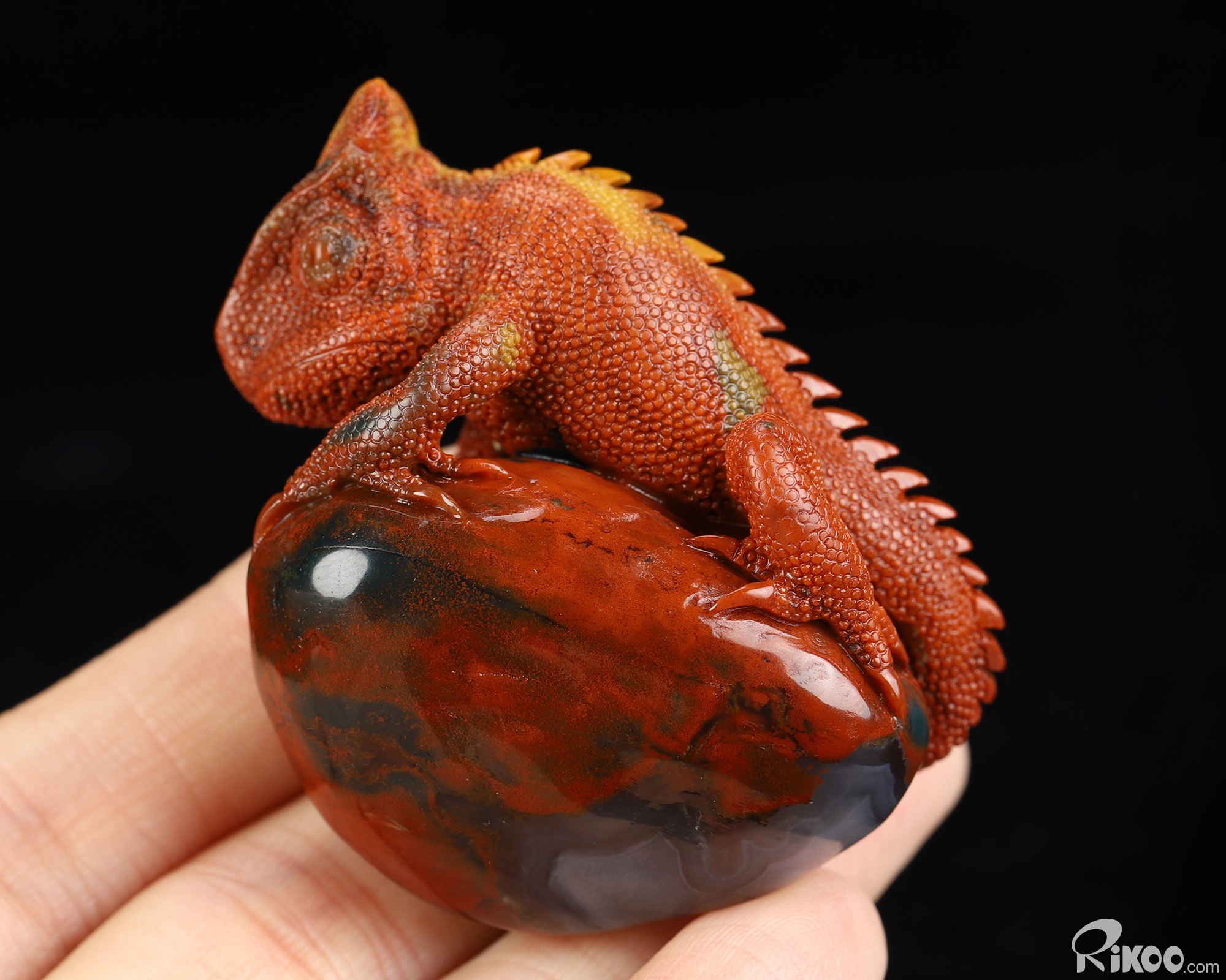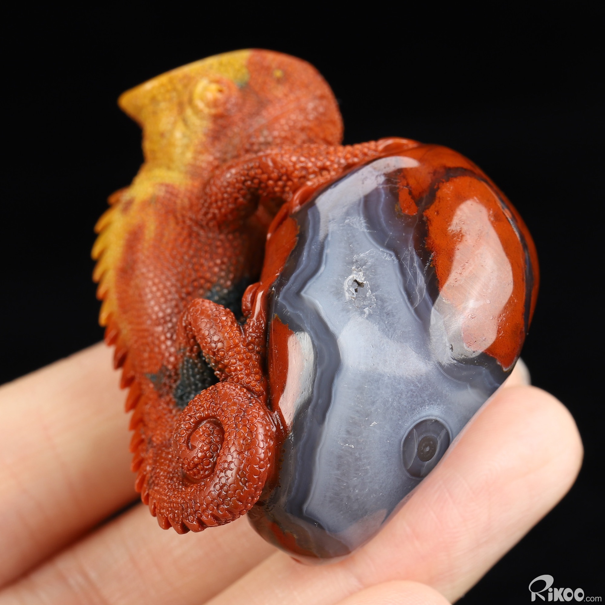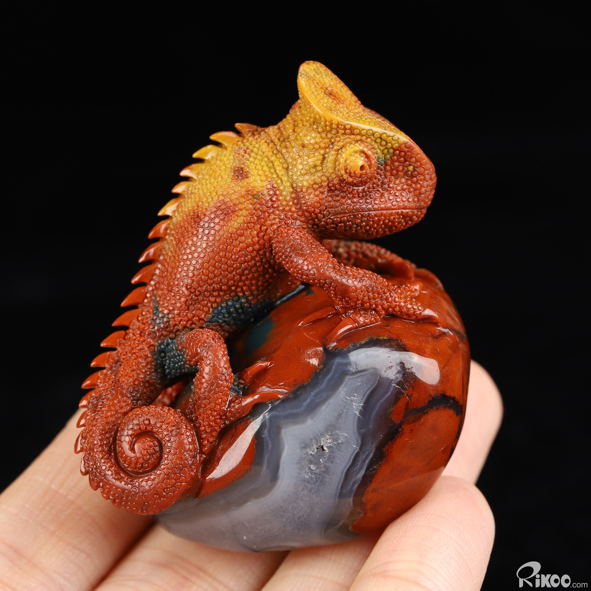 2.0" Indian Agate Hand Carved Crystal Lizard Sculpture, Crystal Healing