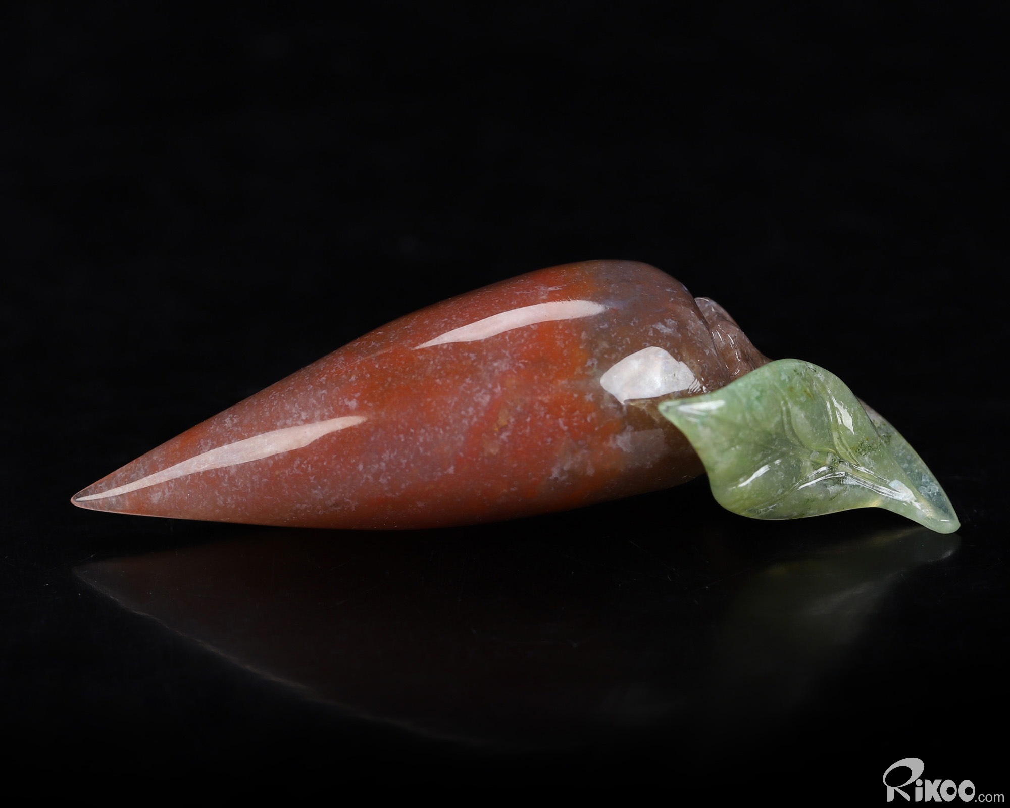 You are looking at an Indian Agate sculpture. The sculpture is 2 inches long.