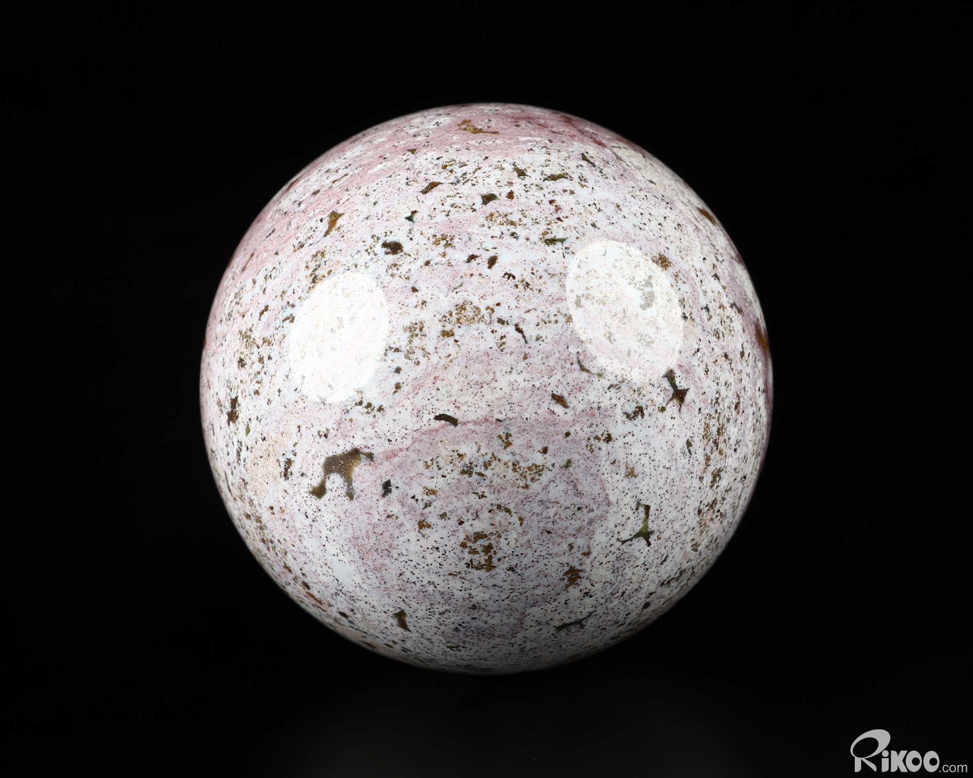 Another exceptional quality of Ocean Jasper is translucency. Many specimens are opaque and still very beautiful while others, when held in front of a strong light source, display what can only be described as another world! When viewed in front of a bright light the translucent, clear, or just foggy background illuminates and displays the contrasting solid perfect circles –the orbs- which then reveal exactly why Ocean Jasper is sometimes called "Fish Eye Jasper". These solid, soft looking spheres appear suspended in the illuminated quartz, and they can make one tempted to reach in and try to touch them!