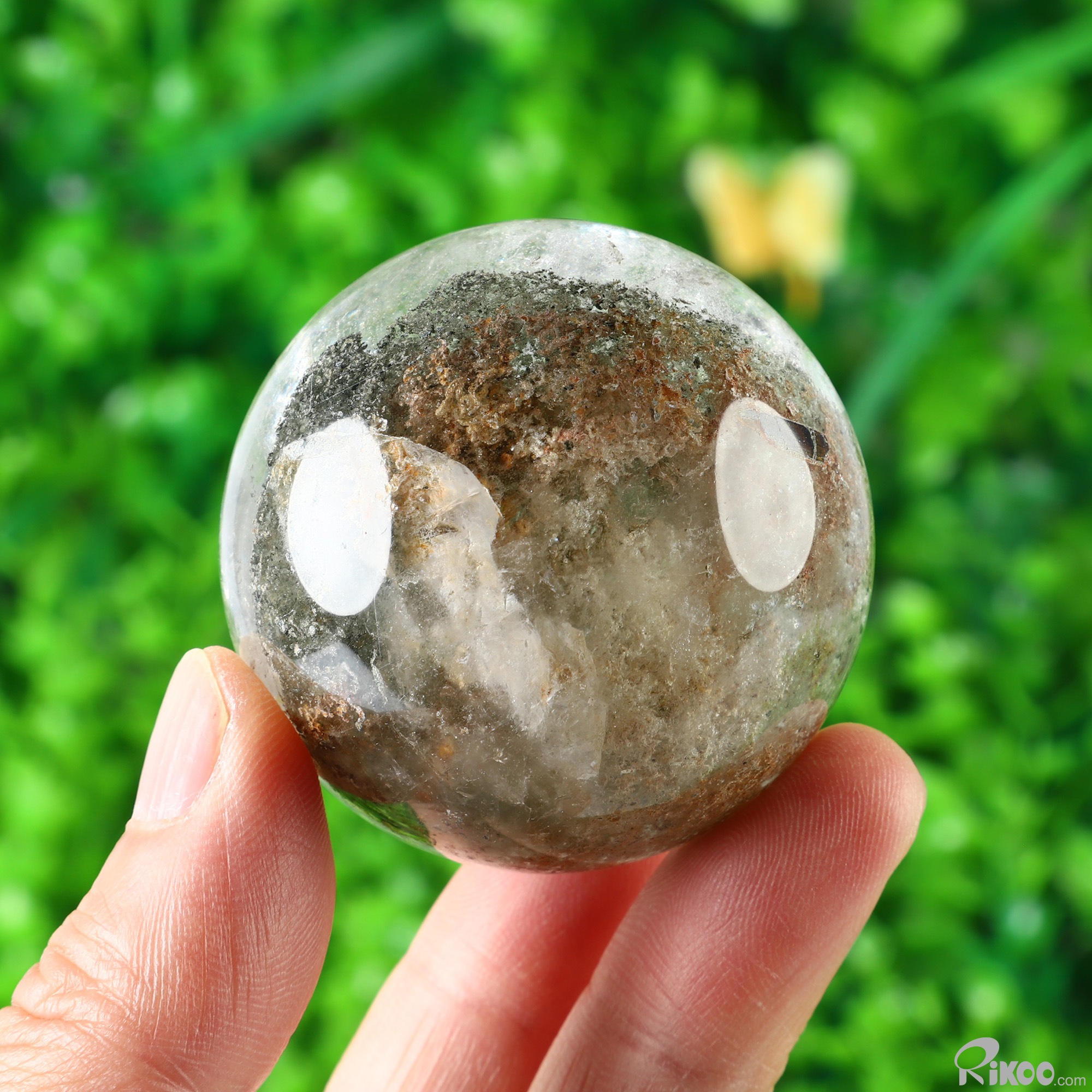 2.0" Phantom Quartz Rock Crystal Hand Carved Crystal Ball/Sphere, Crystal Healing