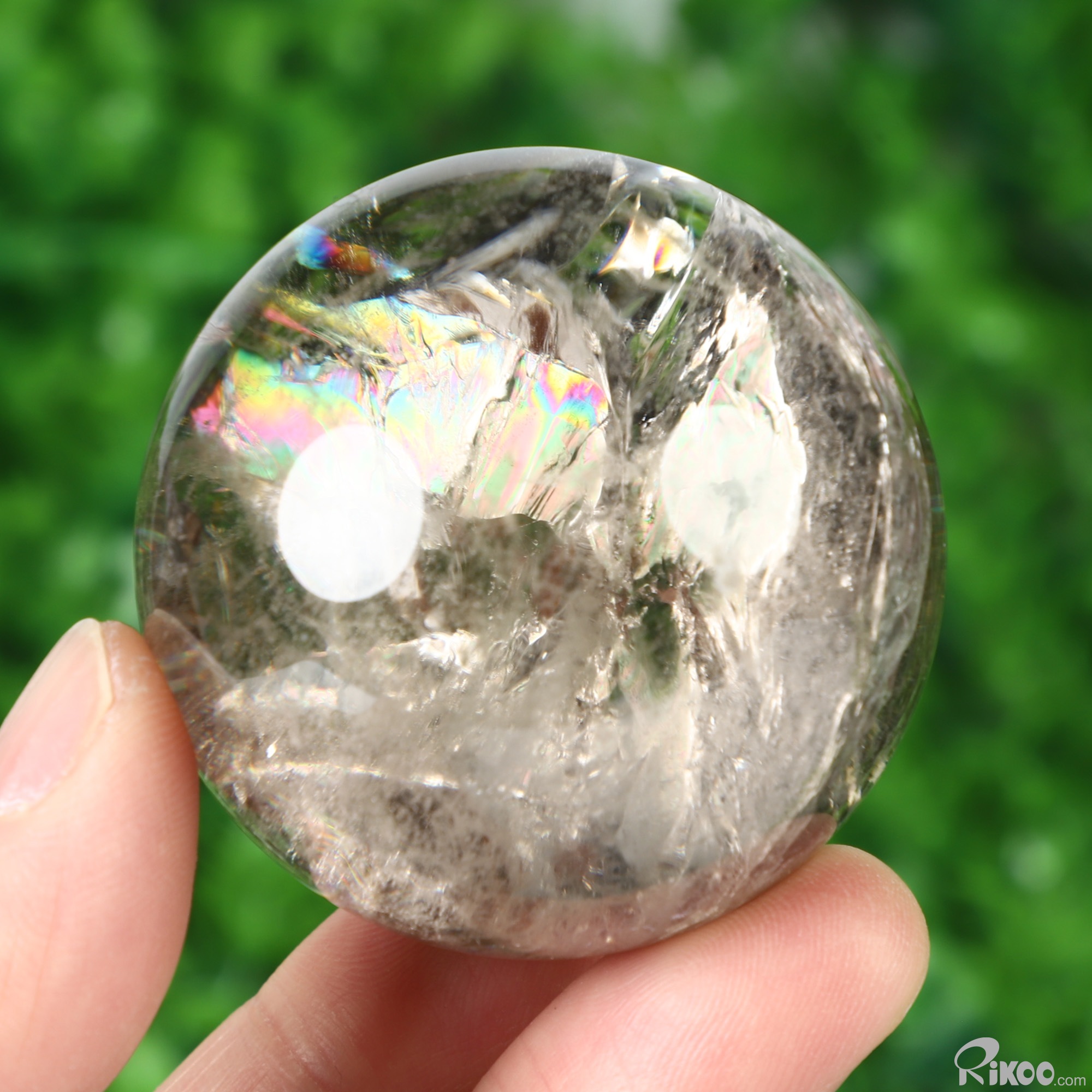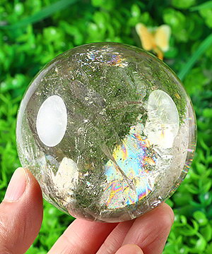 2.0" Rainbow Smoky Quartz Rock Crystal Hand Carved Crystal Ball/Sphere, Crystal Healing