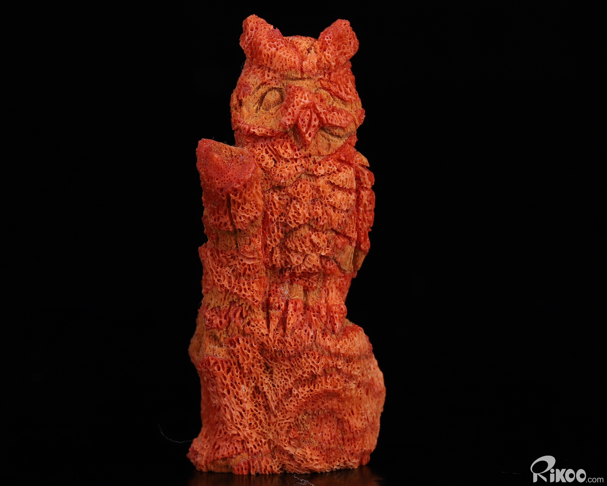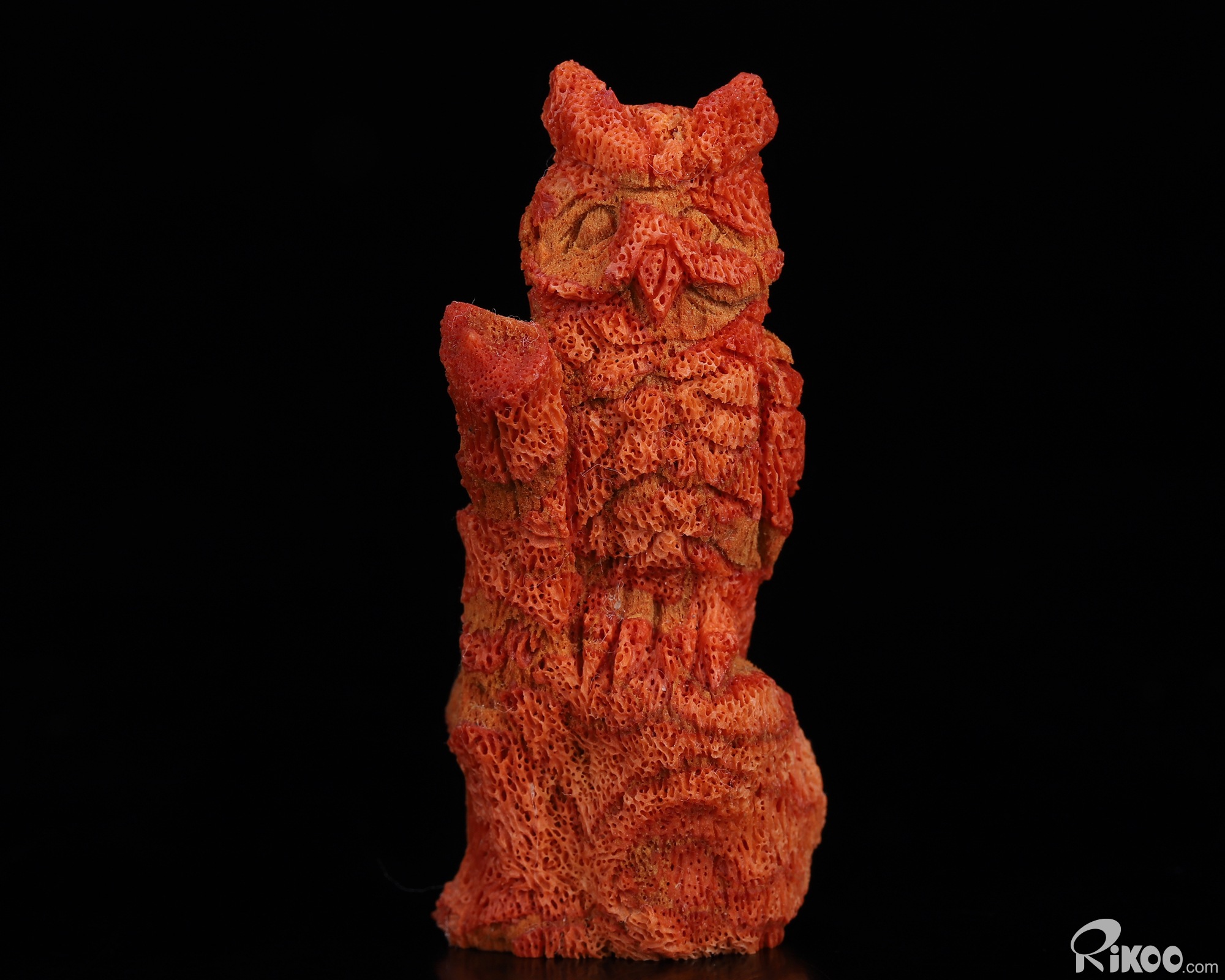 2.0" Red Coral Hand Carved Crystal Owl Sculpture, Crystal Healing