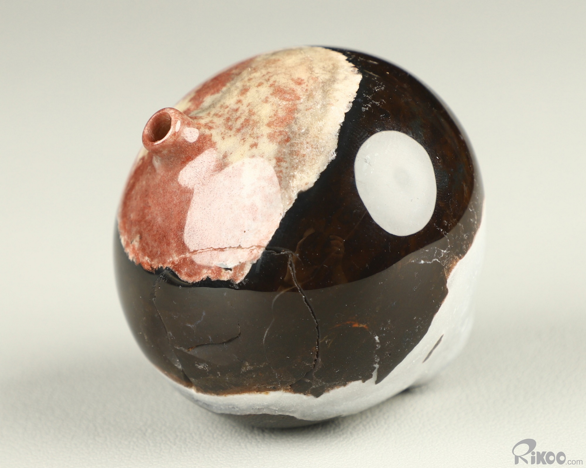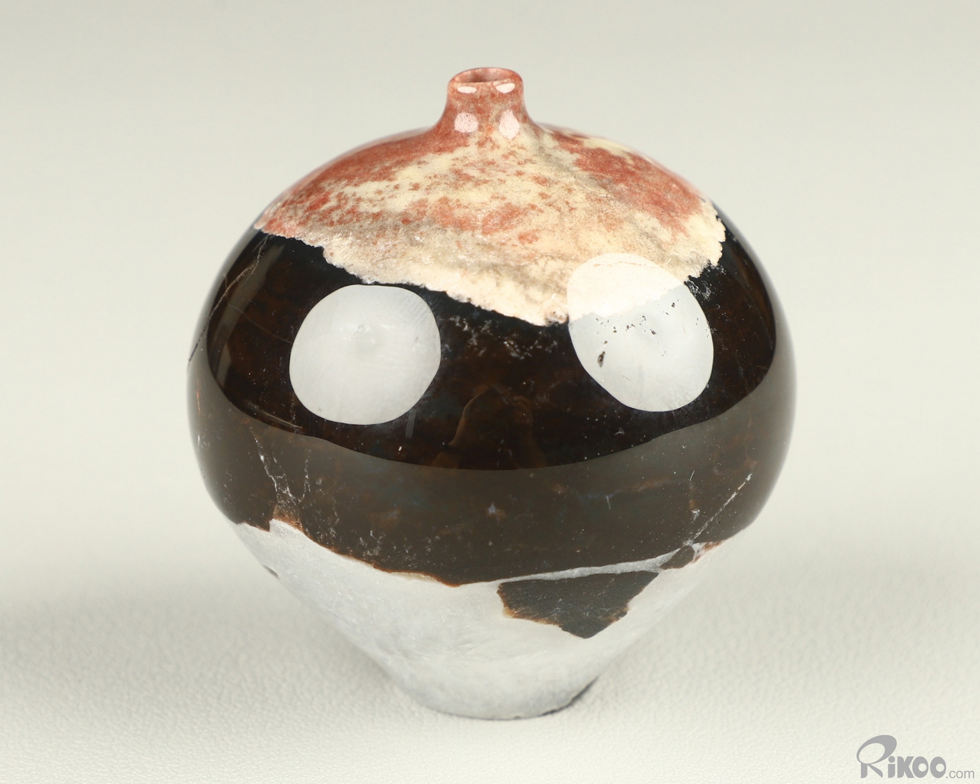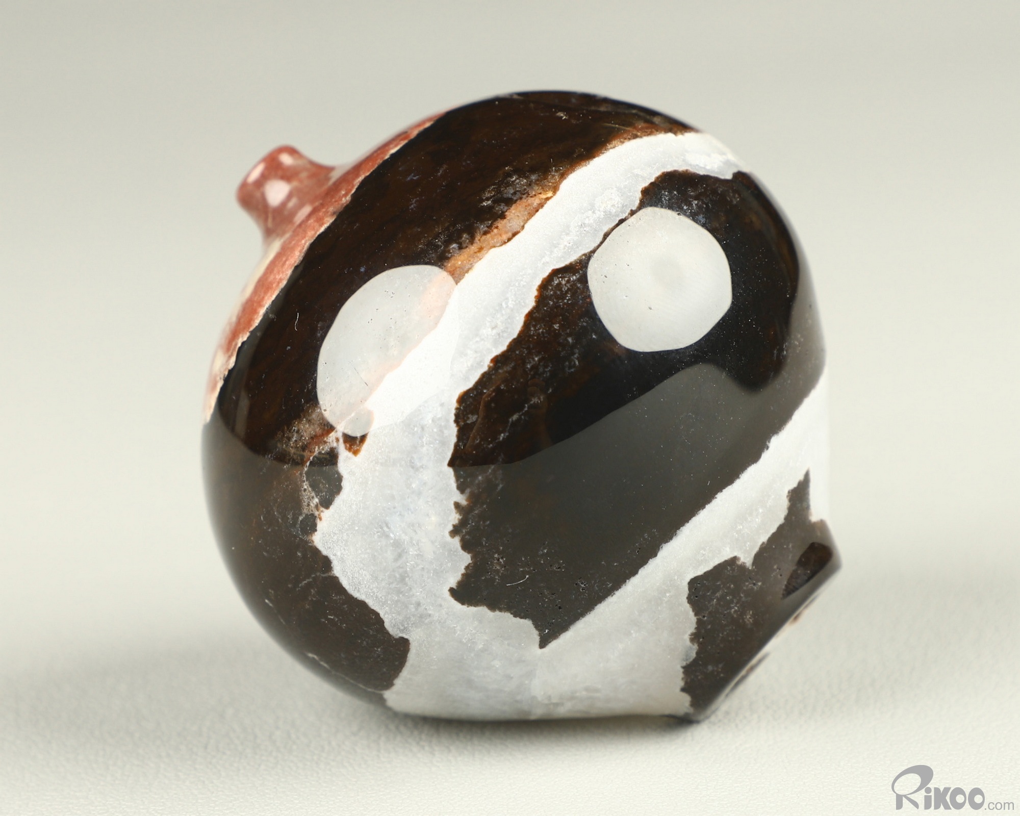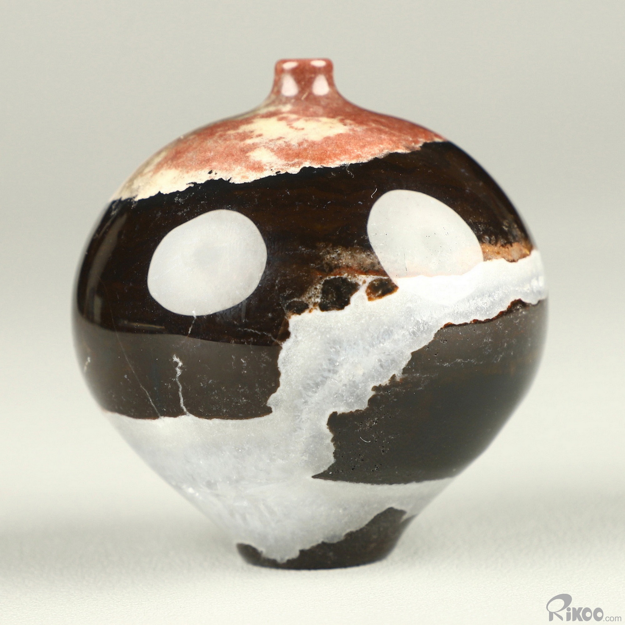 You are looking at a Black Zebra Agate vase. The sculpture is 2.1 inches long.