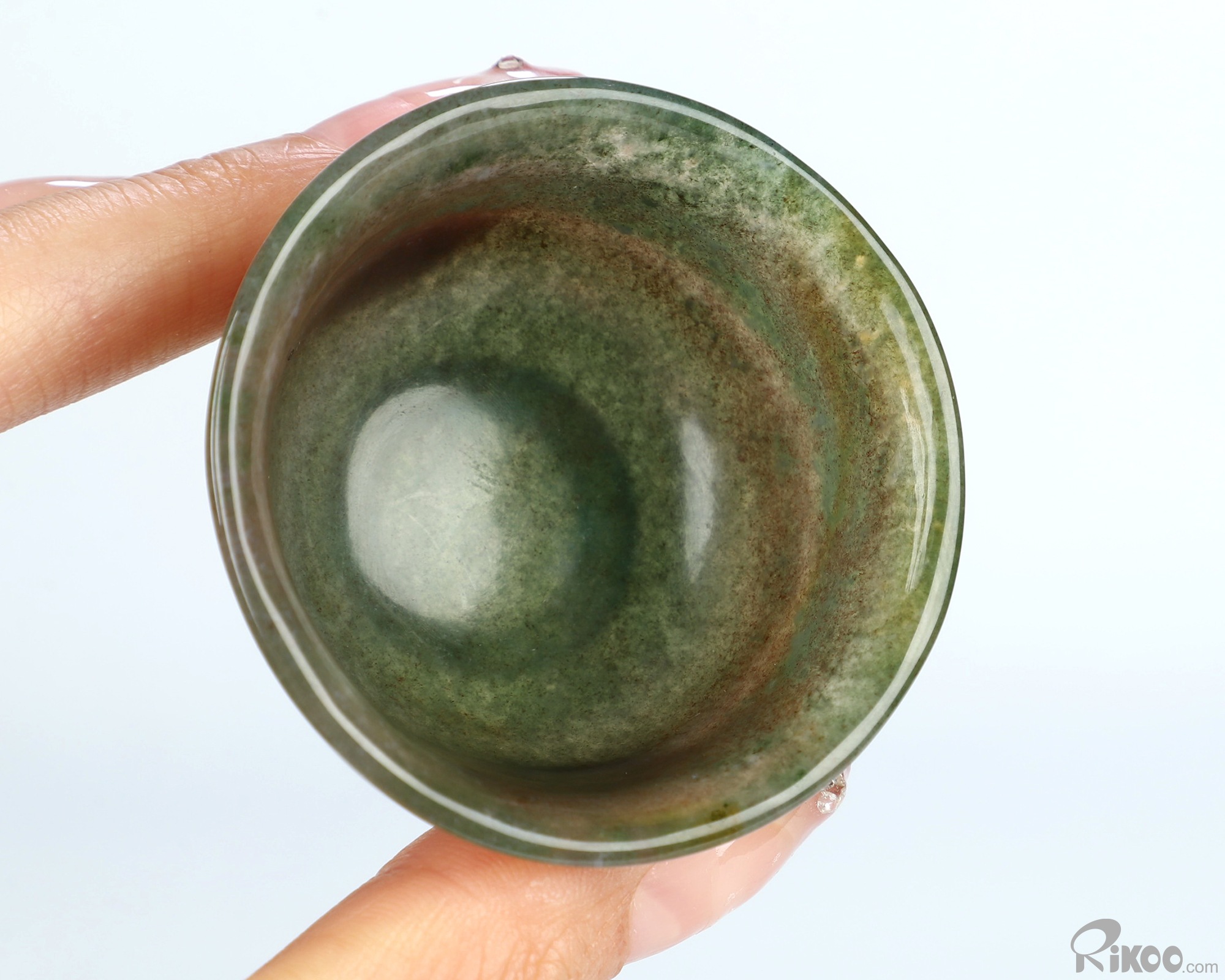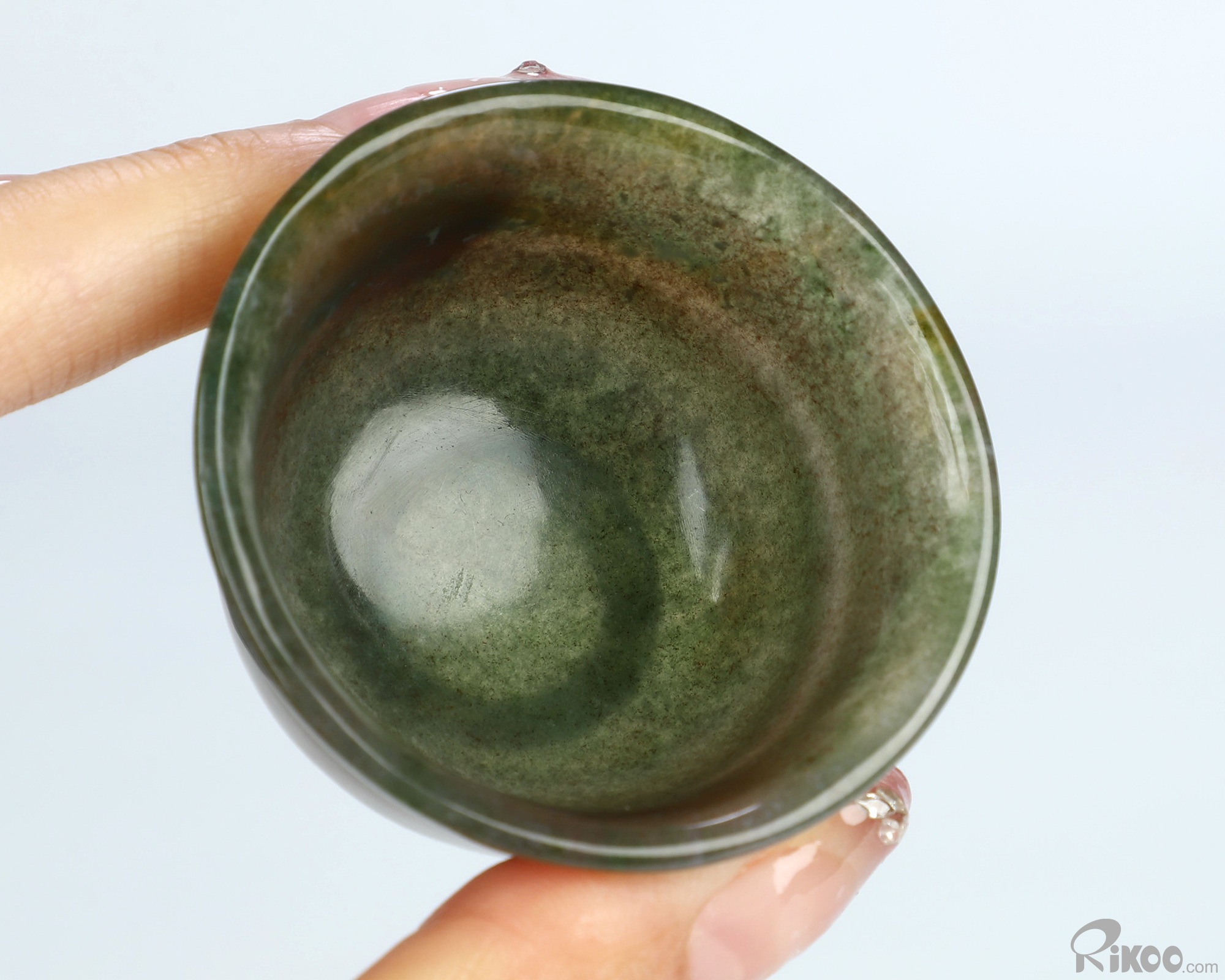 2.1" Green Moss Agate Hand Carved Crystal Cup, Crystal Healing