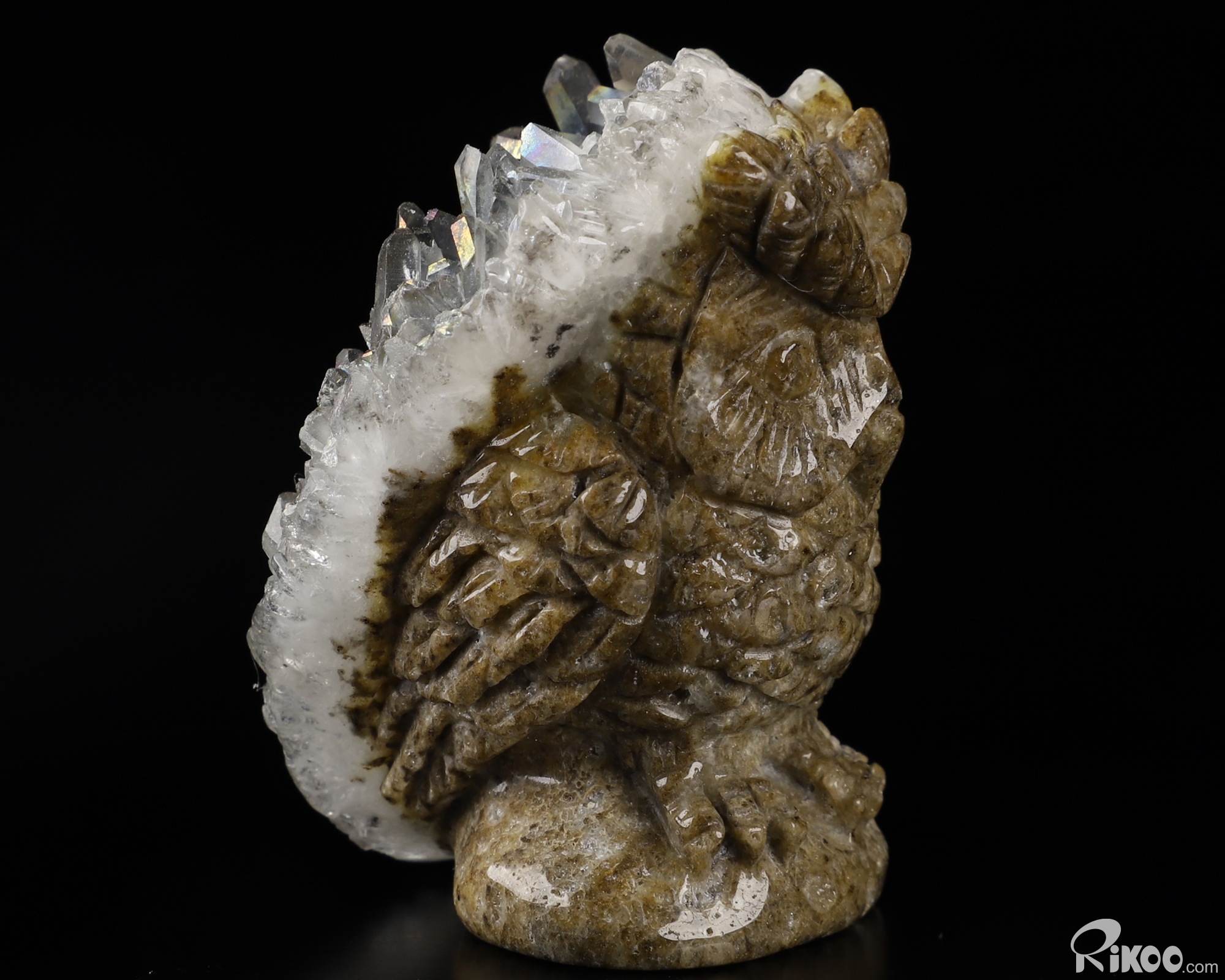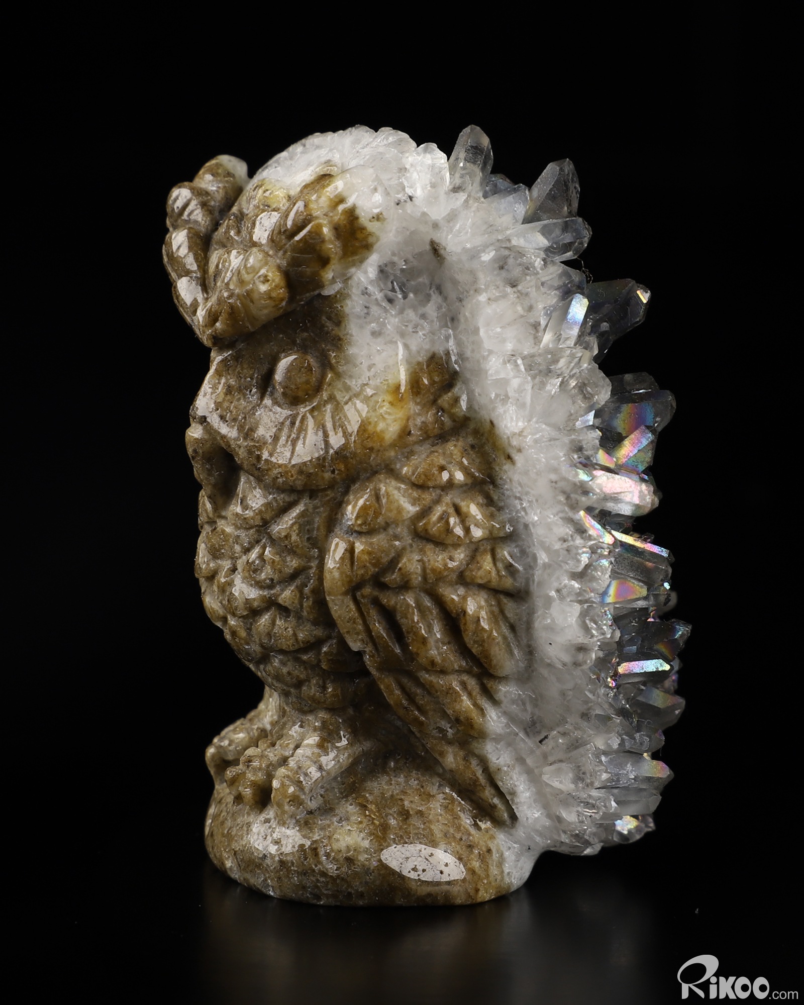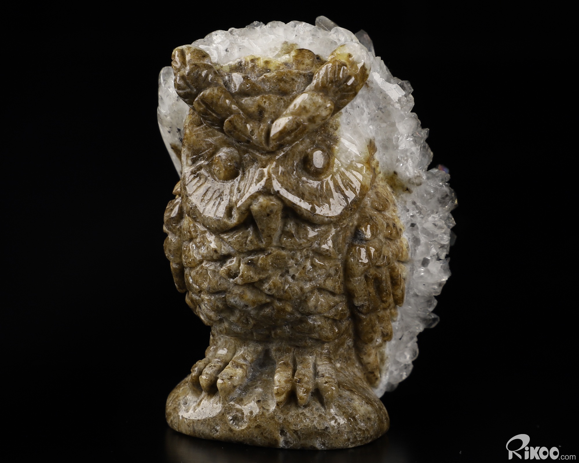 2.1" Quartz rock druse Hand Carved Crystal Owl Sculpture, Crystal Healing
