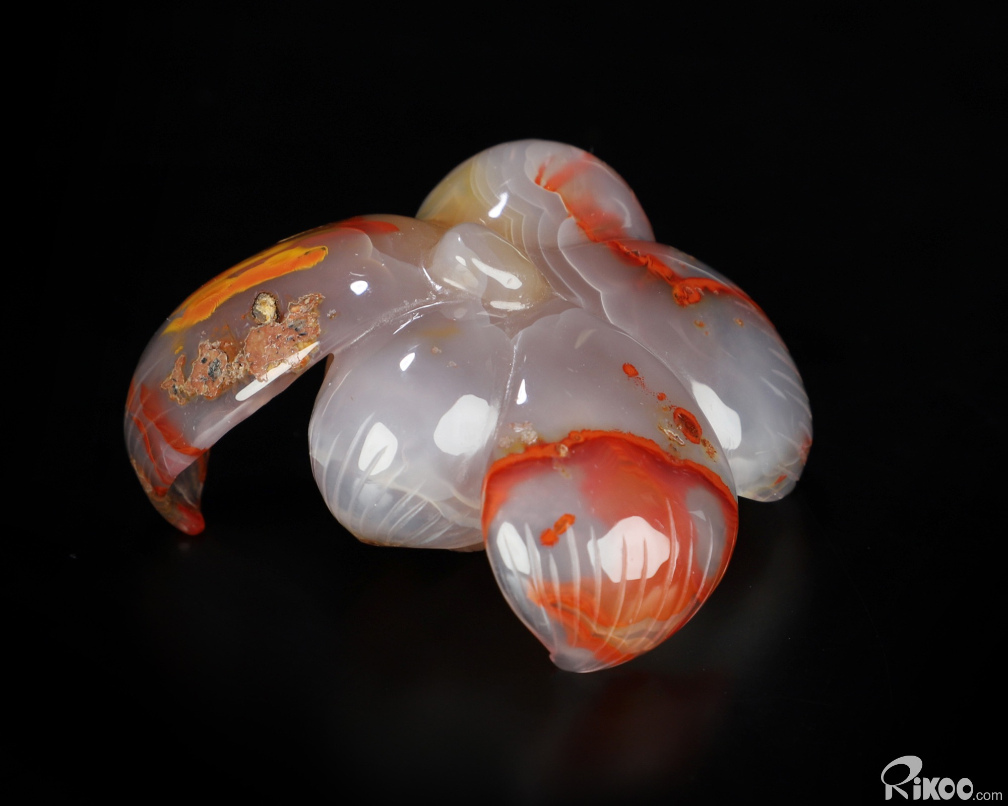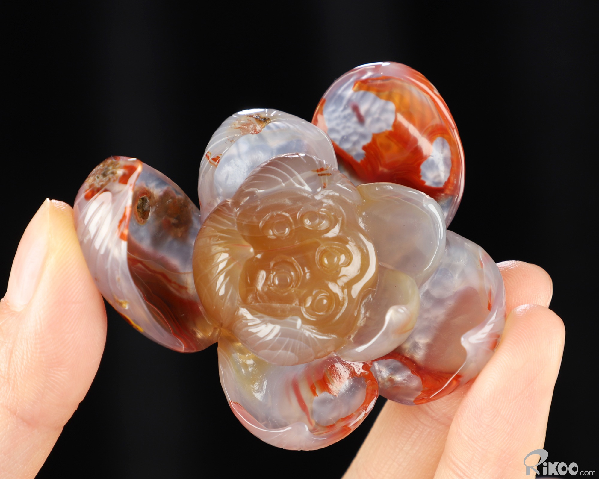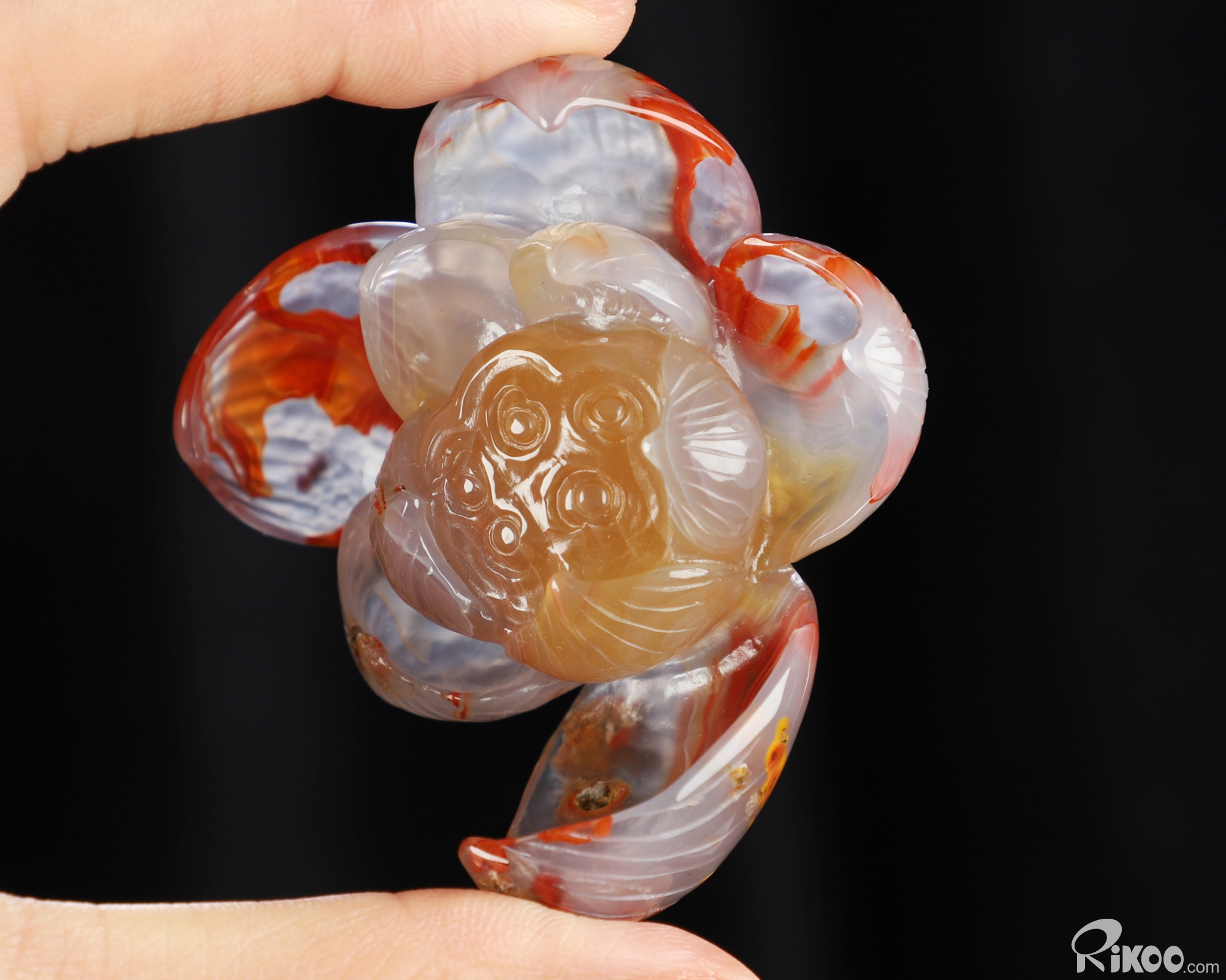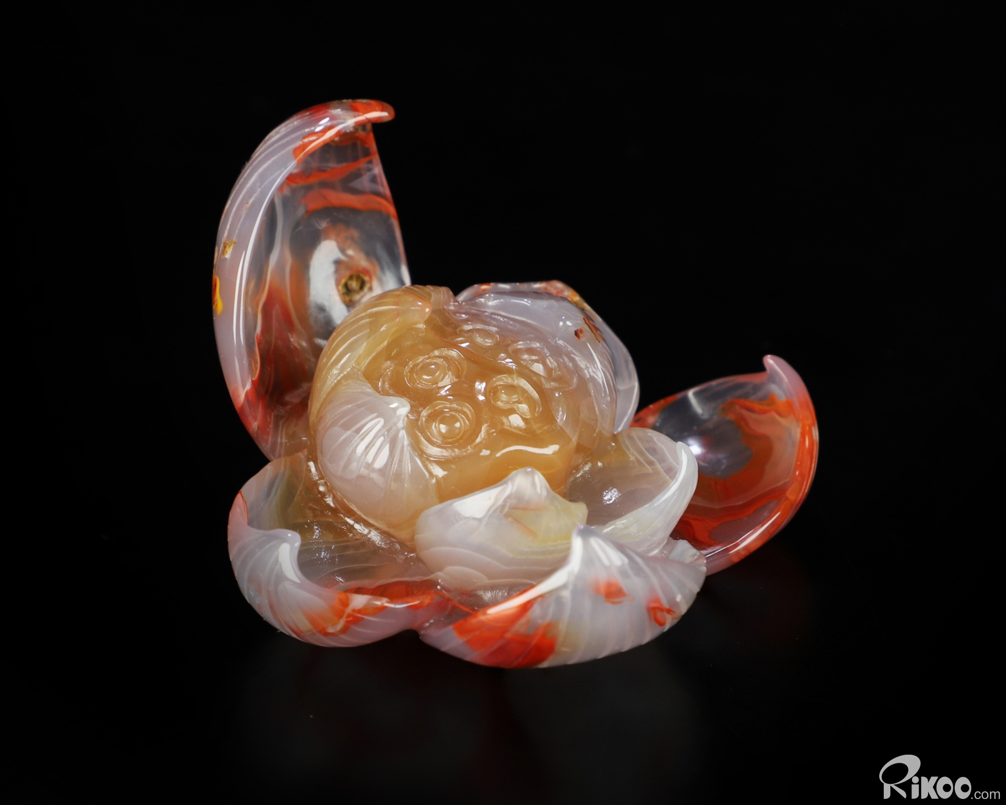You are looking at an Empire Red Agate Lotus sculpture. The sculpture is 2.2 inches long.