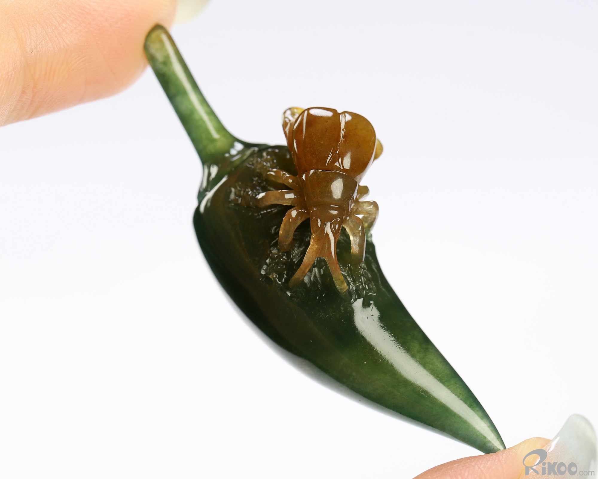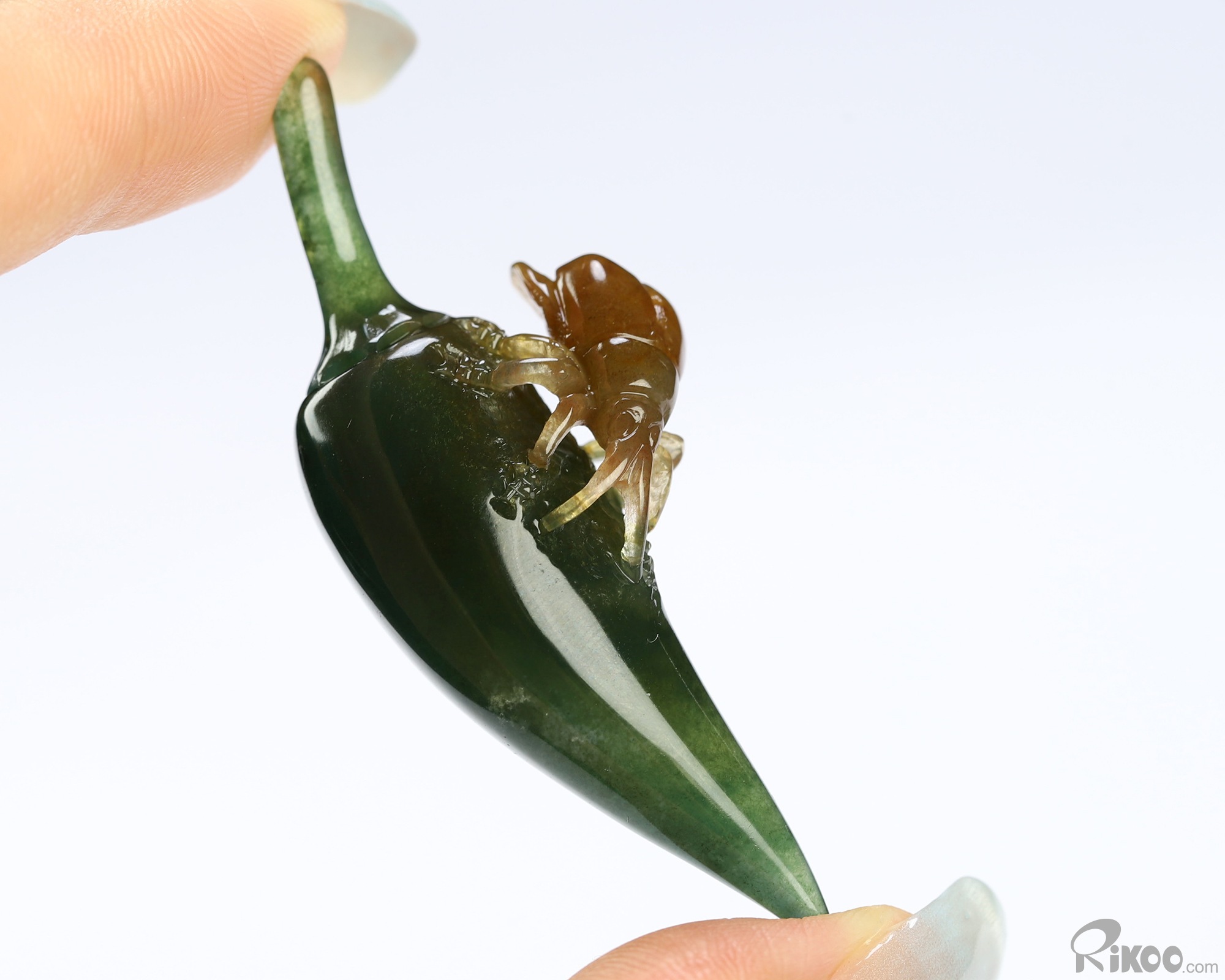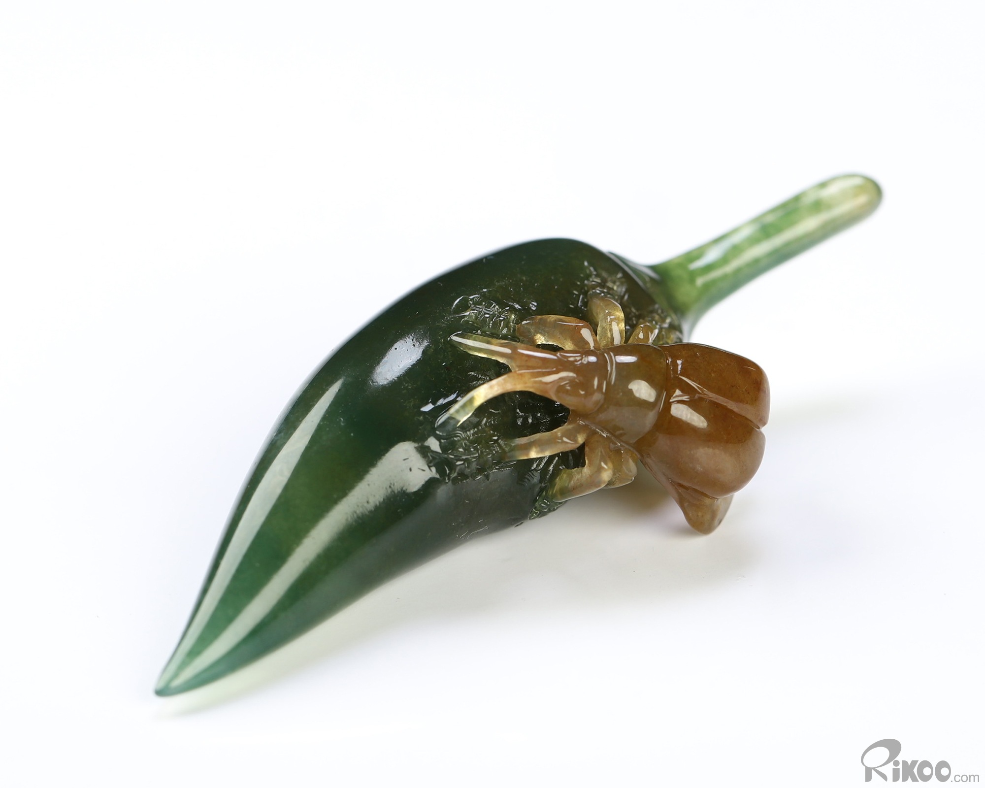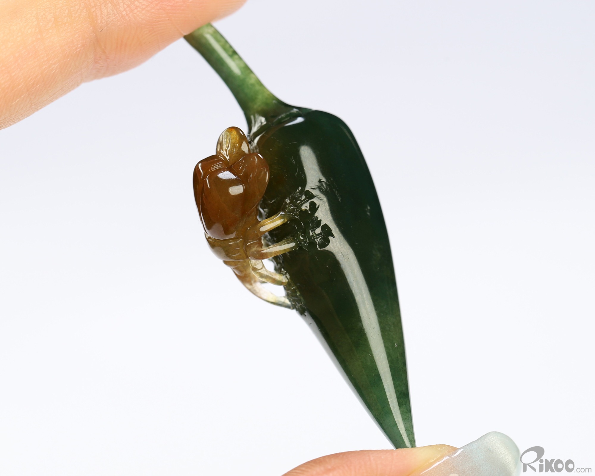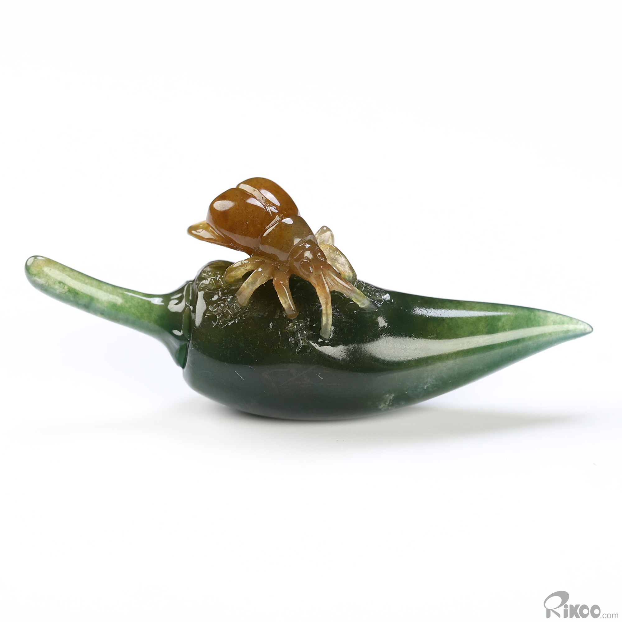 2.2" Indian Agate Hand Carved Crystal Pepper and Cicada Sculpture, Crystal Healing