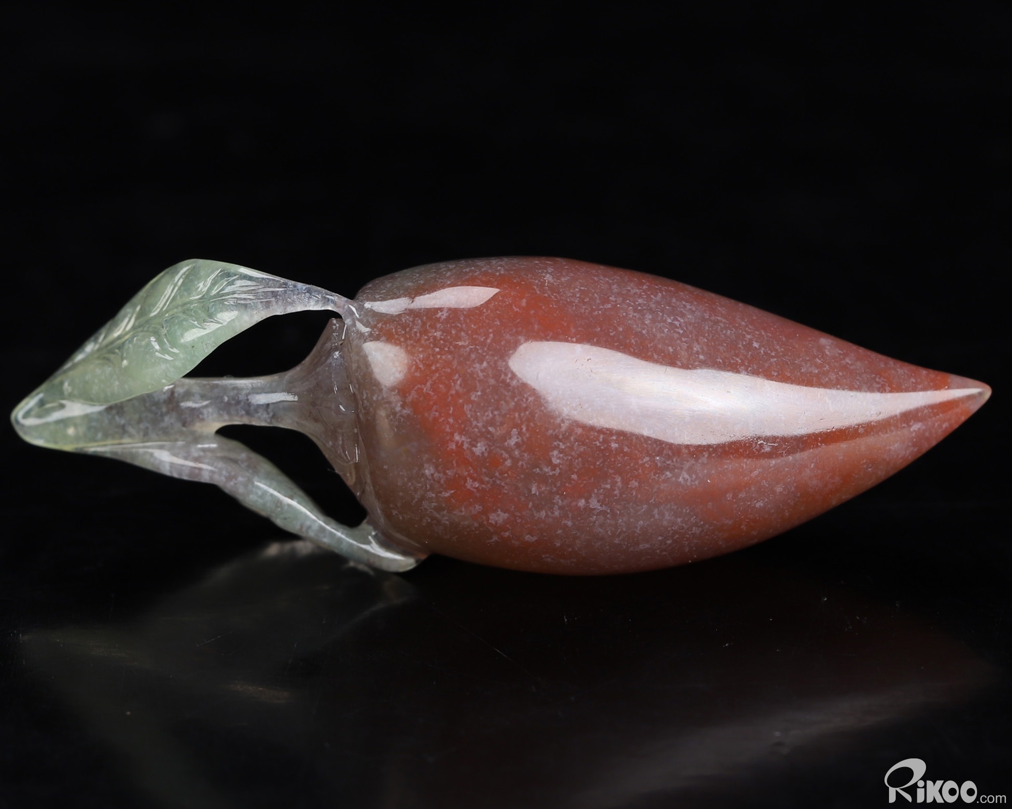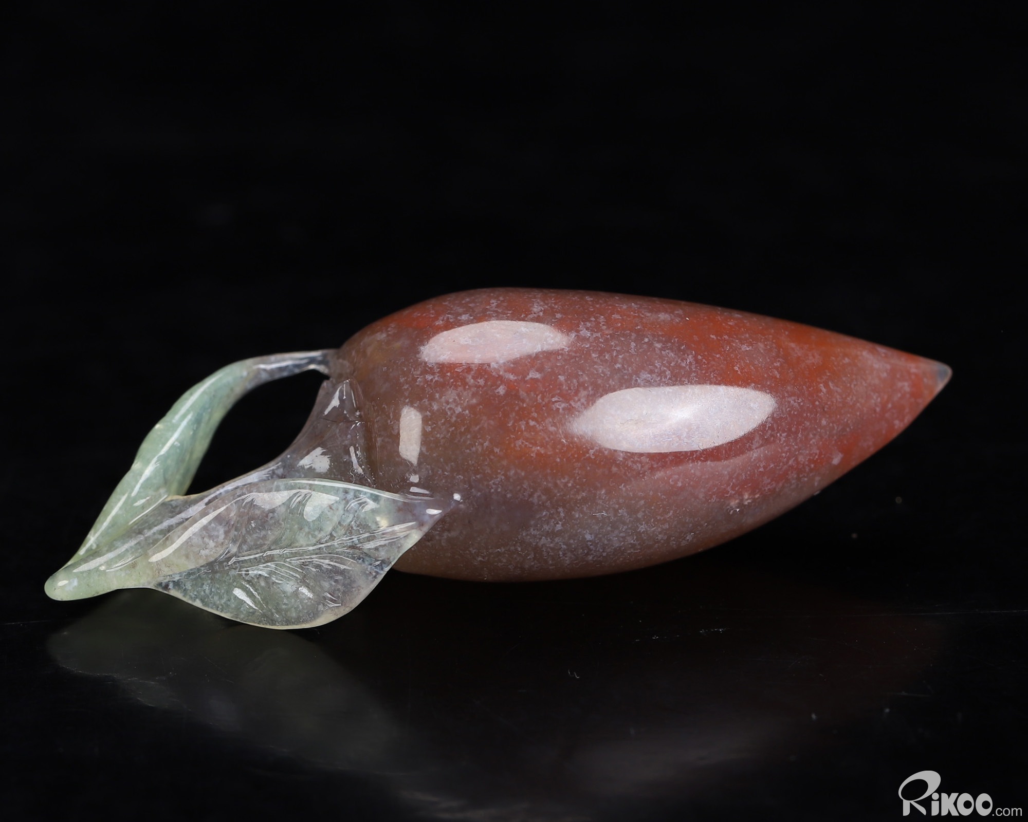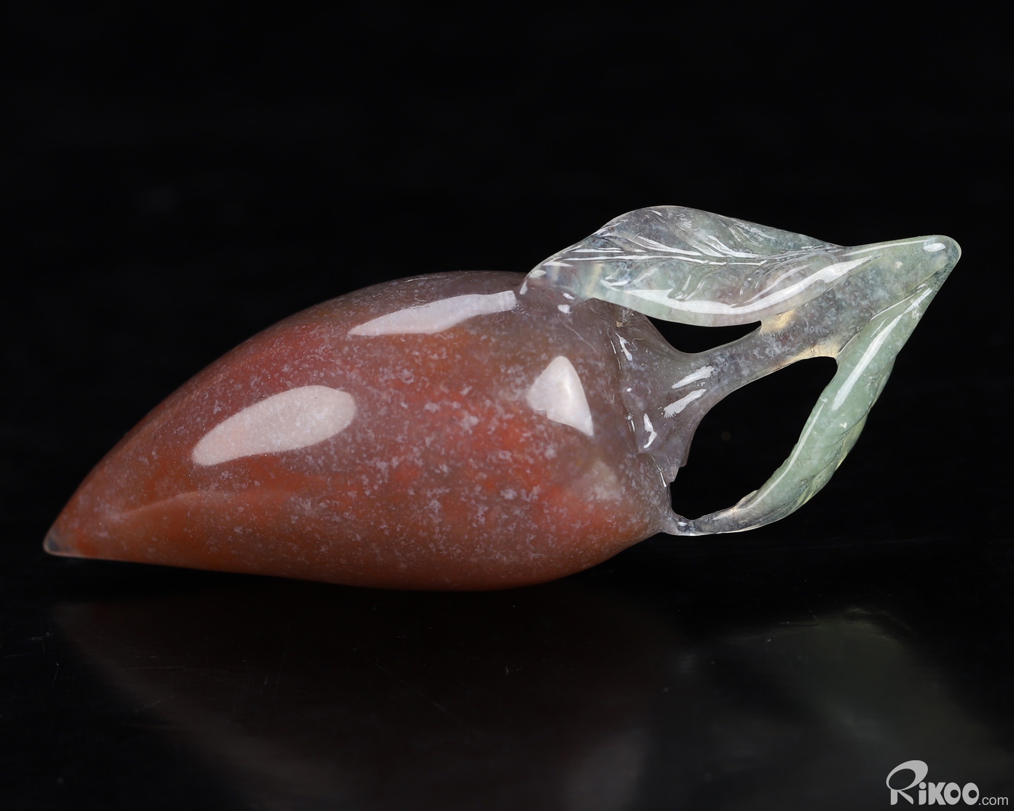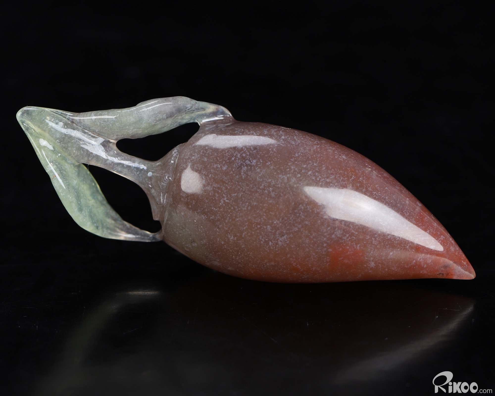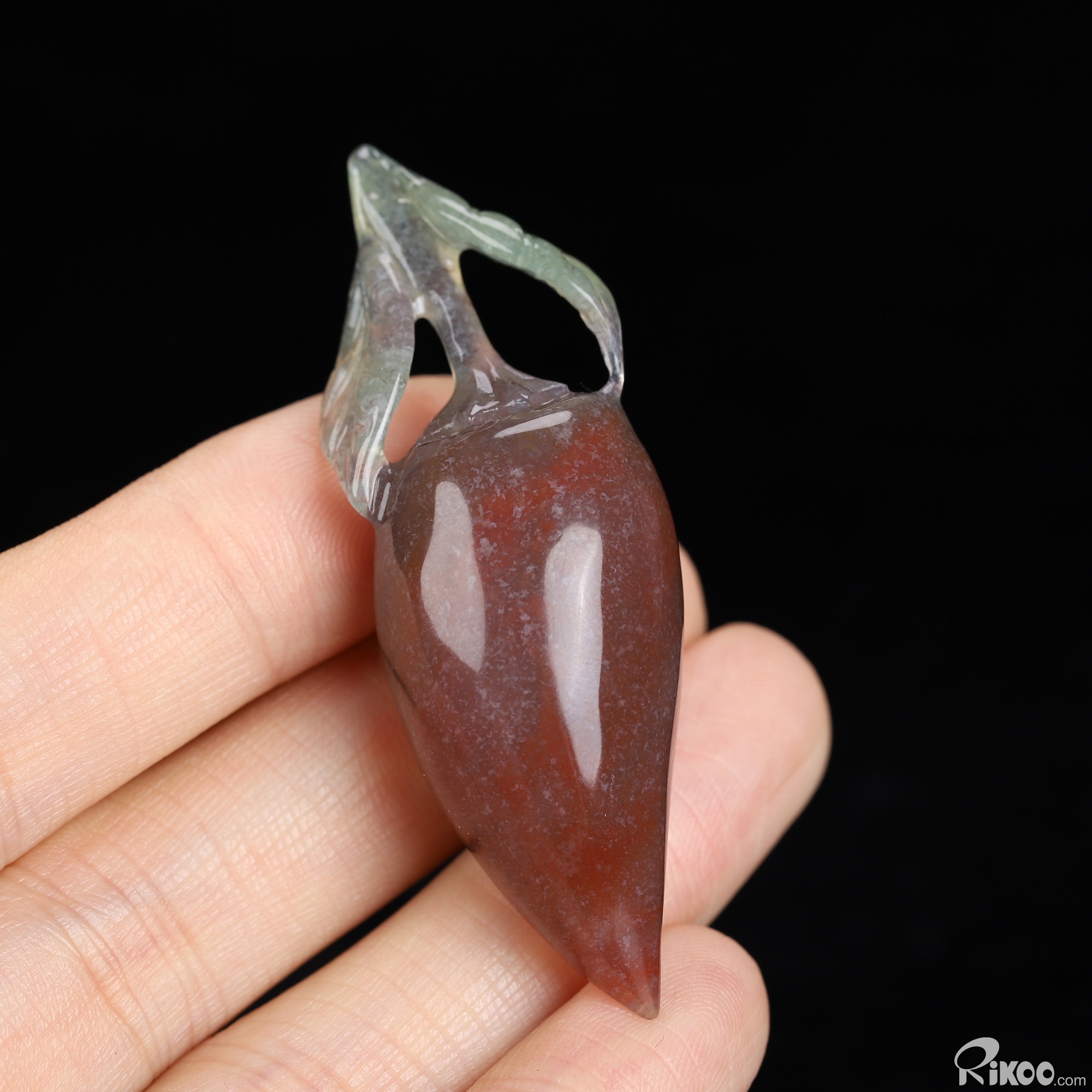 You are looking at an Indian Agate sculpture. The sculpture is 2.2 inches long.