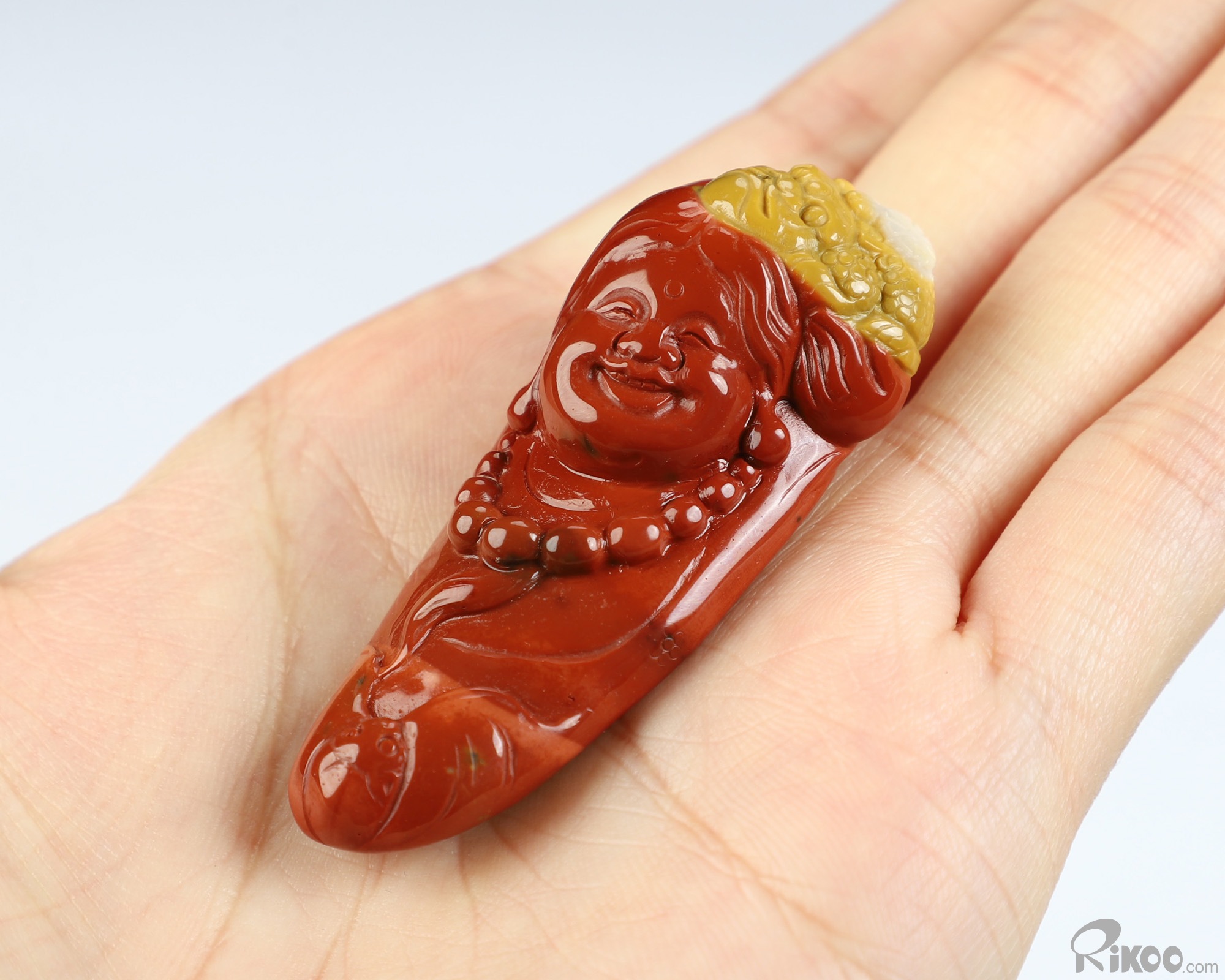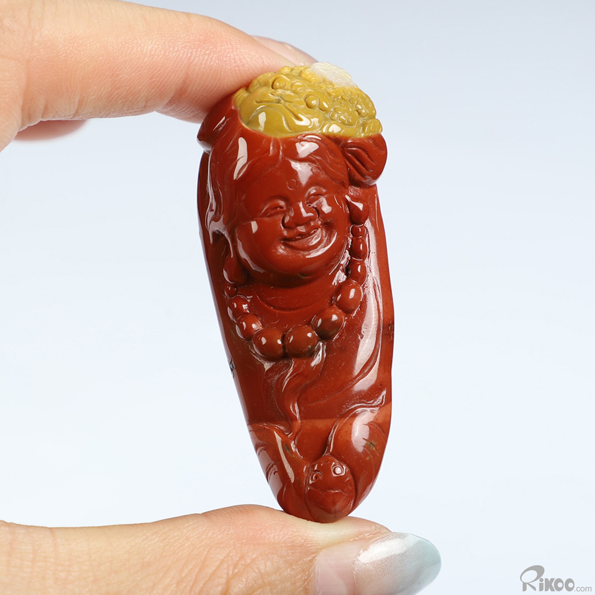 You are looking at a Mookaite Jasper sculpture. The sculpture is 2.2 inches long.