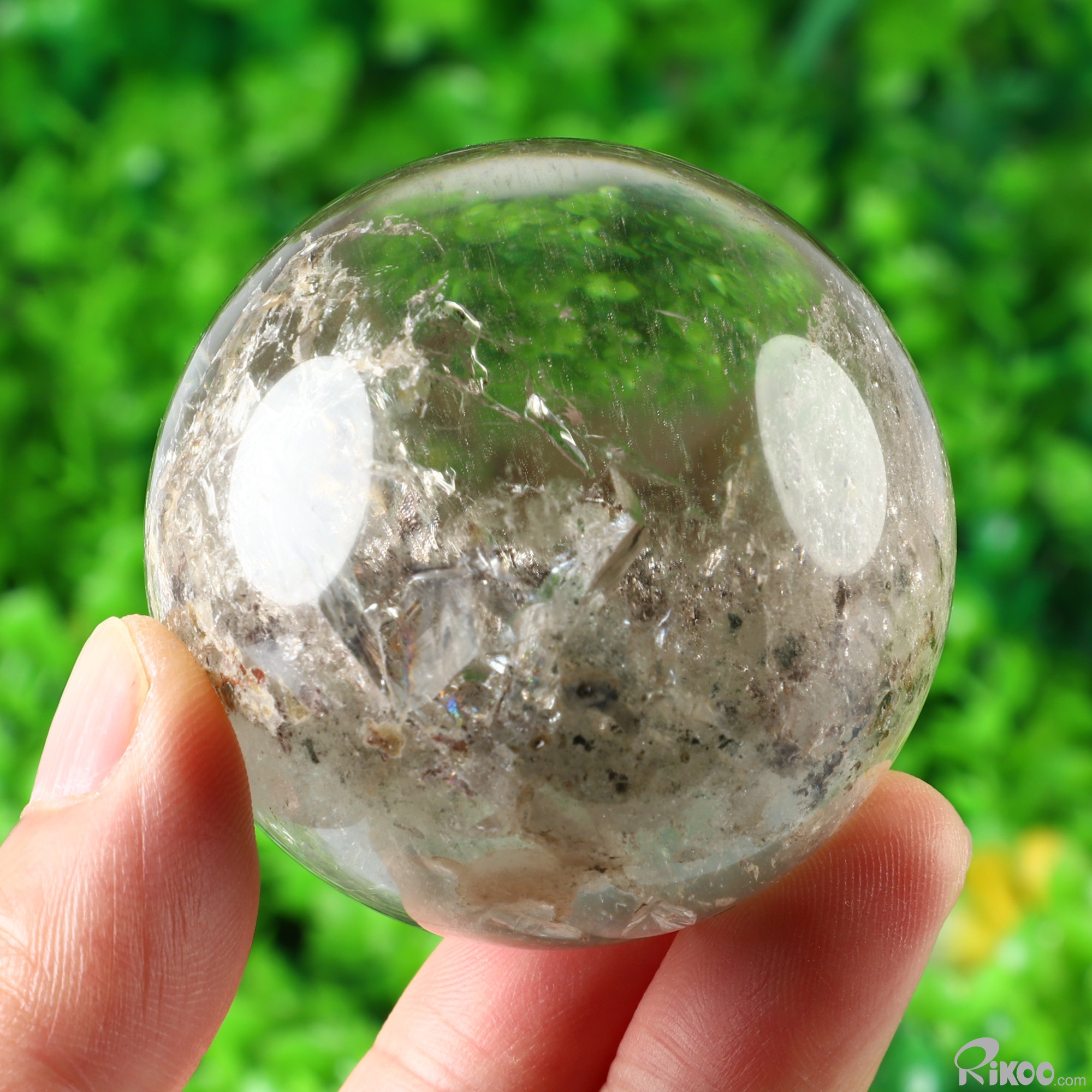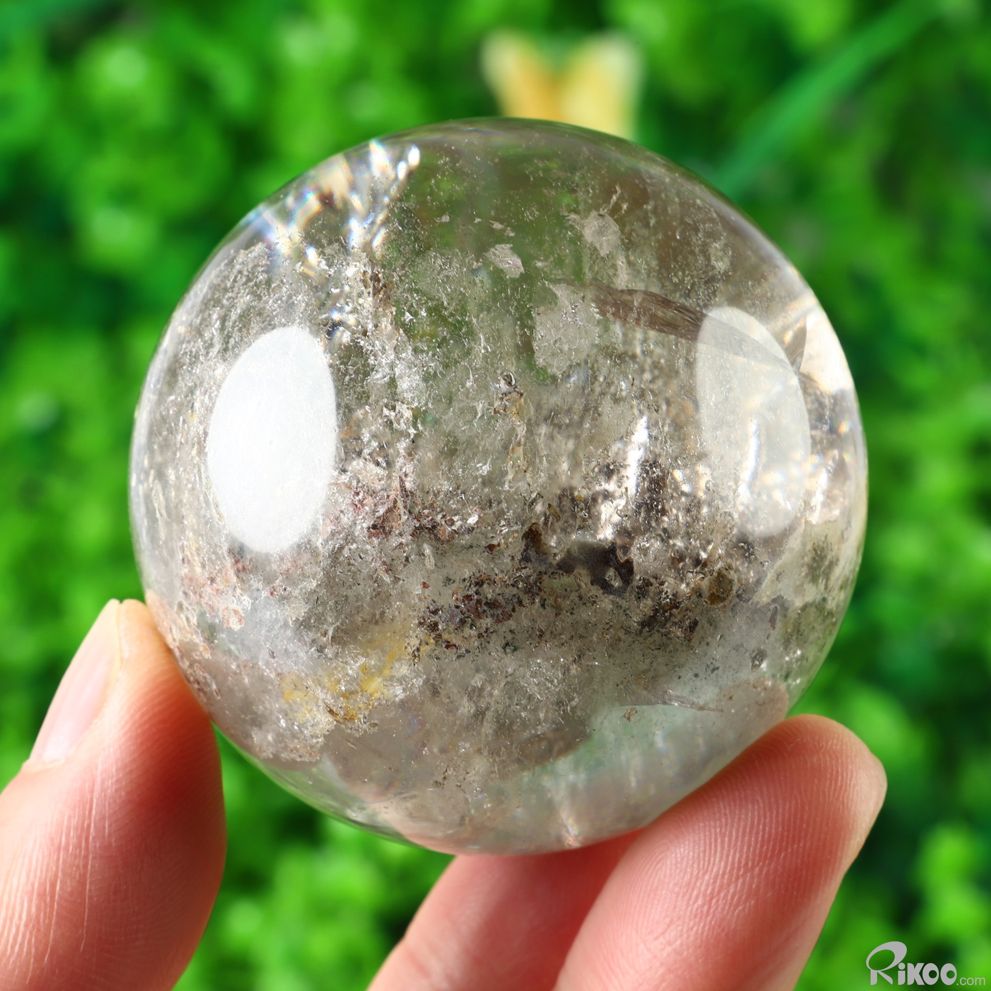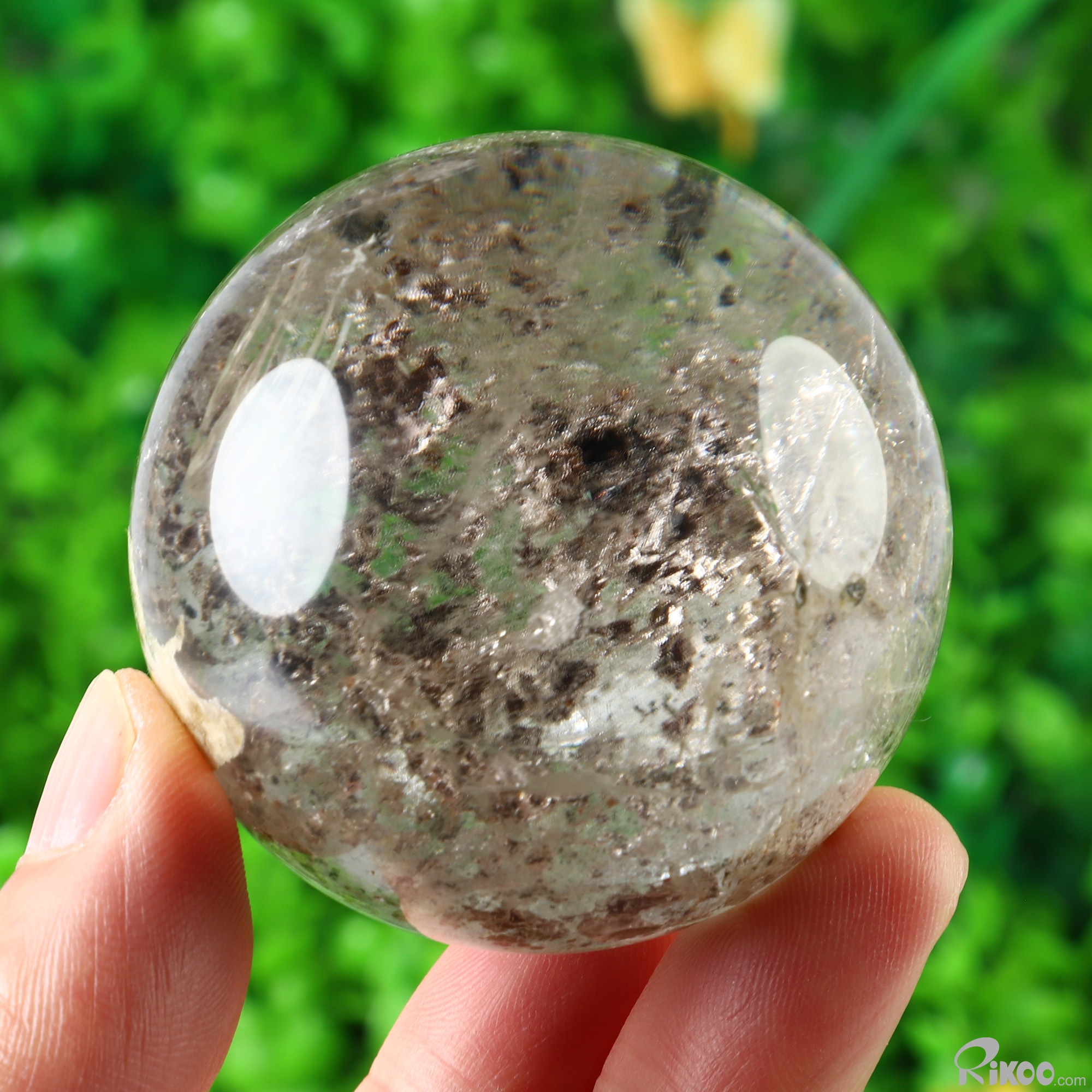 2.2" Phantom Quartz Rock Crystal Hand Carved Crystal Ball/Sphere, Crystal Healing