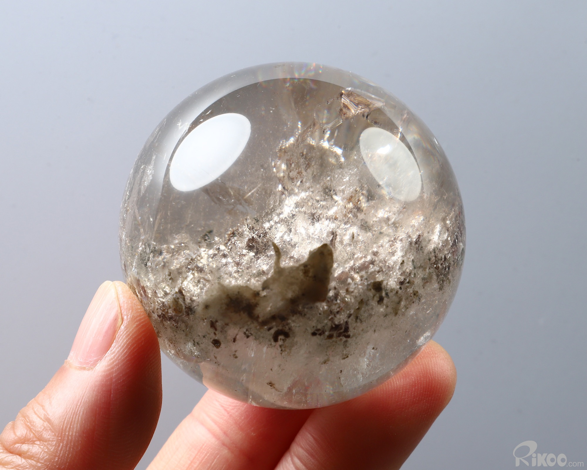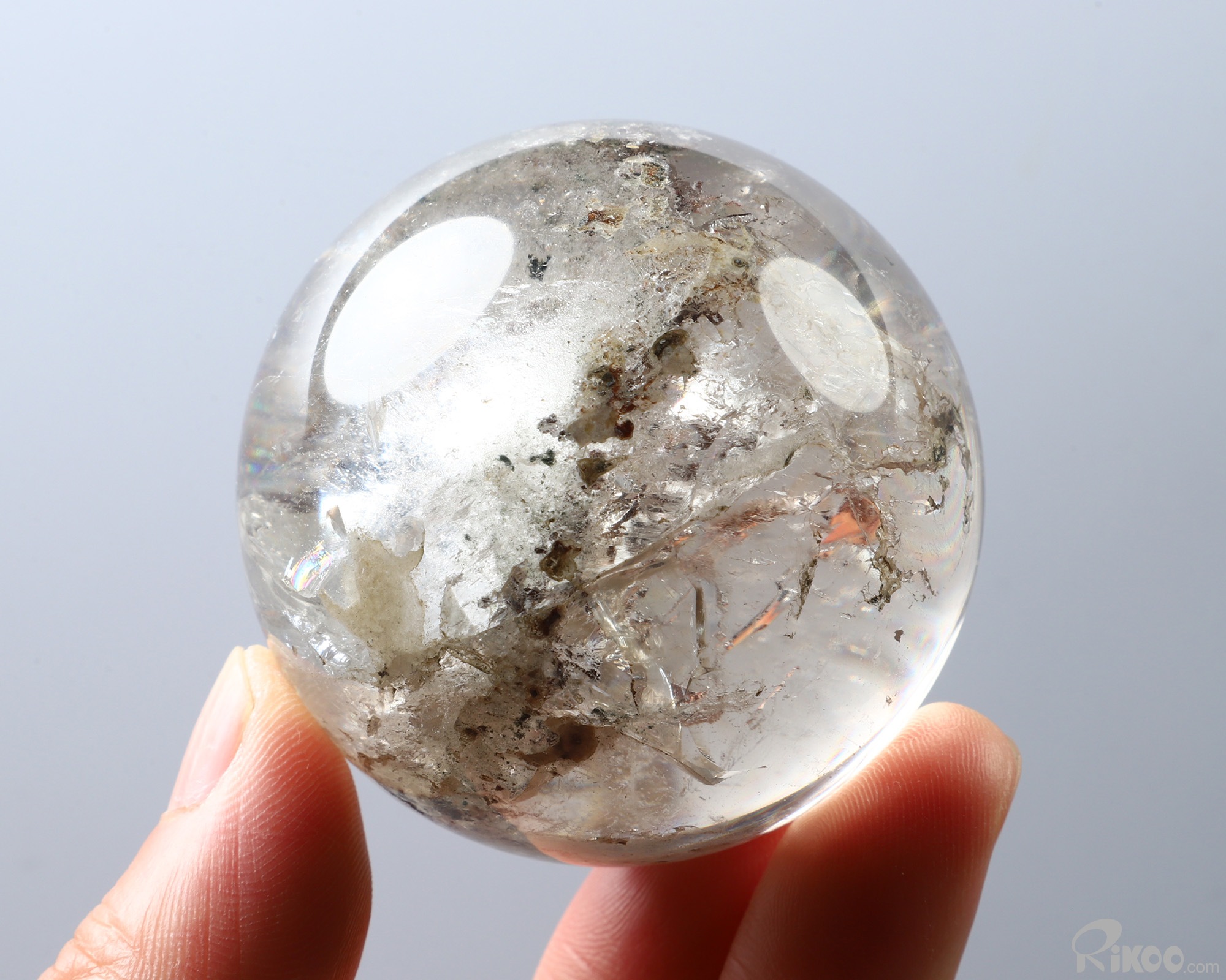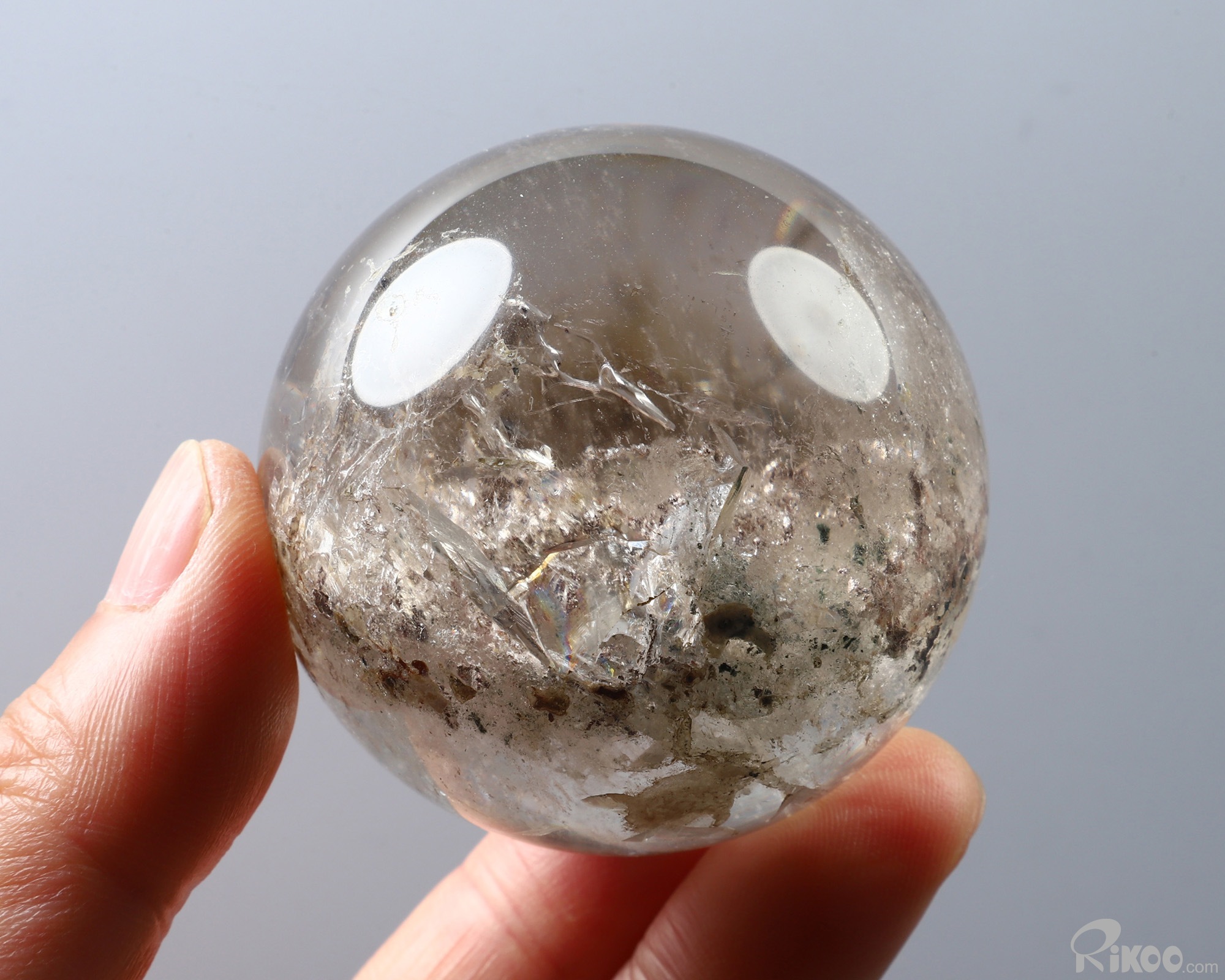 2.2" Phantom Quartz Rock Crystal Hand Carved Crystal Ball/Sphere, Crystal Healing