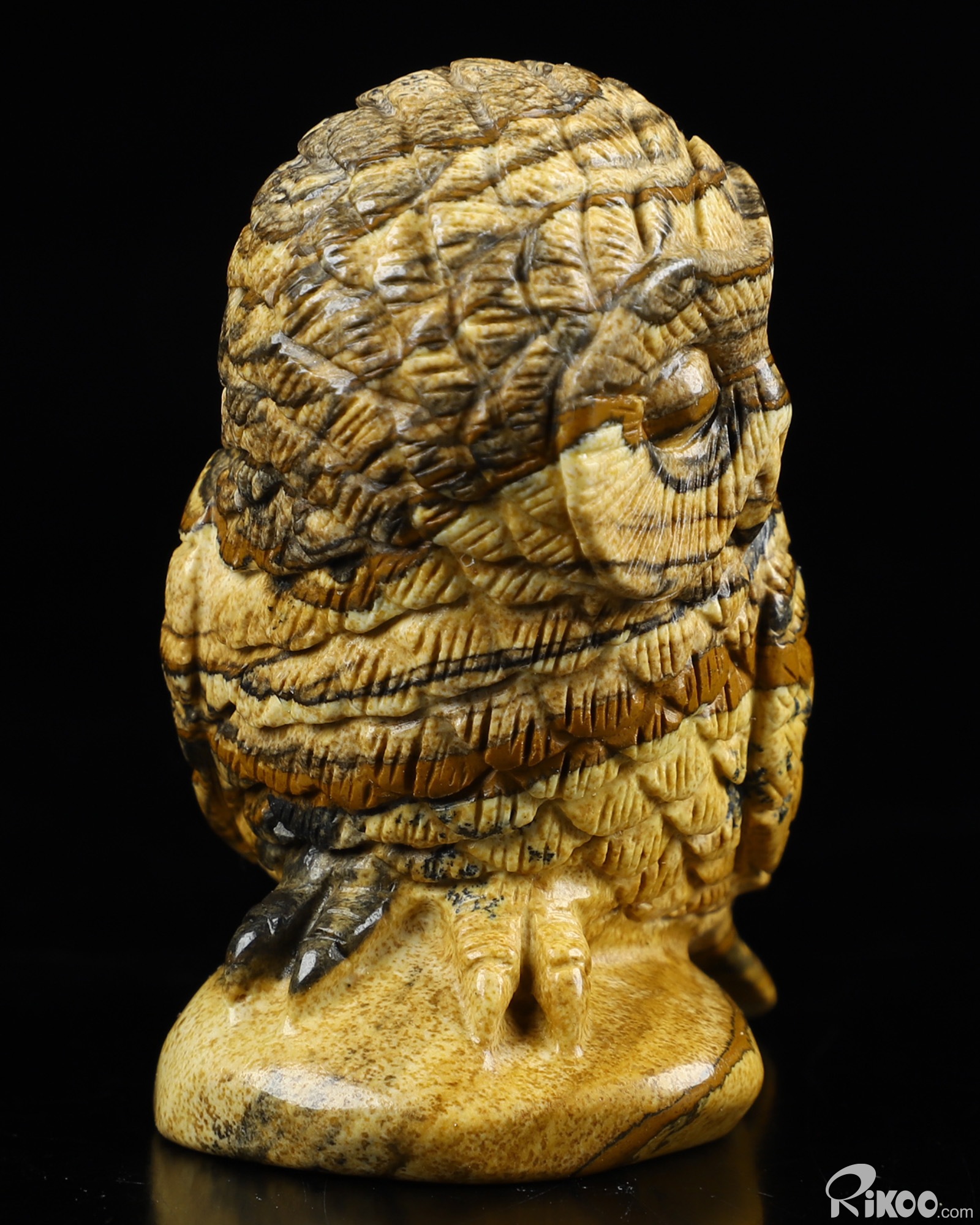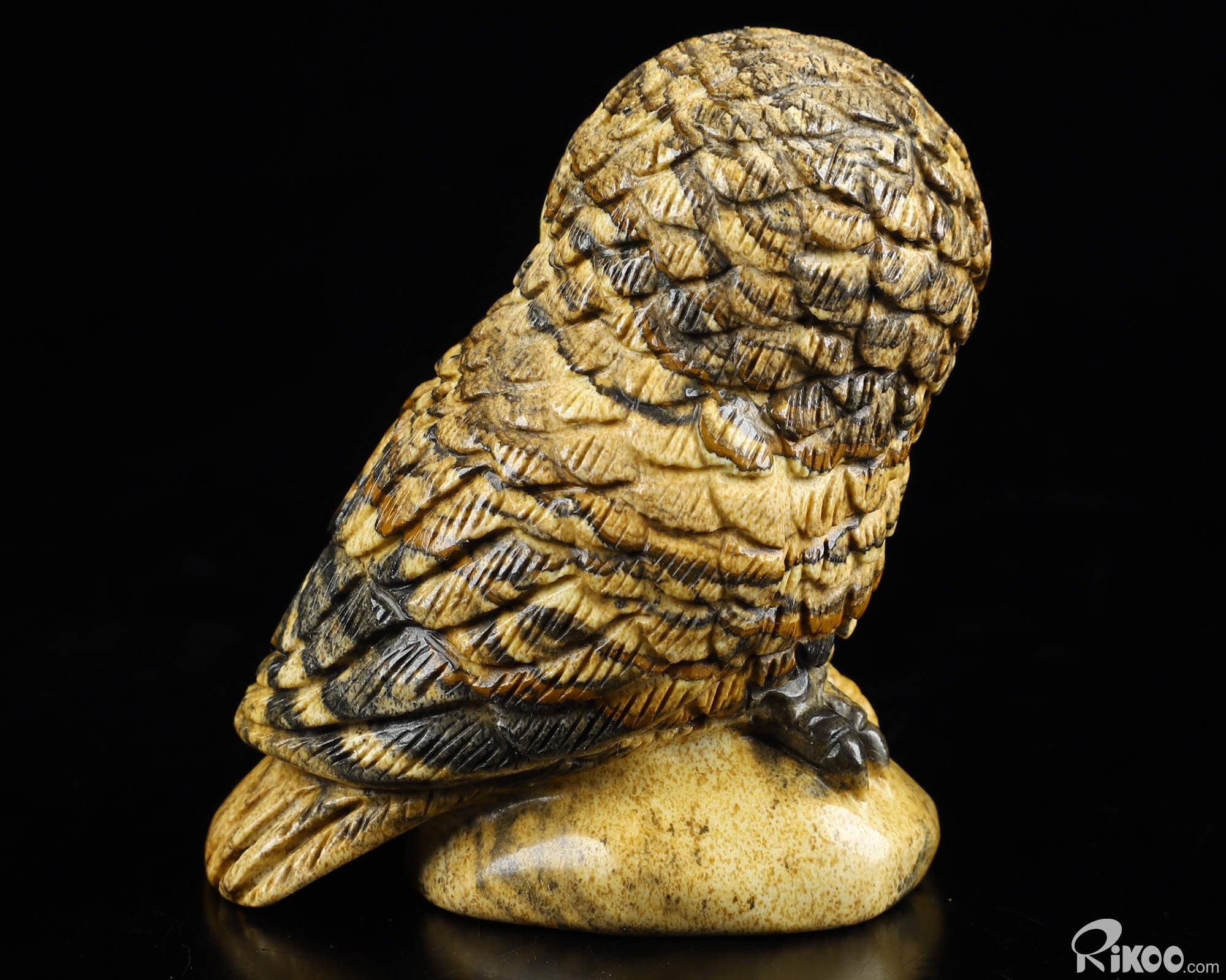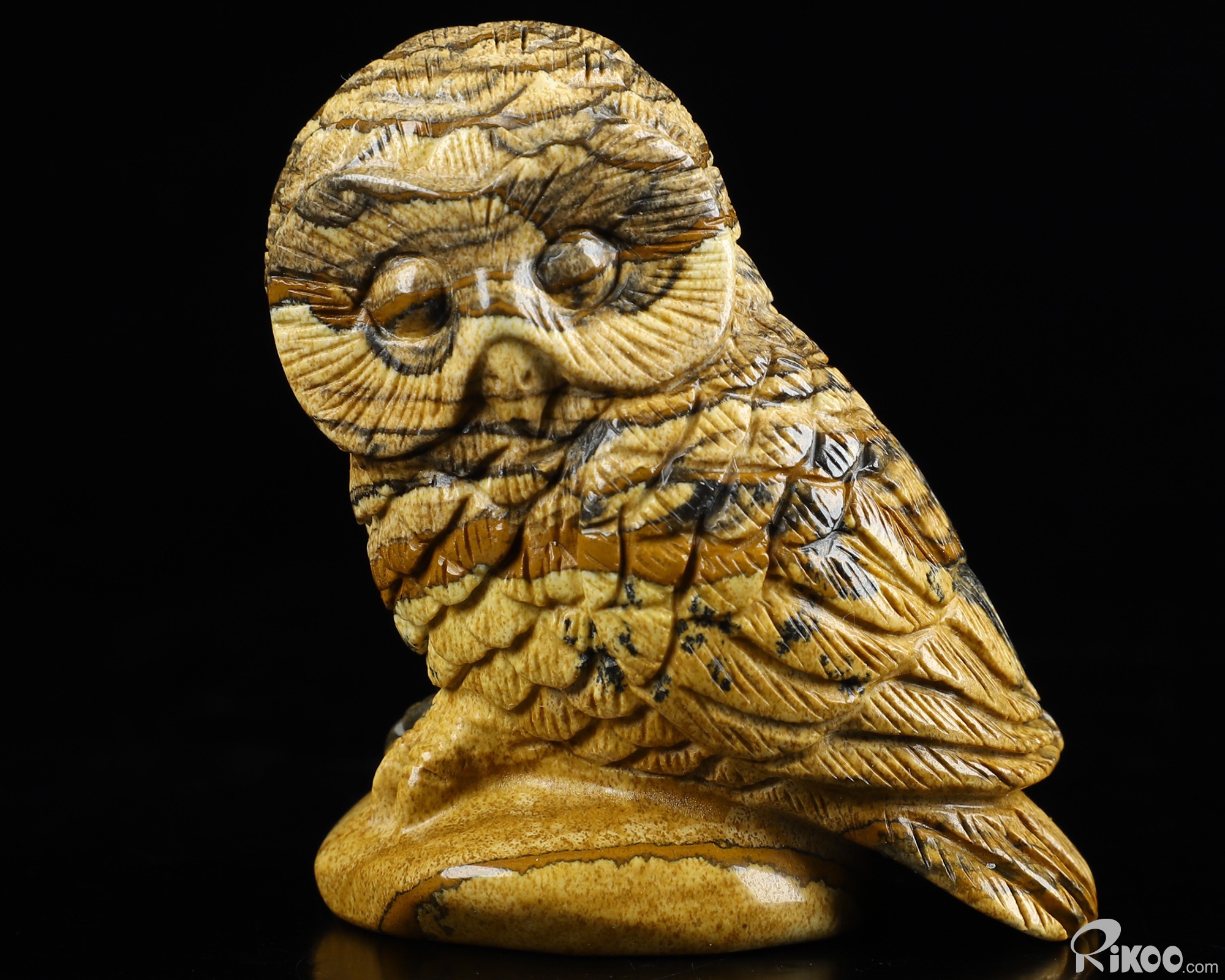 2.2" Picture Jasper Carved Crystal Owl Sculpture, Realistic, Crystal Healing
