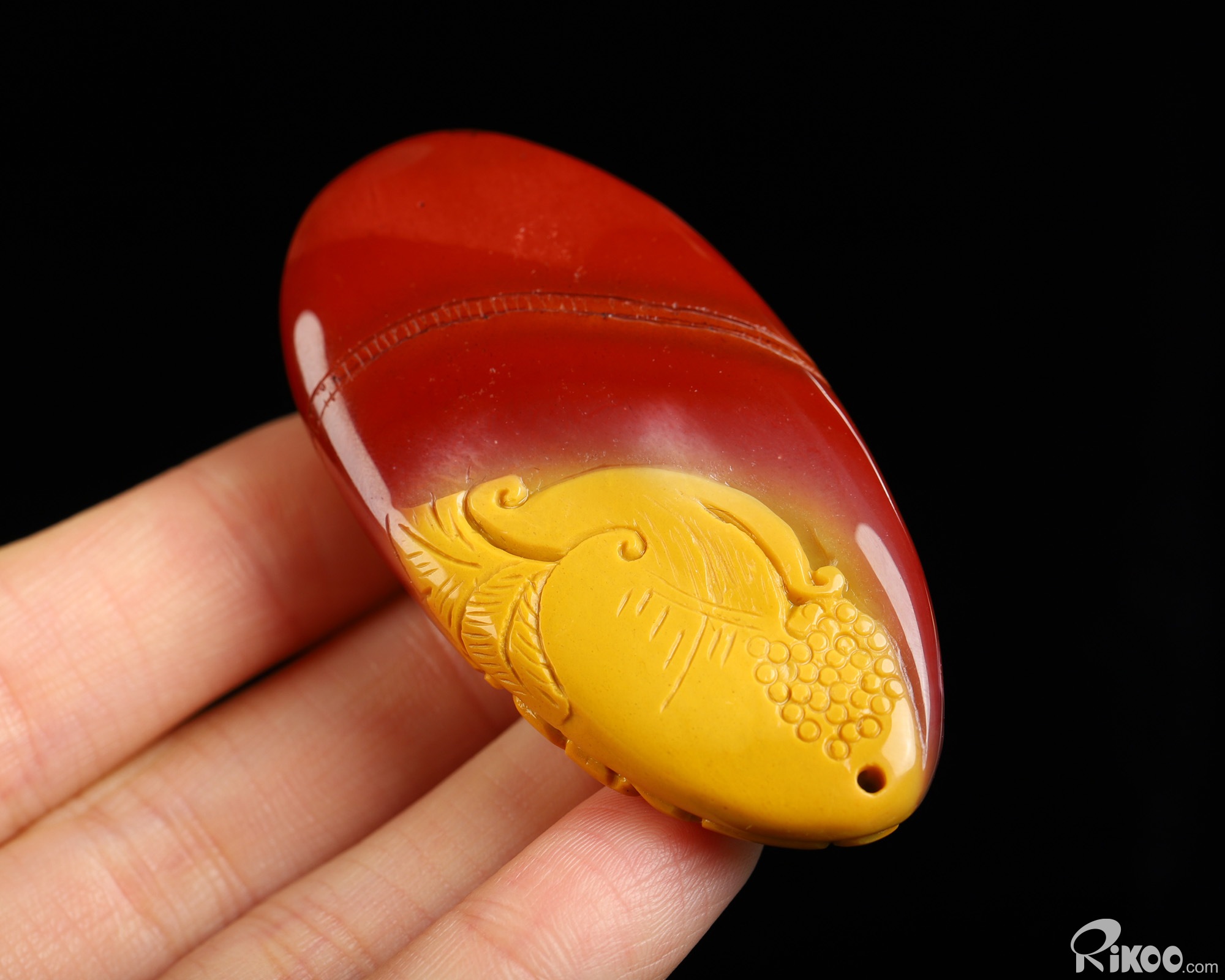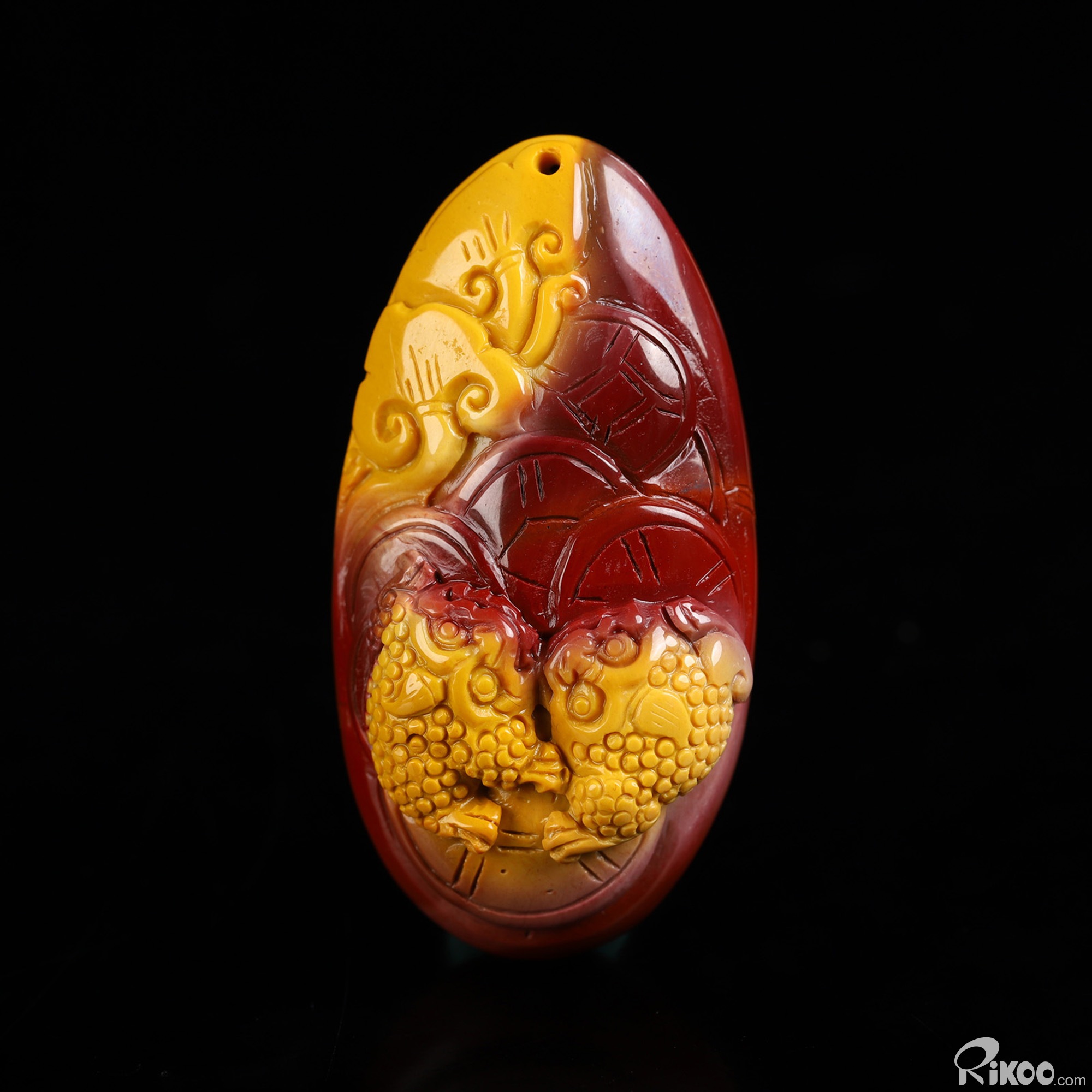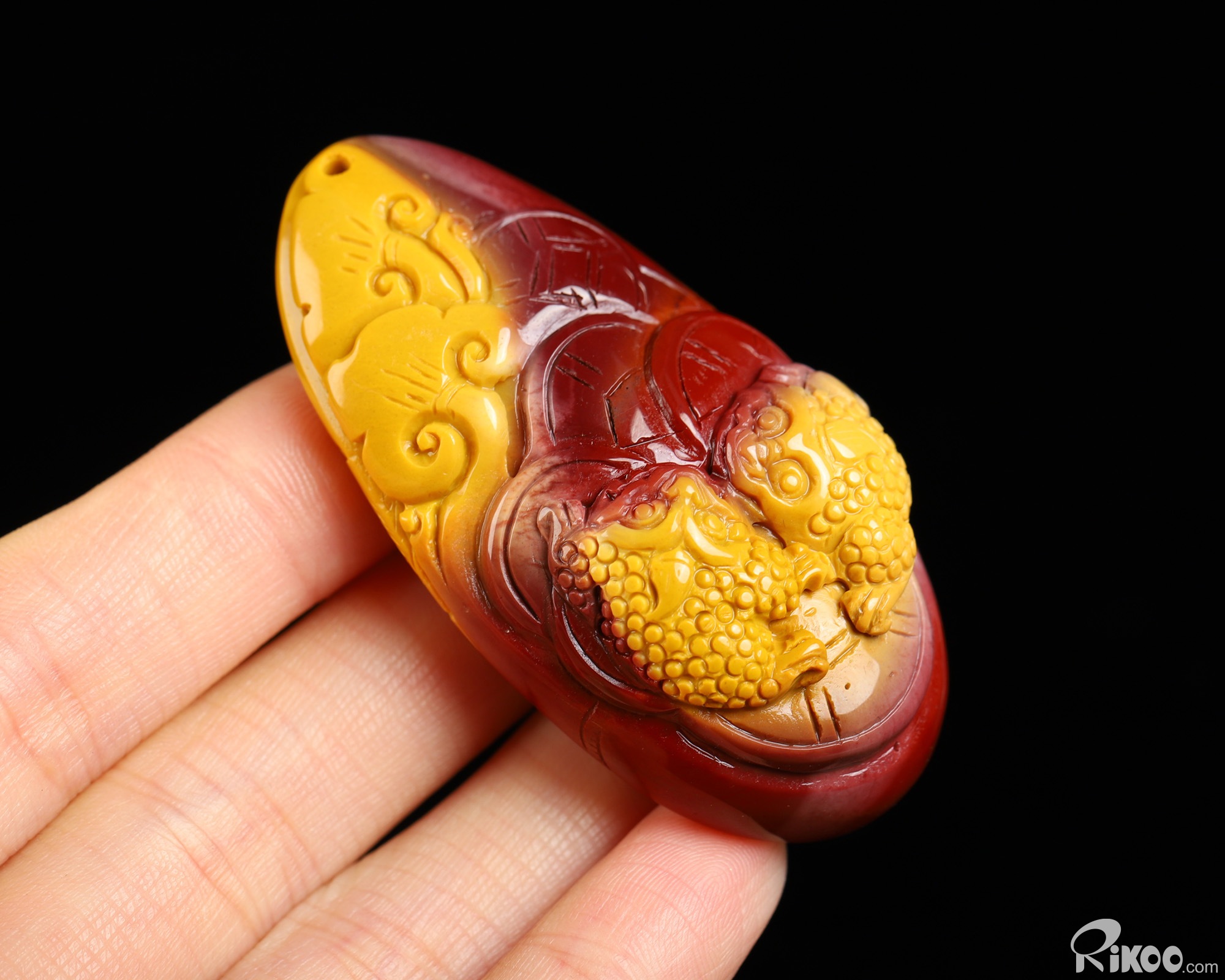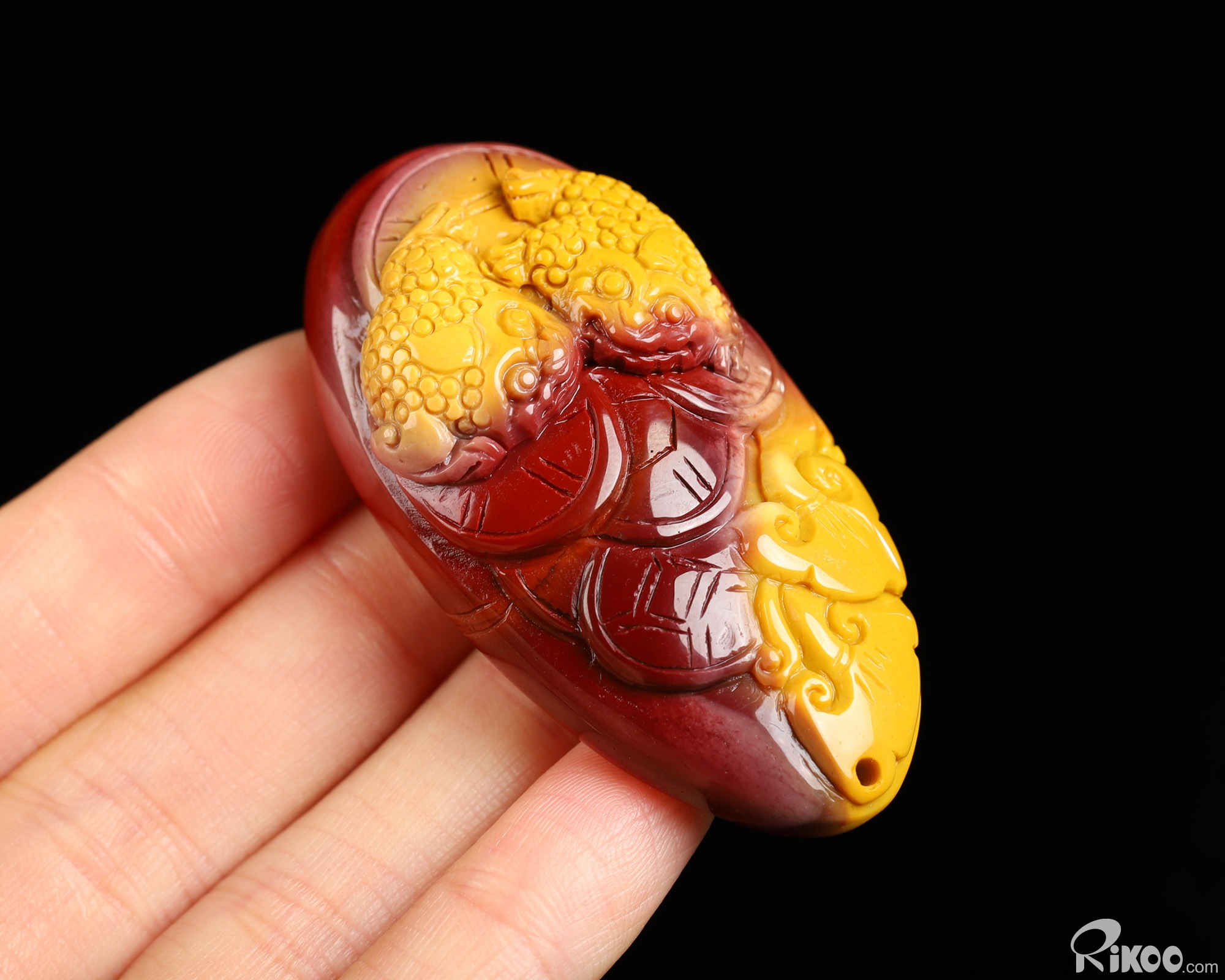 You are looking at a Mookaite Jasper sculpture. The sculpture is 2.3 inches long.