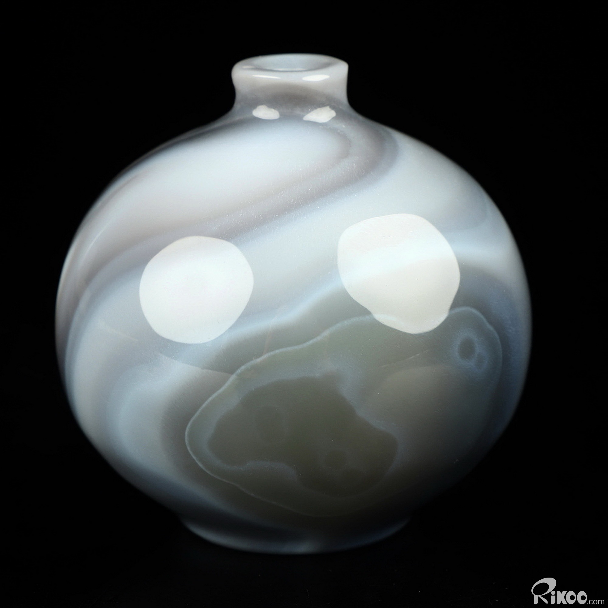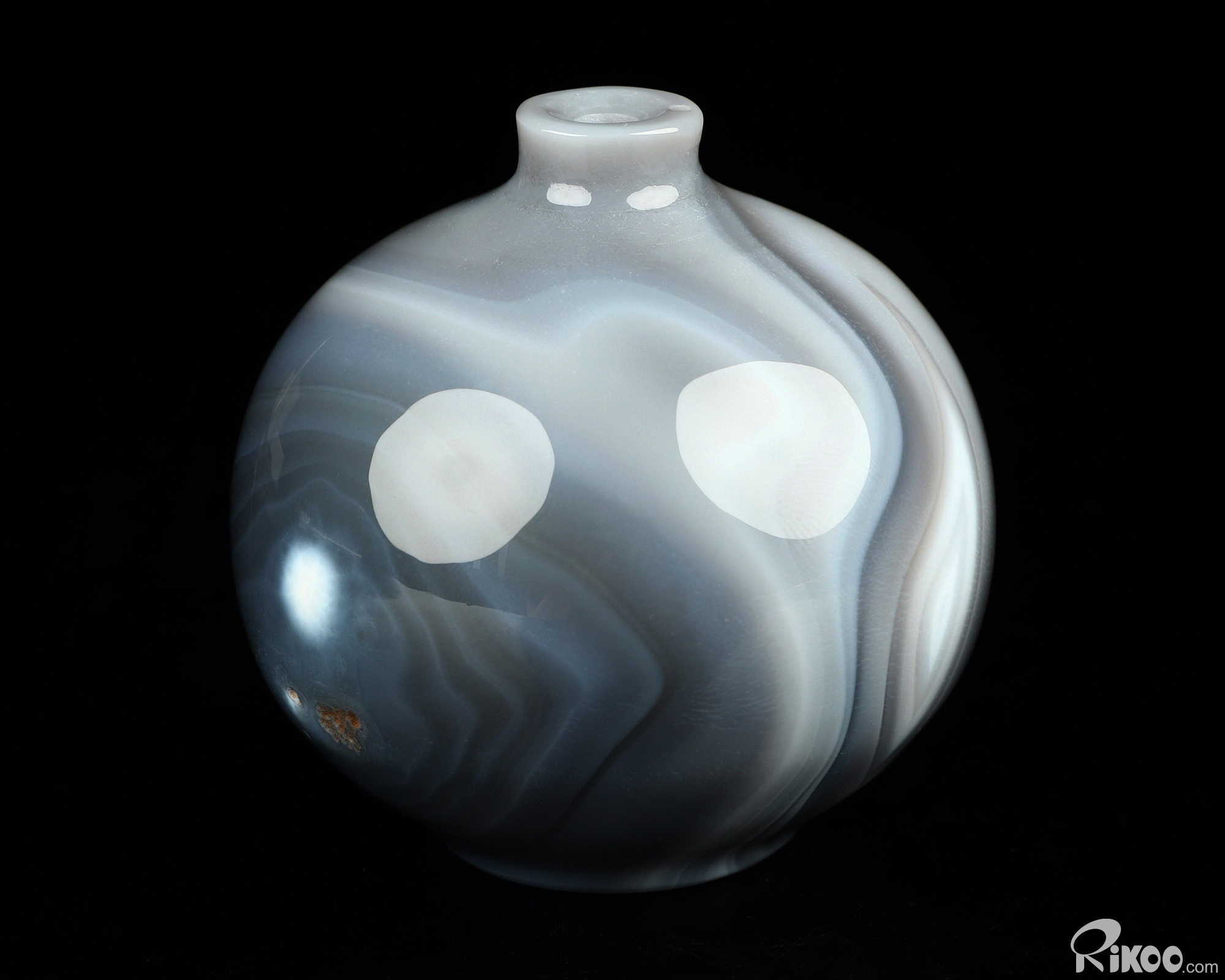This vase with limited functionality is mainly for display.Composed of microscopic crystals of Quartz laid down in colorful bands or ribbons. The appearance of the stone is waxy and soft. Almost always translucent and occasionally transparent. Agates are grounding stones. Agates are one of the oldest good luck stones. They help obtain a better physical/emotional balance. They work to raise consciousness. Builds self-confidence. Agate enables the person wearing it to choose their friends carefully. Used to avert from lighting and stormy weather (physically and metaphysically), agate brings prosperity. It is a protector of children. This stone helps us to have patience, and allows for inner peace. Use agate as a gazing tool for divination and meditation. Agate balances emotions and brings insight to any situation.