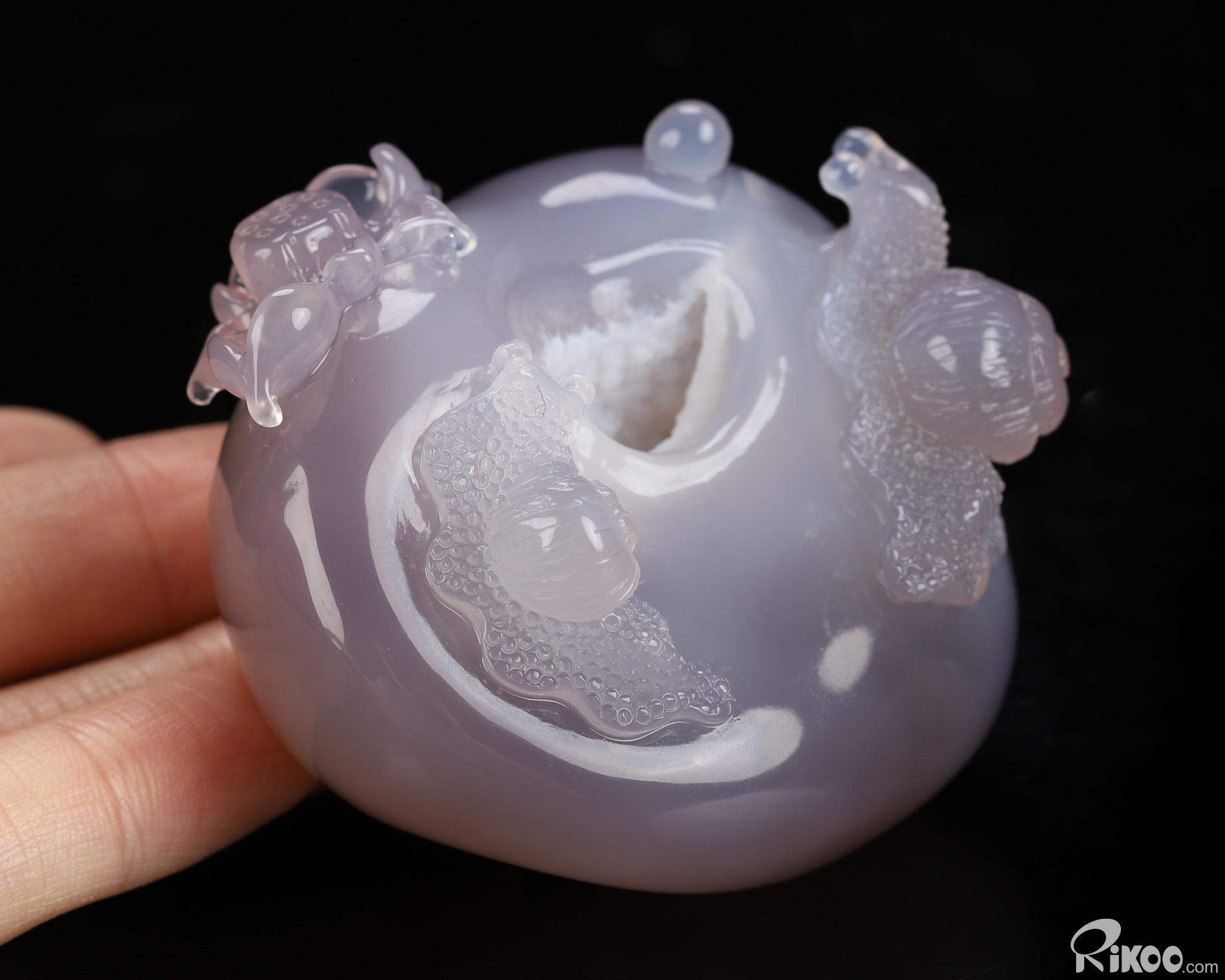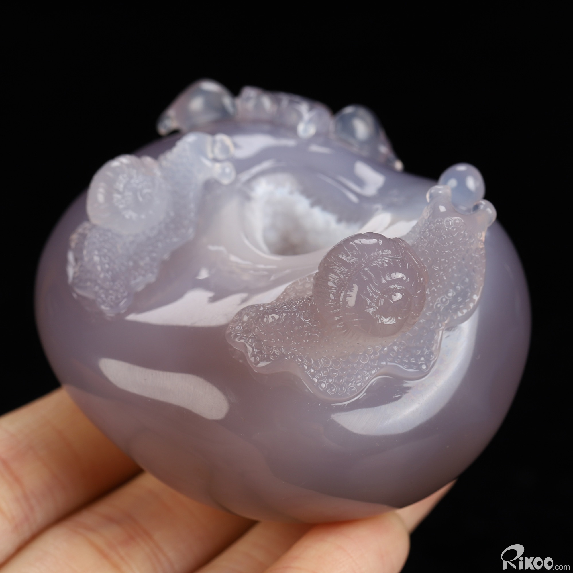 2.4" Agate Geode Hand Carved Crystal Snails Sculpture, Crystal Healing