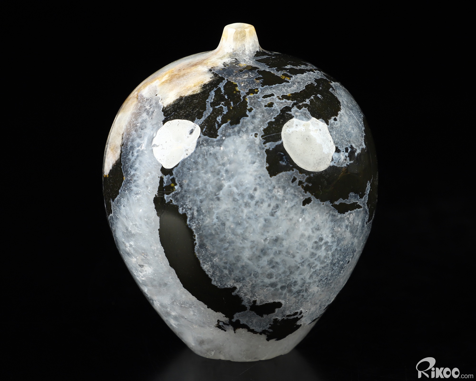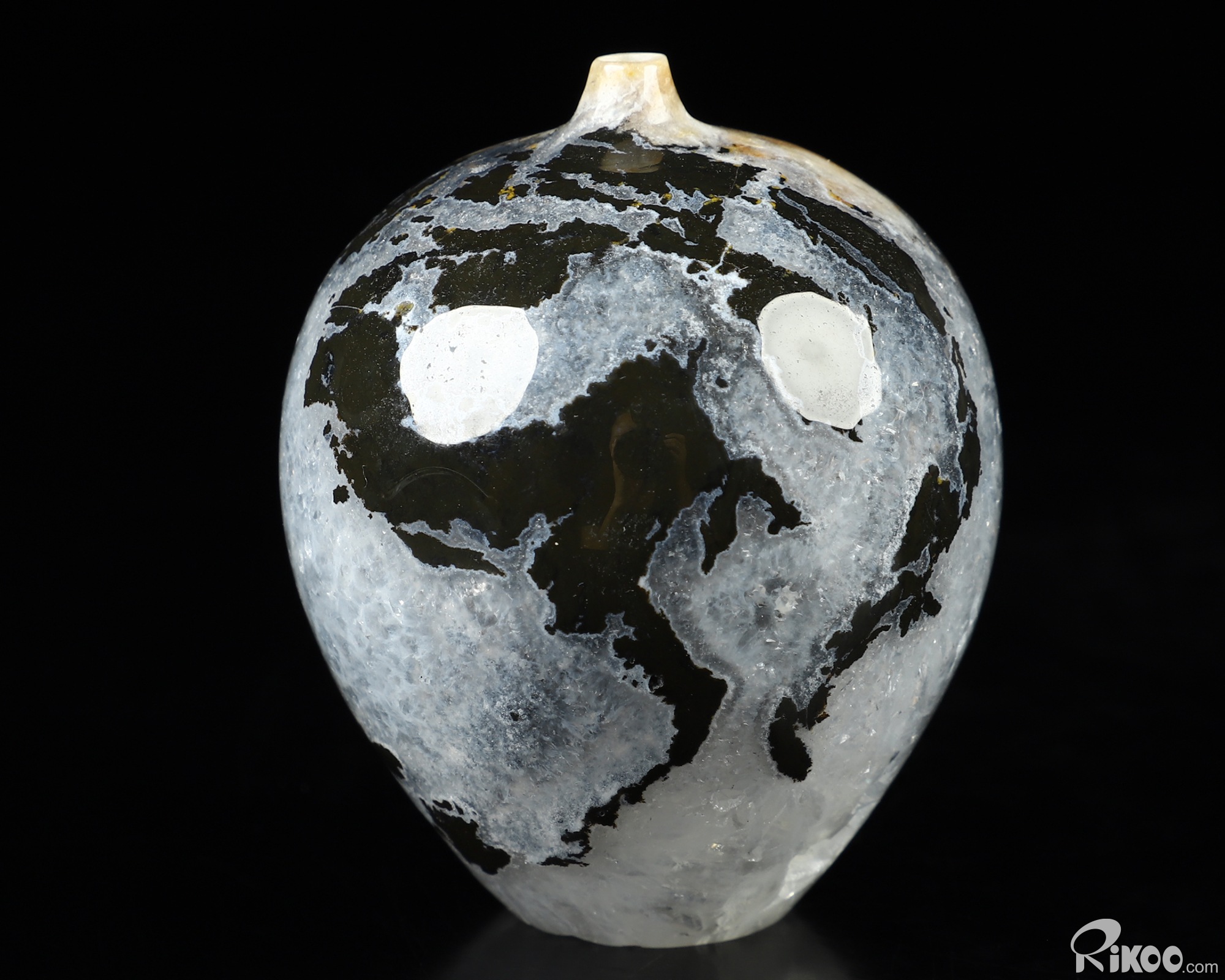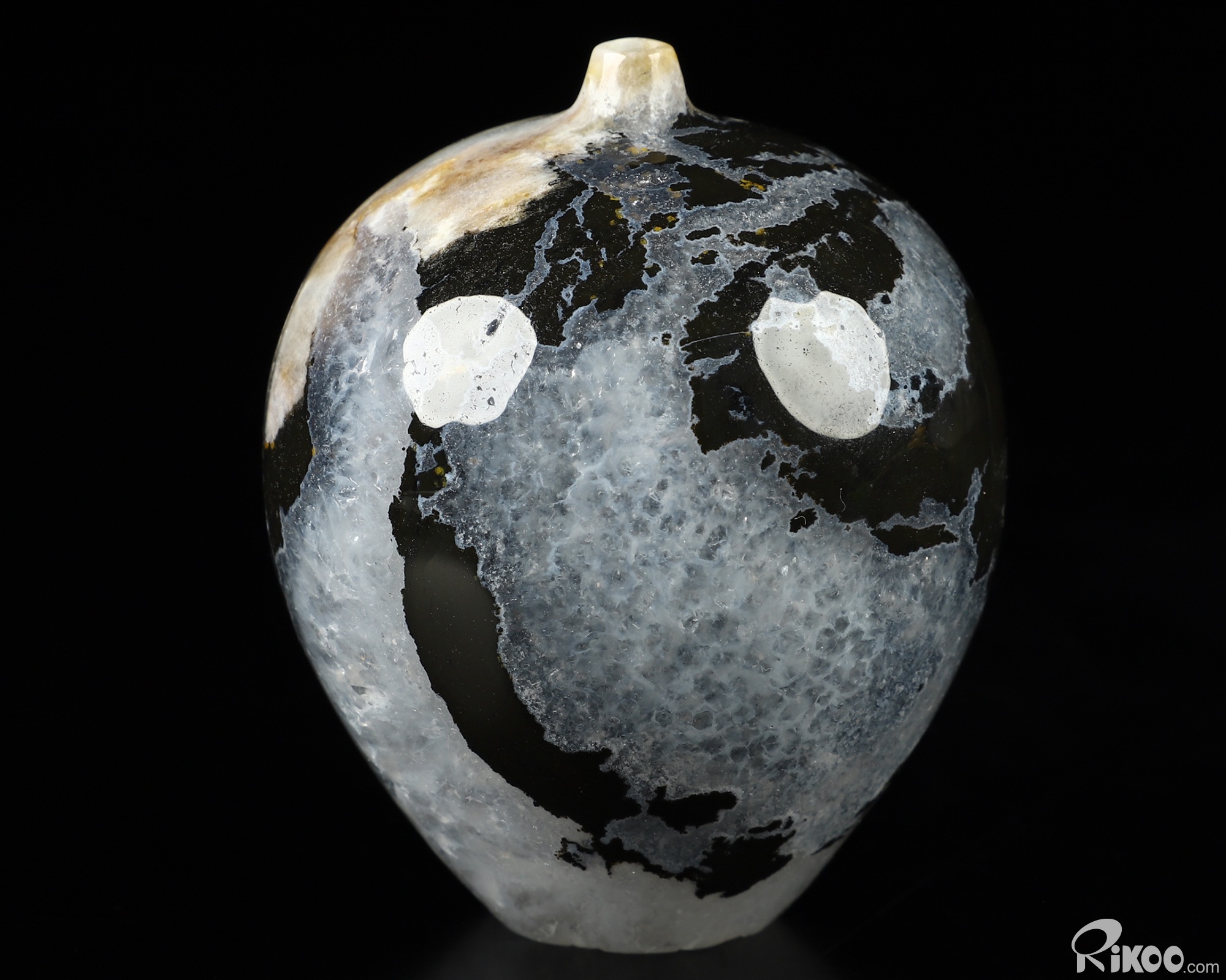 2.4" Black Zebra Agate Hand Carved Crystal Vase Sculpture, Crystal Healing
