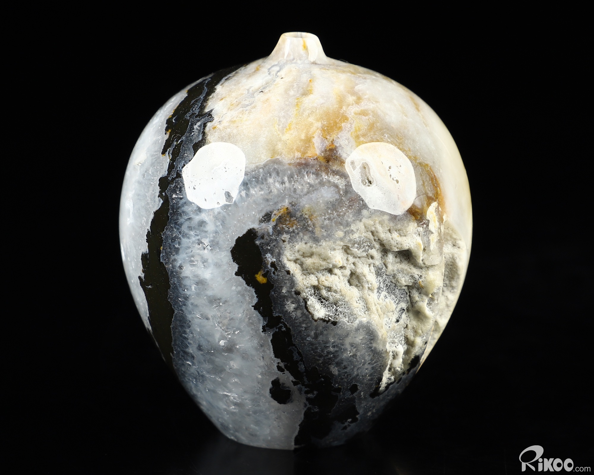 2.4" Black Zebra Agate Hand Carved Crystal Vase Sculpture, Crystal Healing
