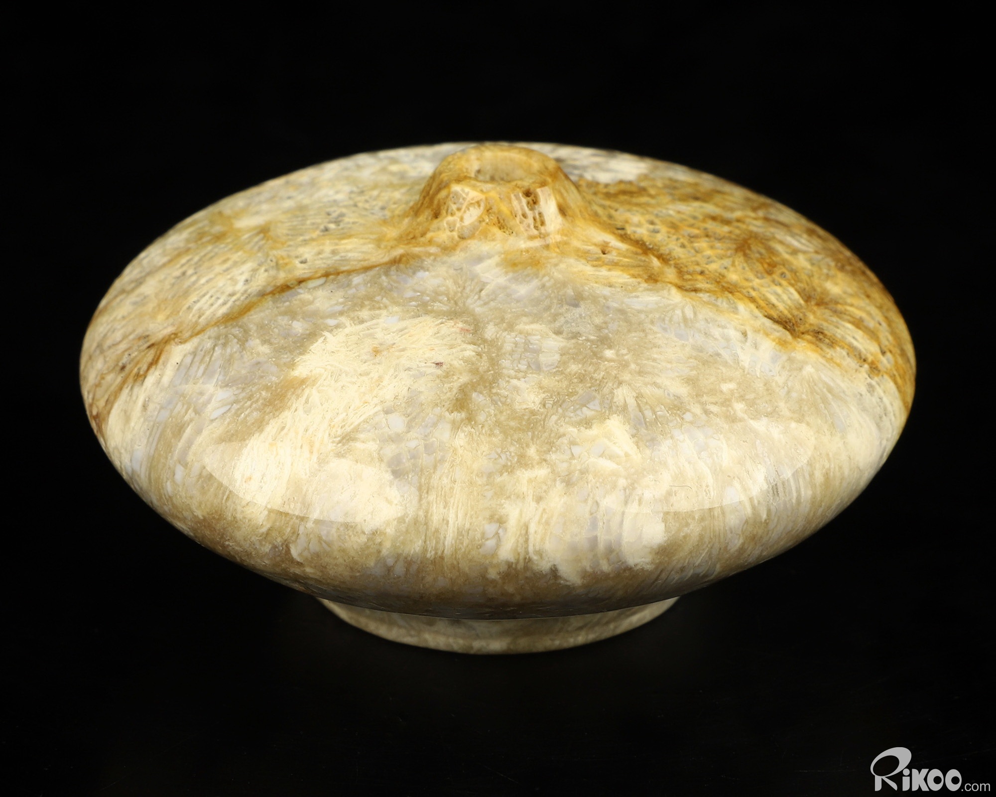 You are looking at a Coral Fossil sculpture. The sculpture is 2.4 inches long.
