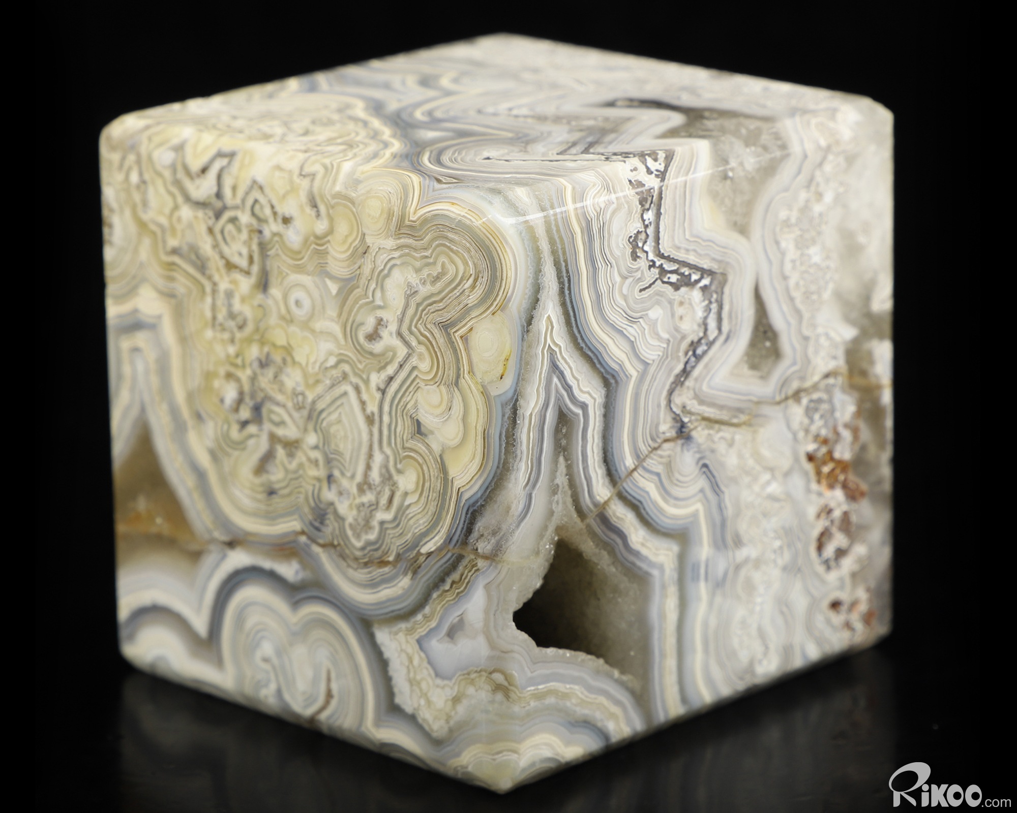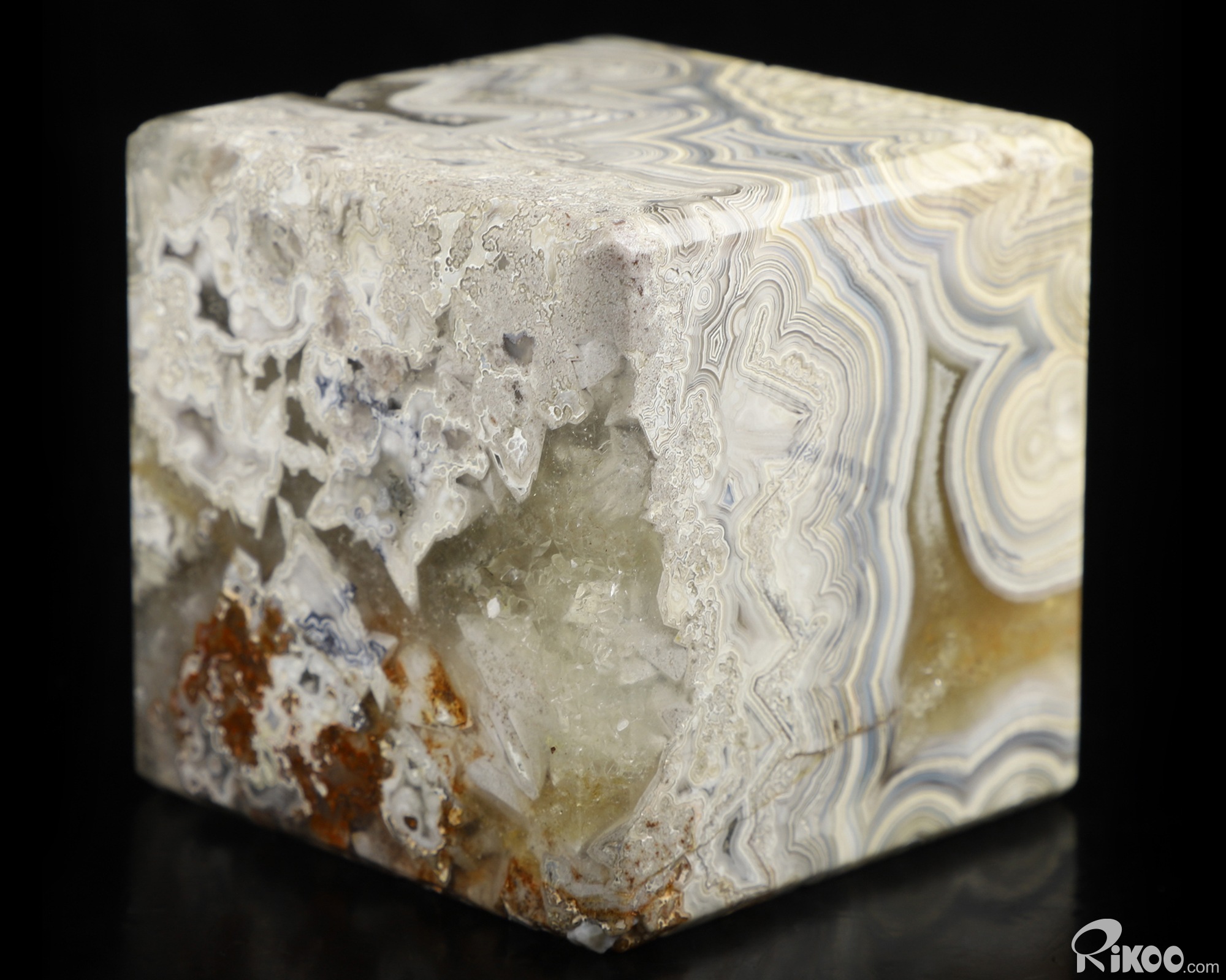 2.4" Crazy Lace Agate Carved Crystal Cube, Crystal Healing