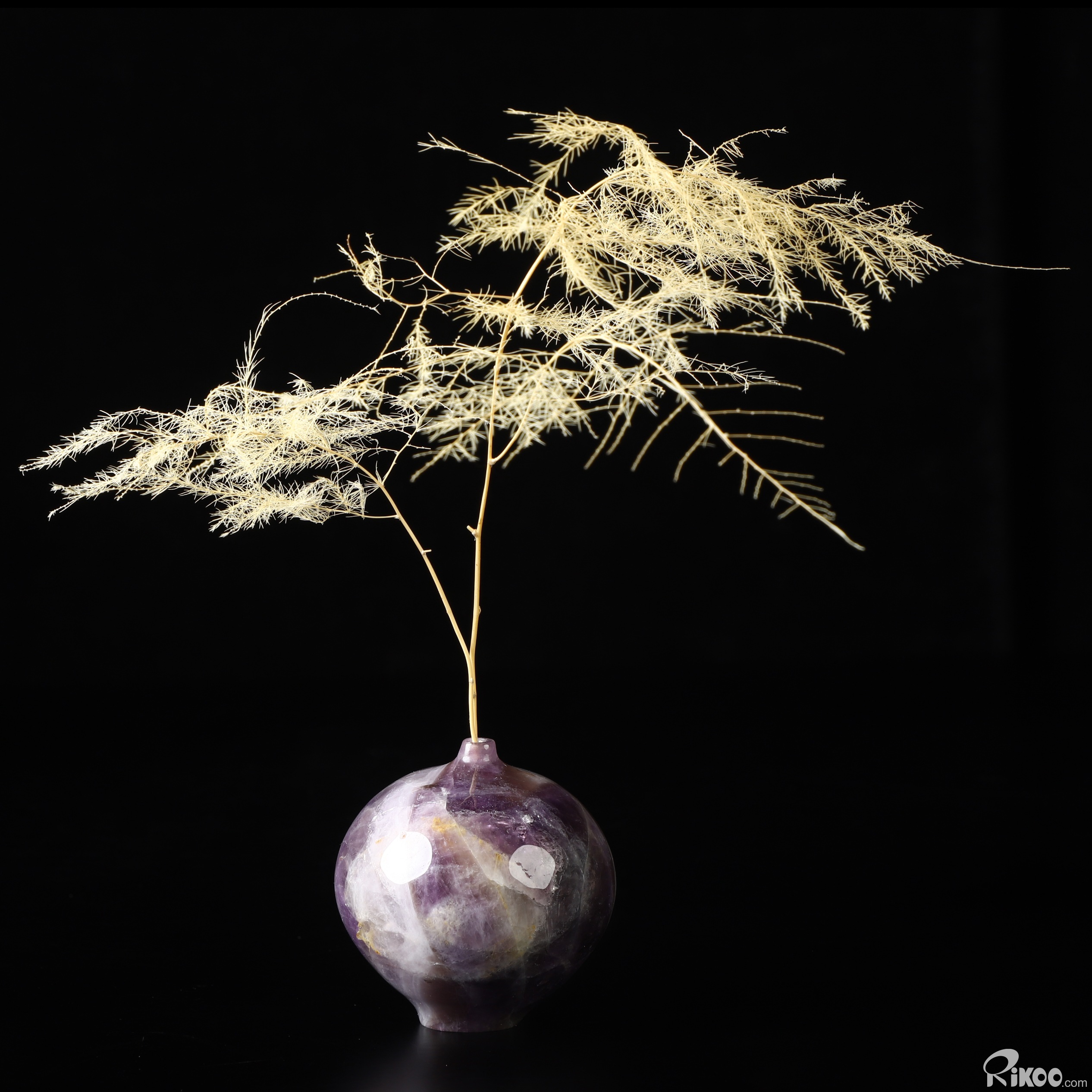 2.4" Dream Chevron Amethyst Hand Carved Crystal Vase Sculpture, Crystal Healing