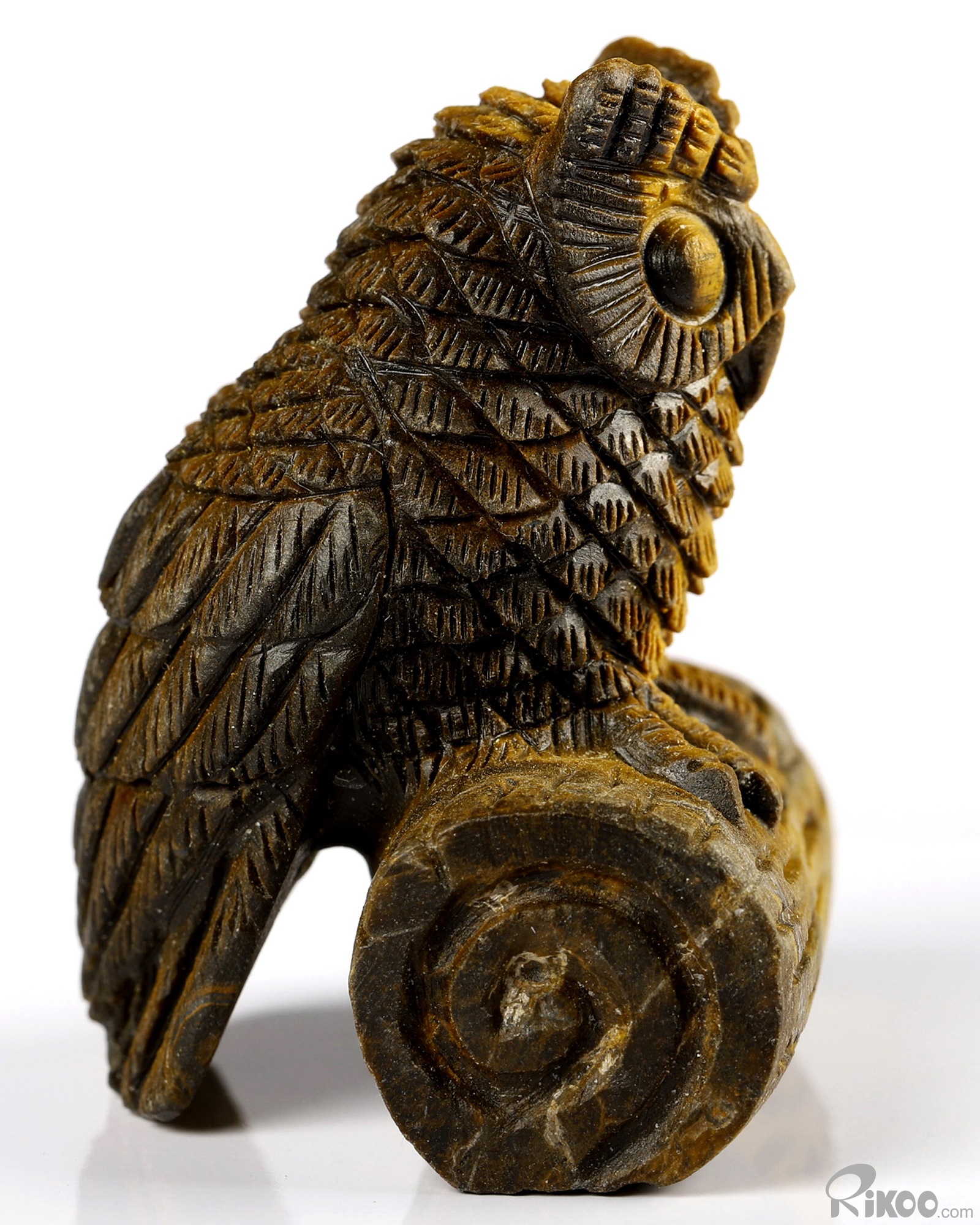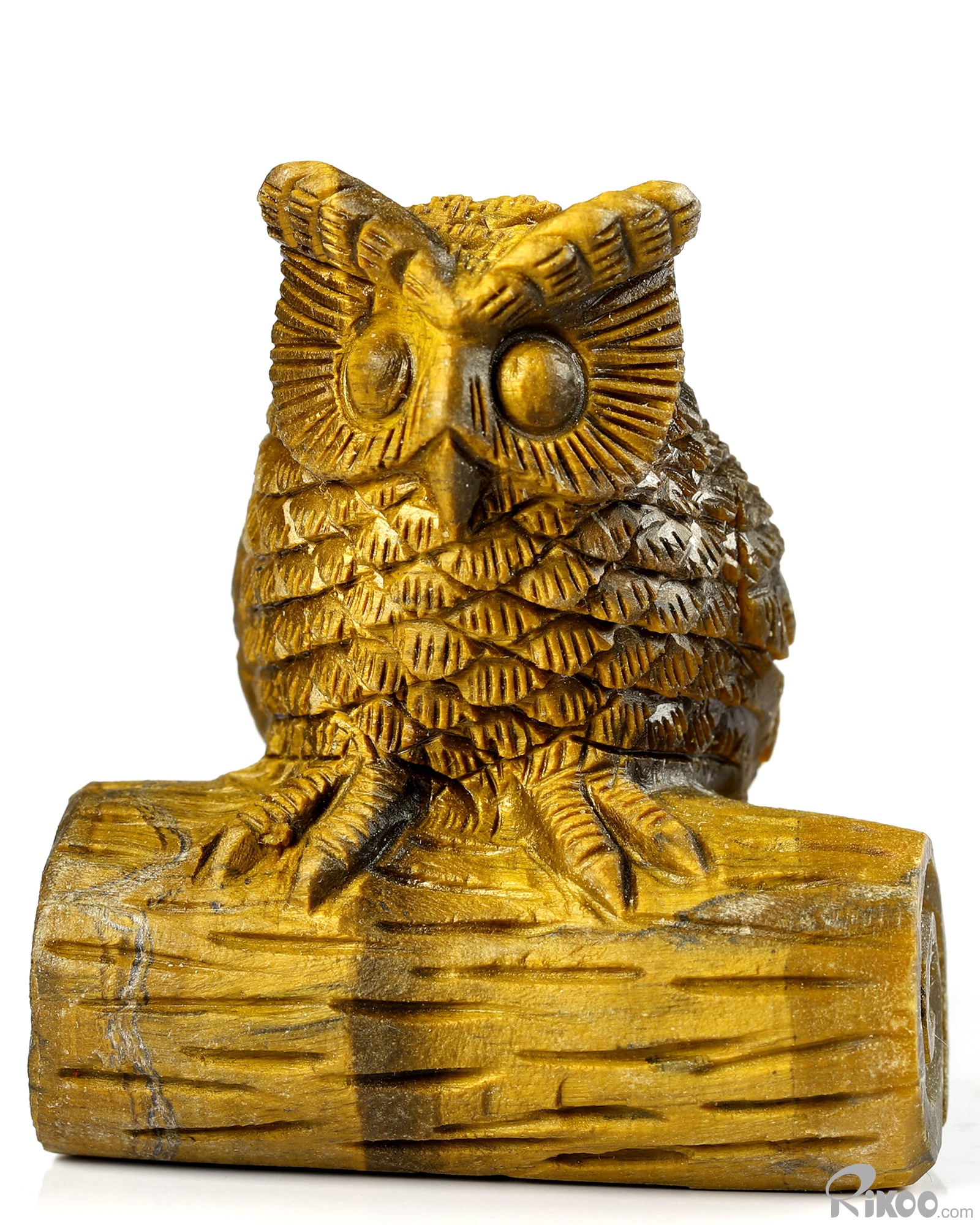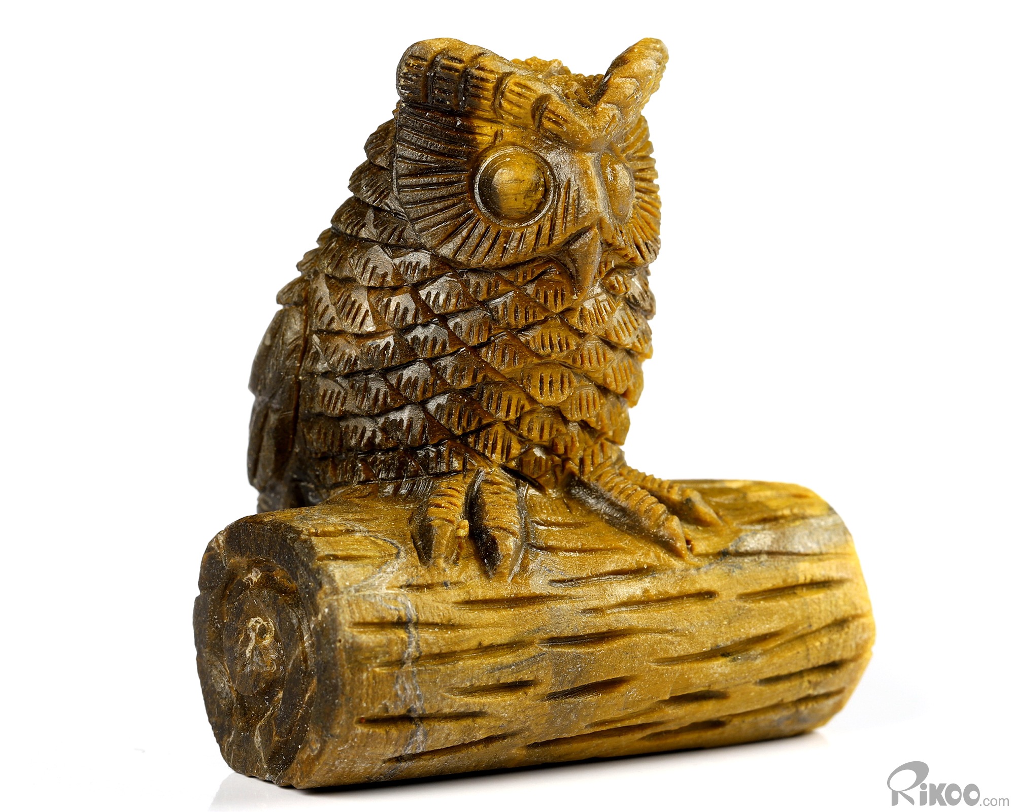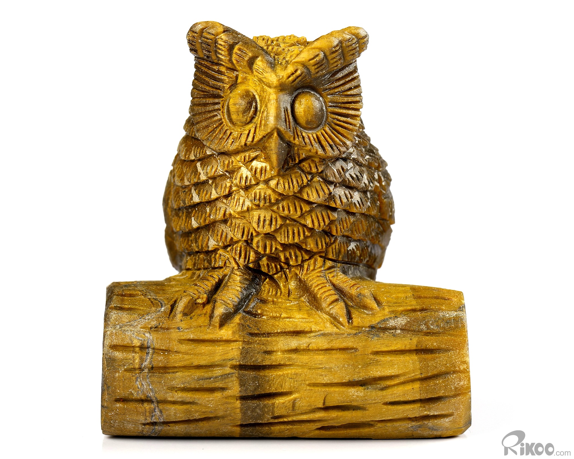 2.4" Gold Tiger's Eye Carved Crystal Owl, Realistic, Crystal Healing