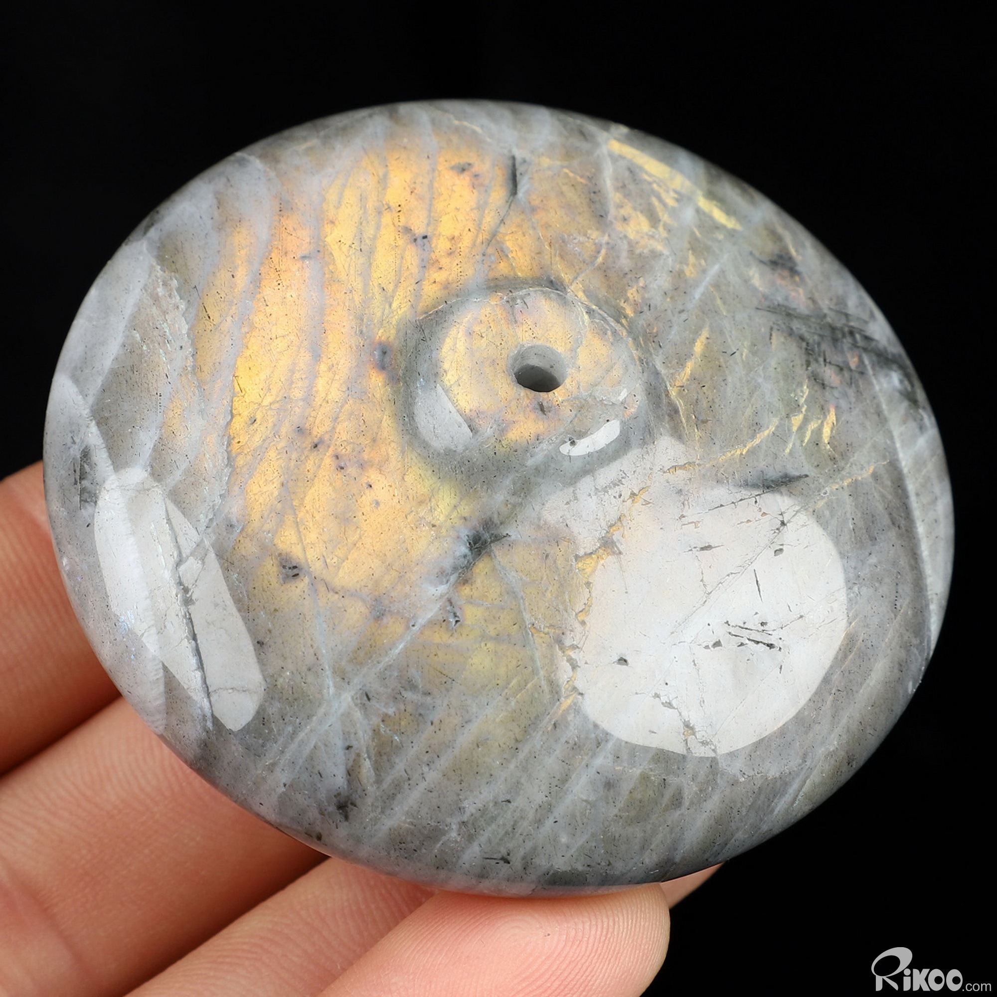 You are looking at a Labradorite sculpture. The sculpture is 2.4 inches long.