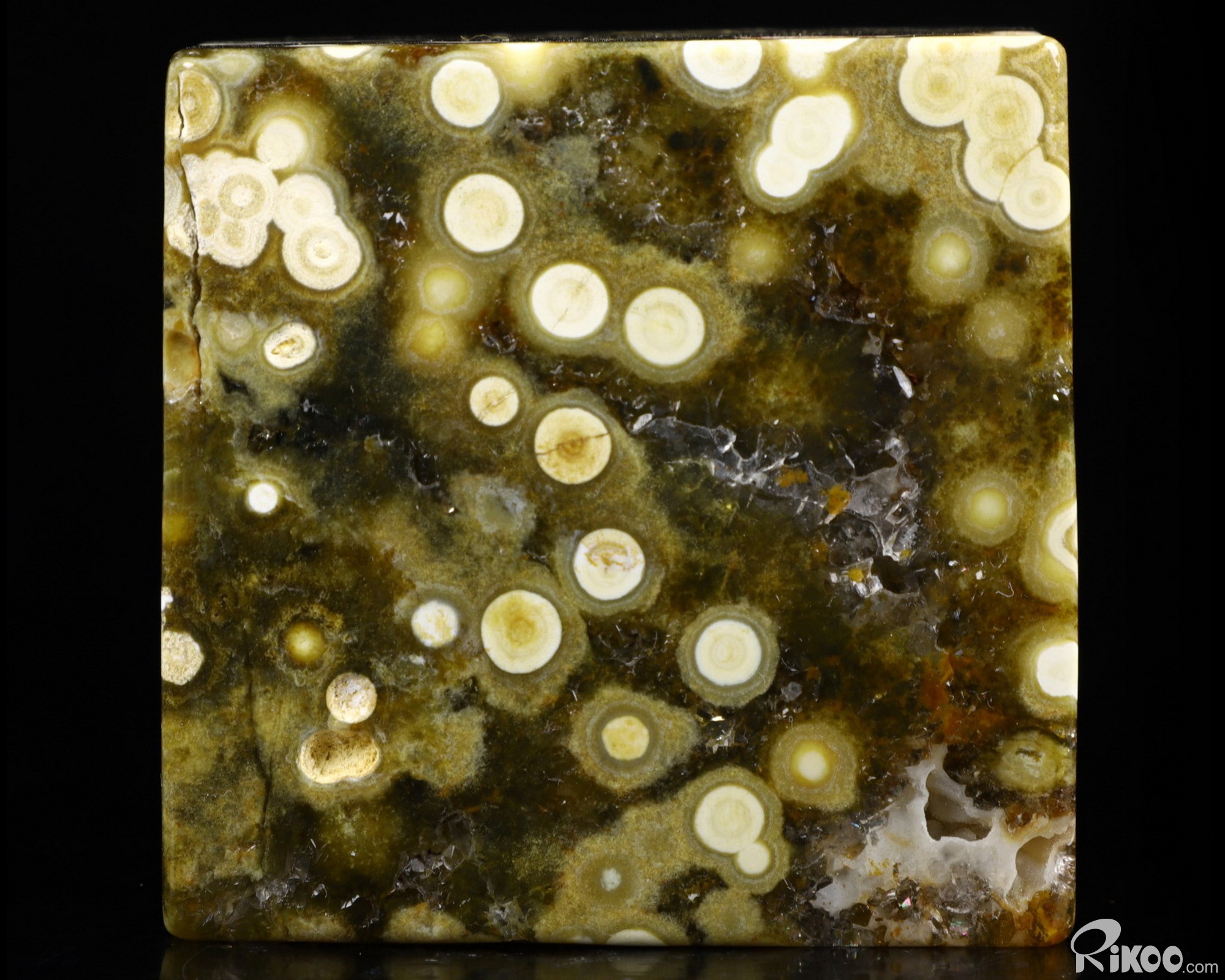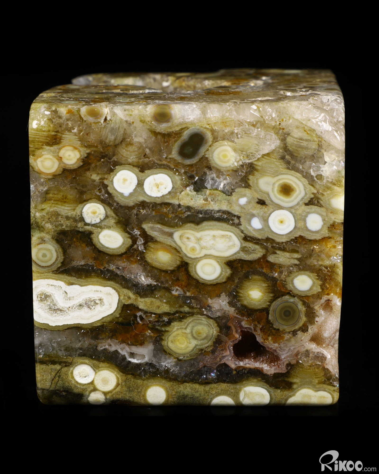 Ocean Jasper is a silicon dioxide mineral that occurs in highly silicified rhyolite. This means that it is in the Quartz family and just like all other Jaspers it has a hardness of 6.5 to 7. Ocean Jasper is sometimes called Orbicular Jasper, a broad term given to several Jaspers displaying perfect circles throughout the piece. The peculiar orbs or "bull's eye" patterns are caused when Quartz and feldspar crystallize in radial aggregates of needle shaped crystals. A few of these other Orbicular Jaspers are Poppy Jasper and Leopard Skin Jasper. Many of these other orbicular jaspers are found in various locations throughout the world, however none are as rare as Ocean Jasper! Only found in one locale in the world – off the northwest coast of Madagascar.