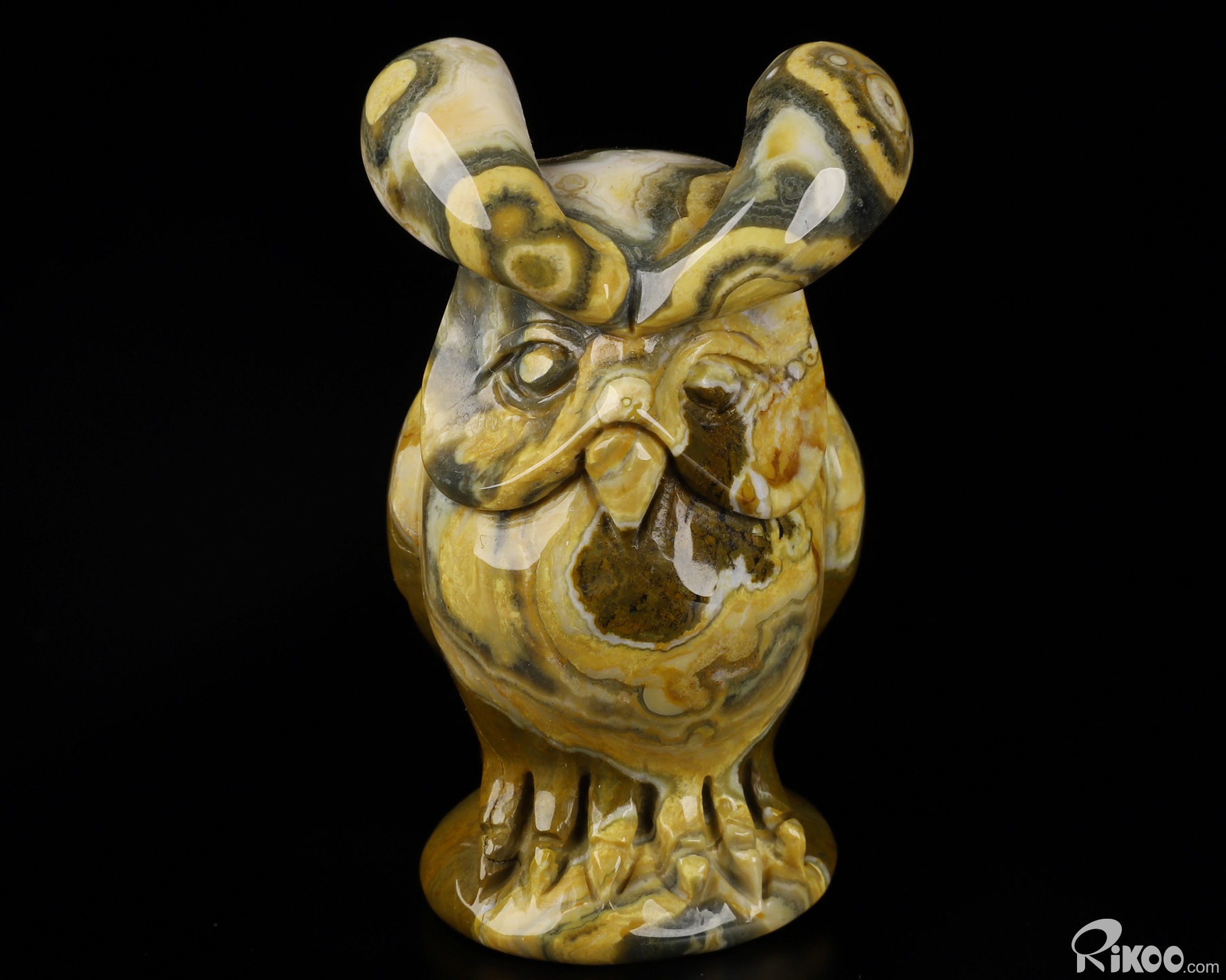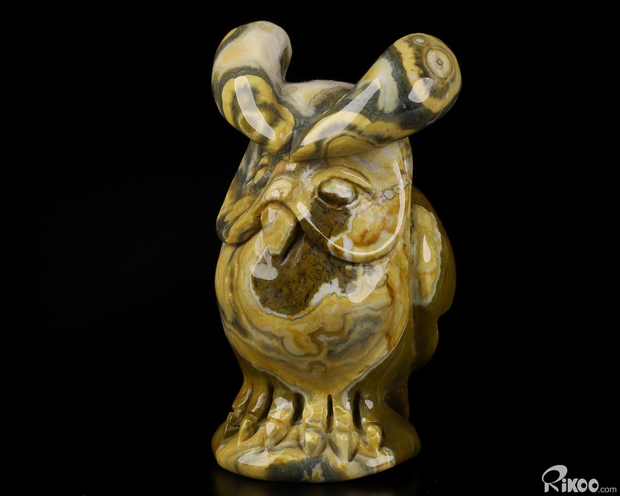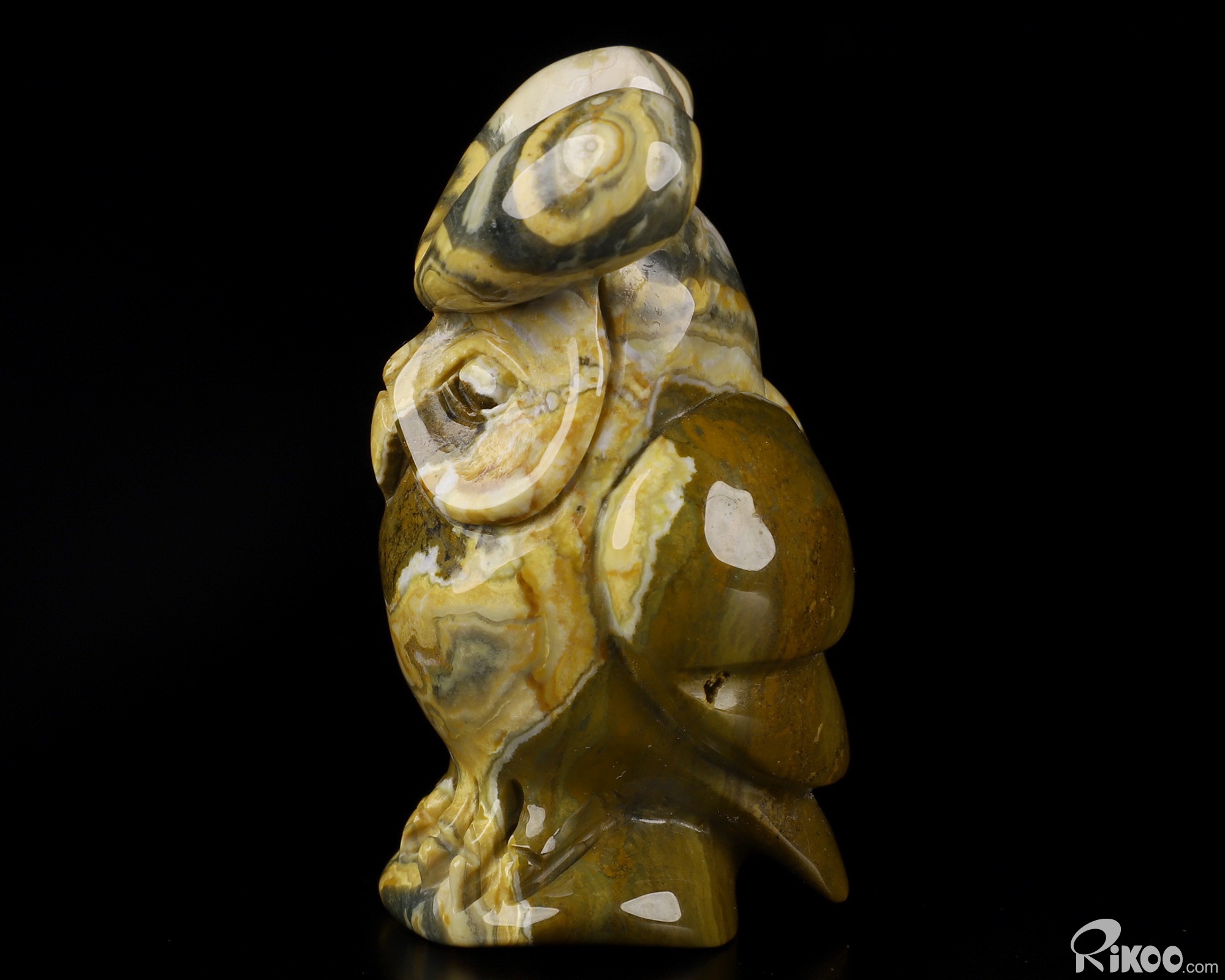 2.4" Ocean Jasper Hand Carved Crystal Owl Sculpture, Crystal Healing