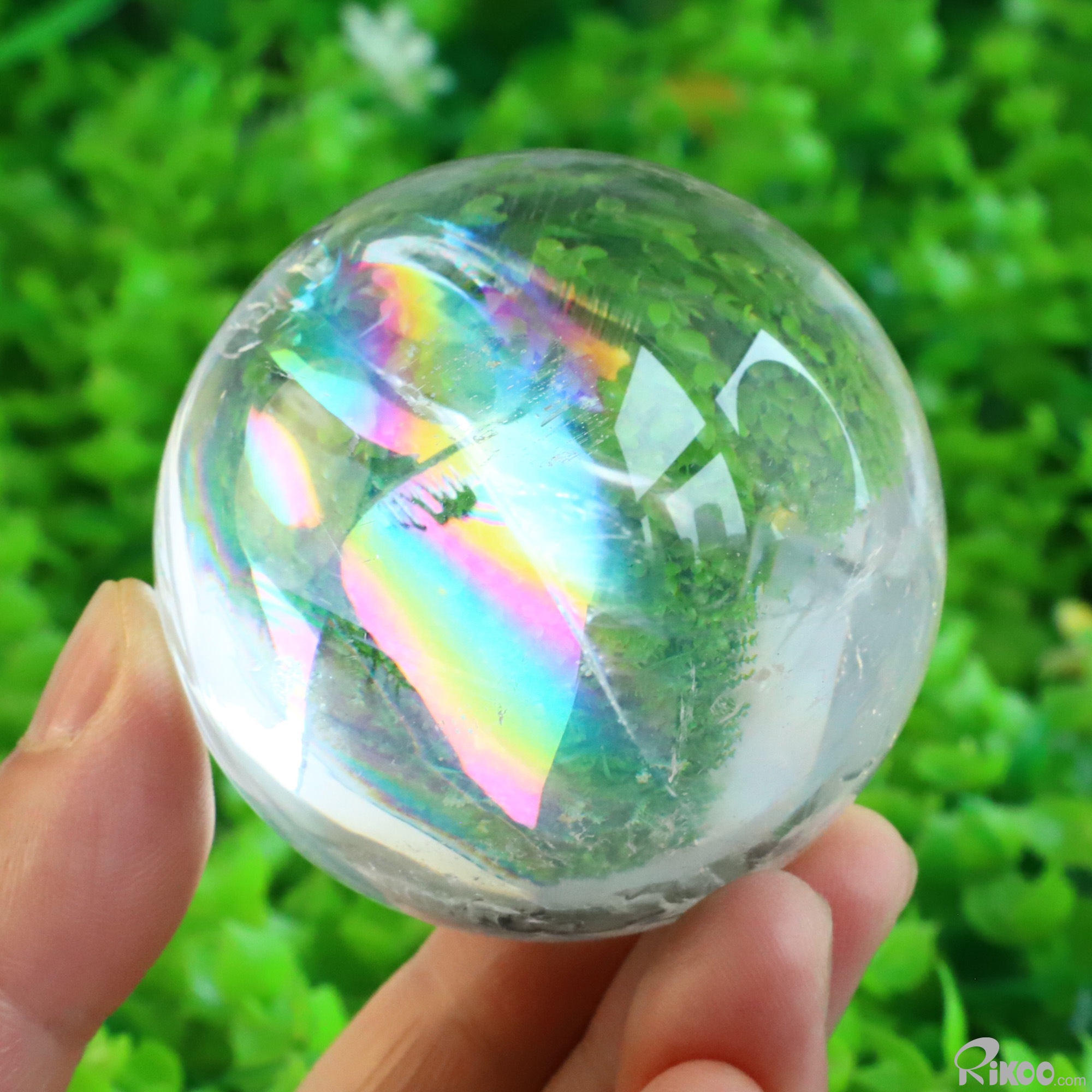 2.4" Rainbow Quartz Rock Crystal Hand Carved Crystal Ball/Sphere, Crystal Healing