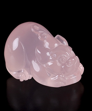 You are looking at a Rose Quartz sculpture. The sculpture is 2.4 inches long.