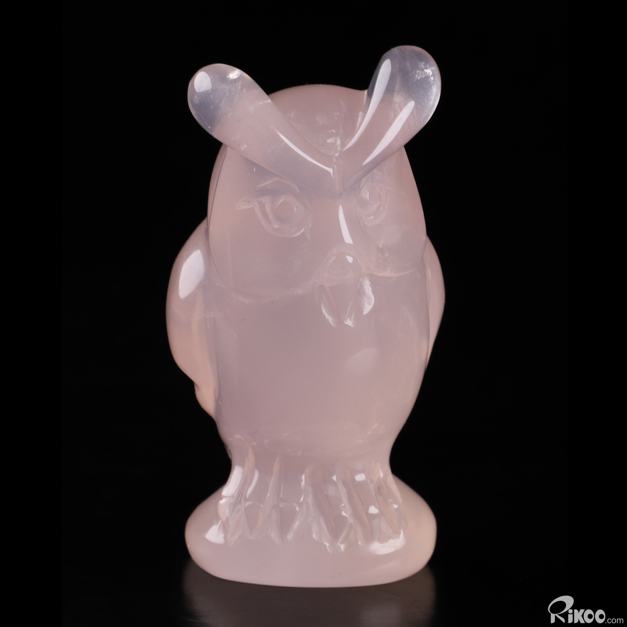 2.4" Rose Quartz Hand Carved Crystal Owl Sculpture, Crystal Healing