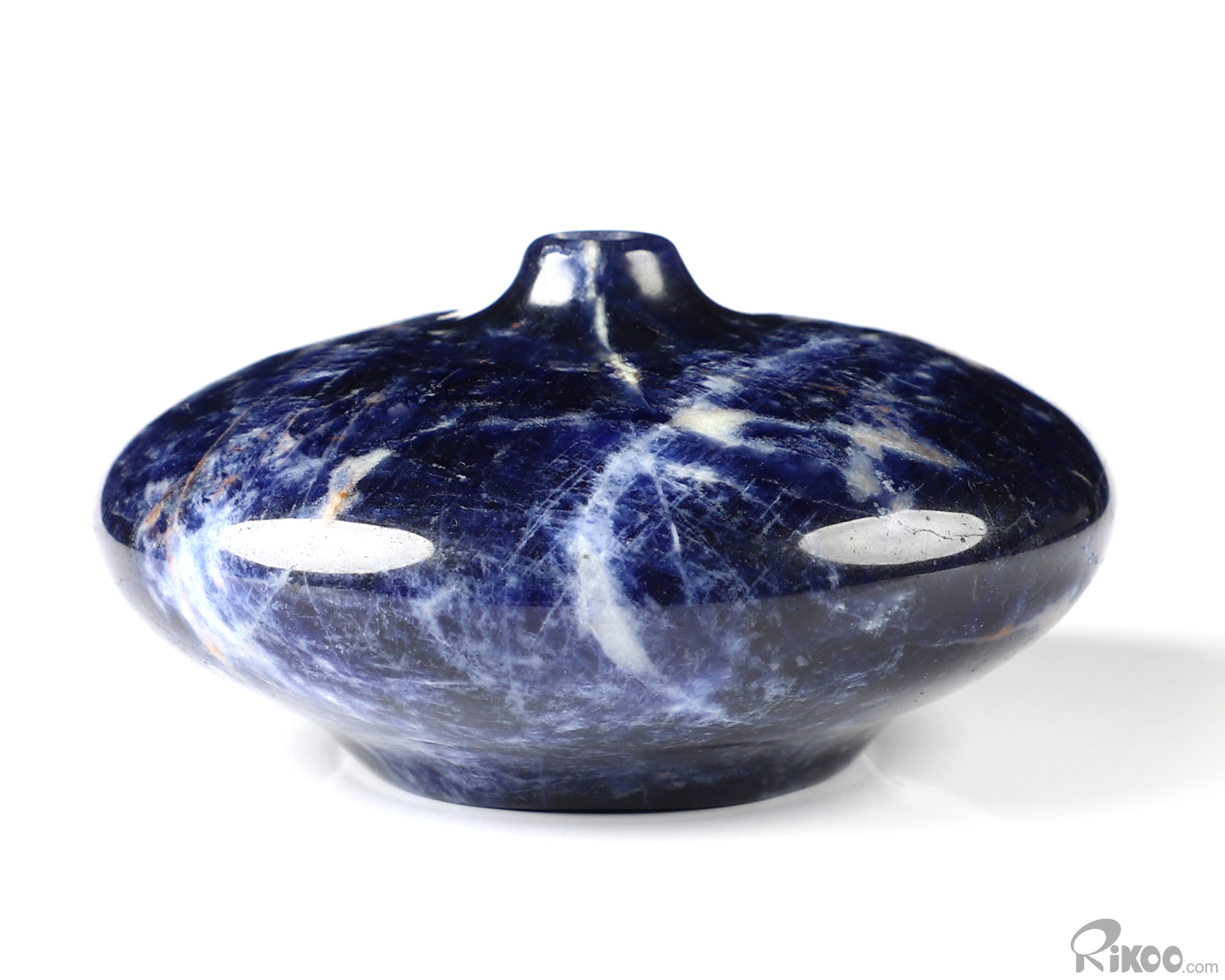 This vase with limited functionality is mainly for display.Sodalite unites logic with intuition and opens spiritual perception, bringing information from the higher mind down to the physical level. This stone stimulates the pineal gland and the third eye and deepens meditation. When in sodalite-enhanced meditation, the mind can be used to understand the circumstances in which you find yourself. This stone instills a drive for truth and an urge toward idealism, making it possible to remain true to yourself and stand up for your beliefs.