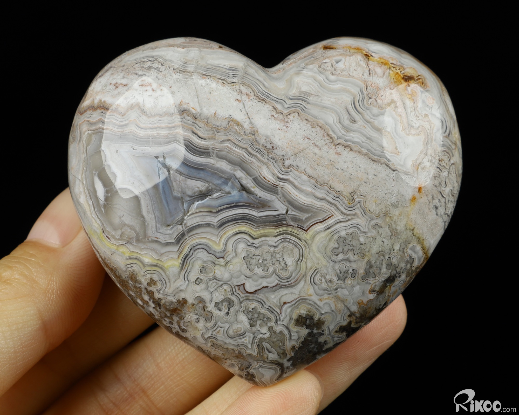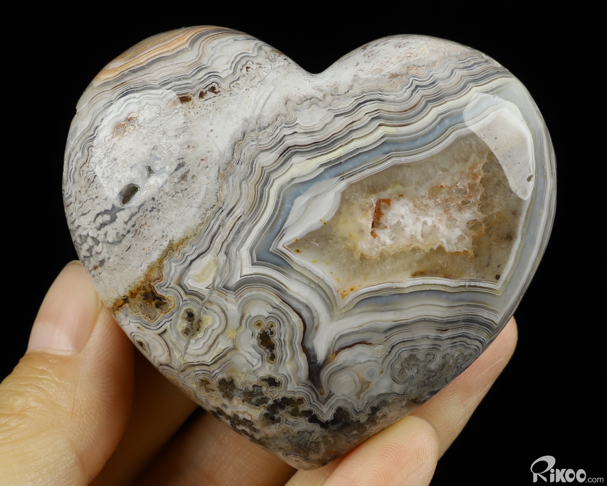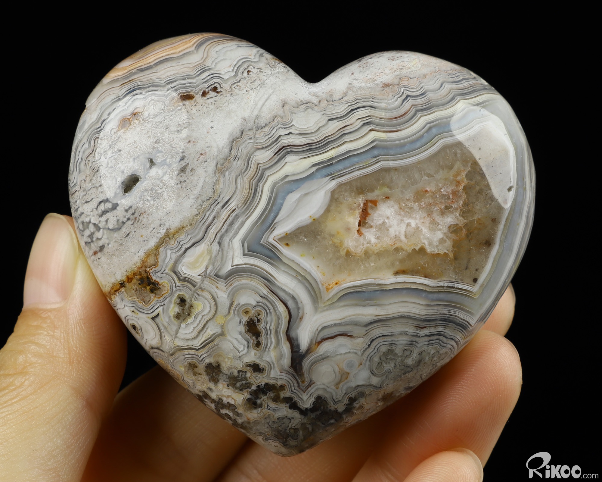 2.5" Crazy Lace Agate Carved Crystal Heart, Realistic, Crystal Healing