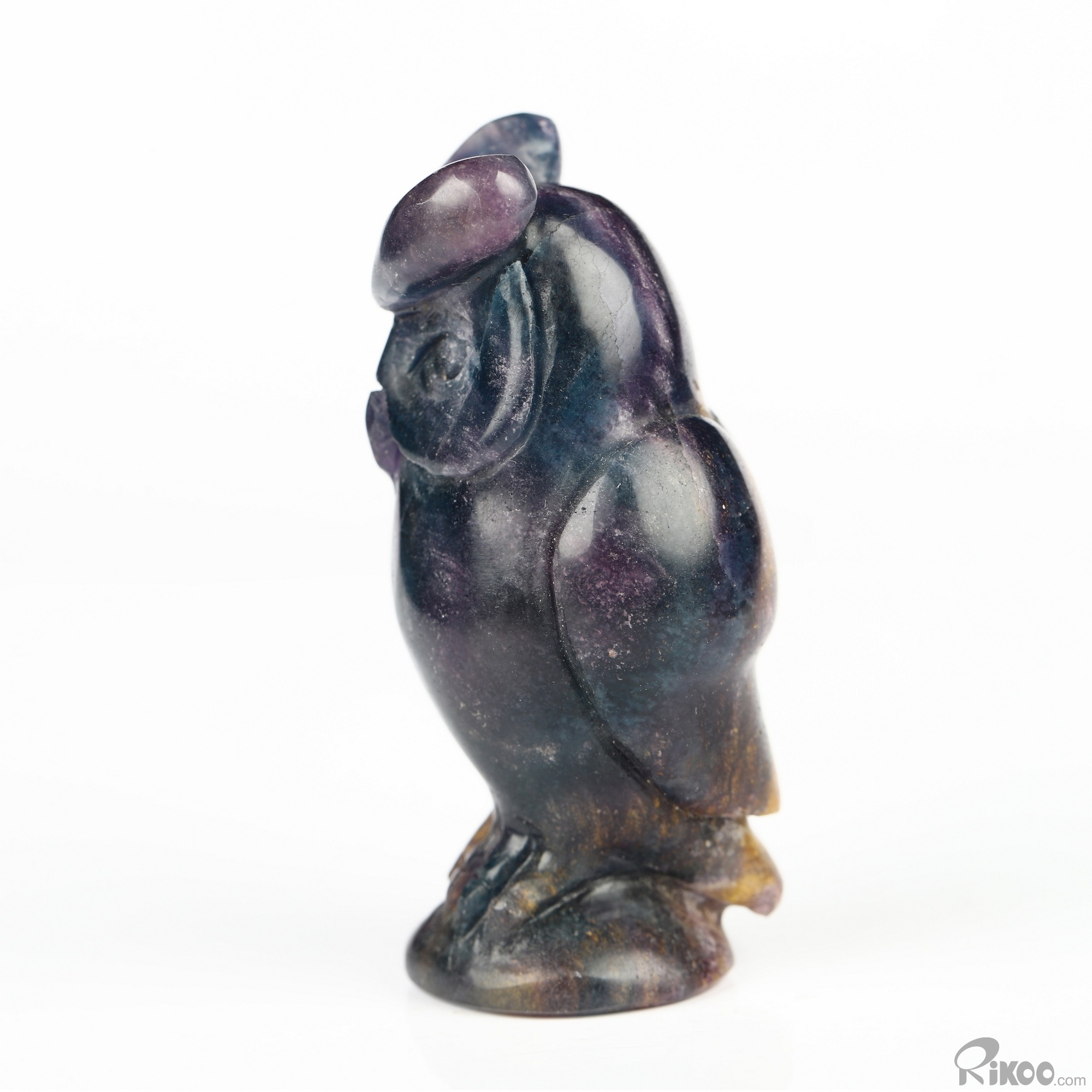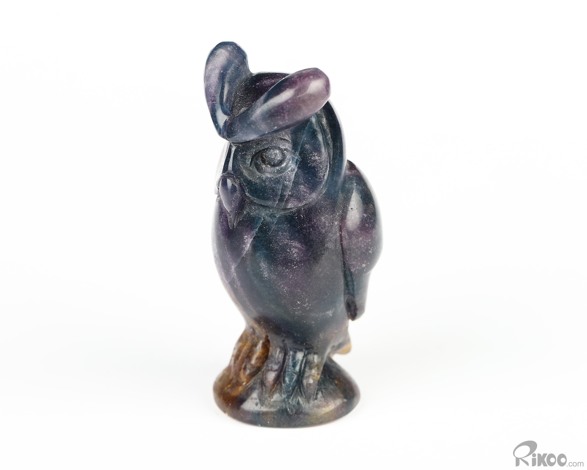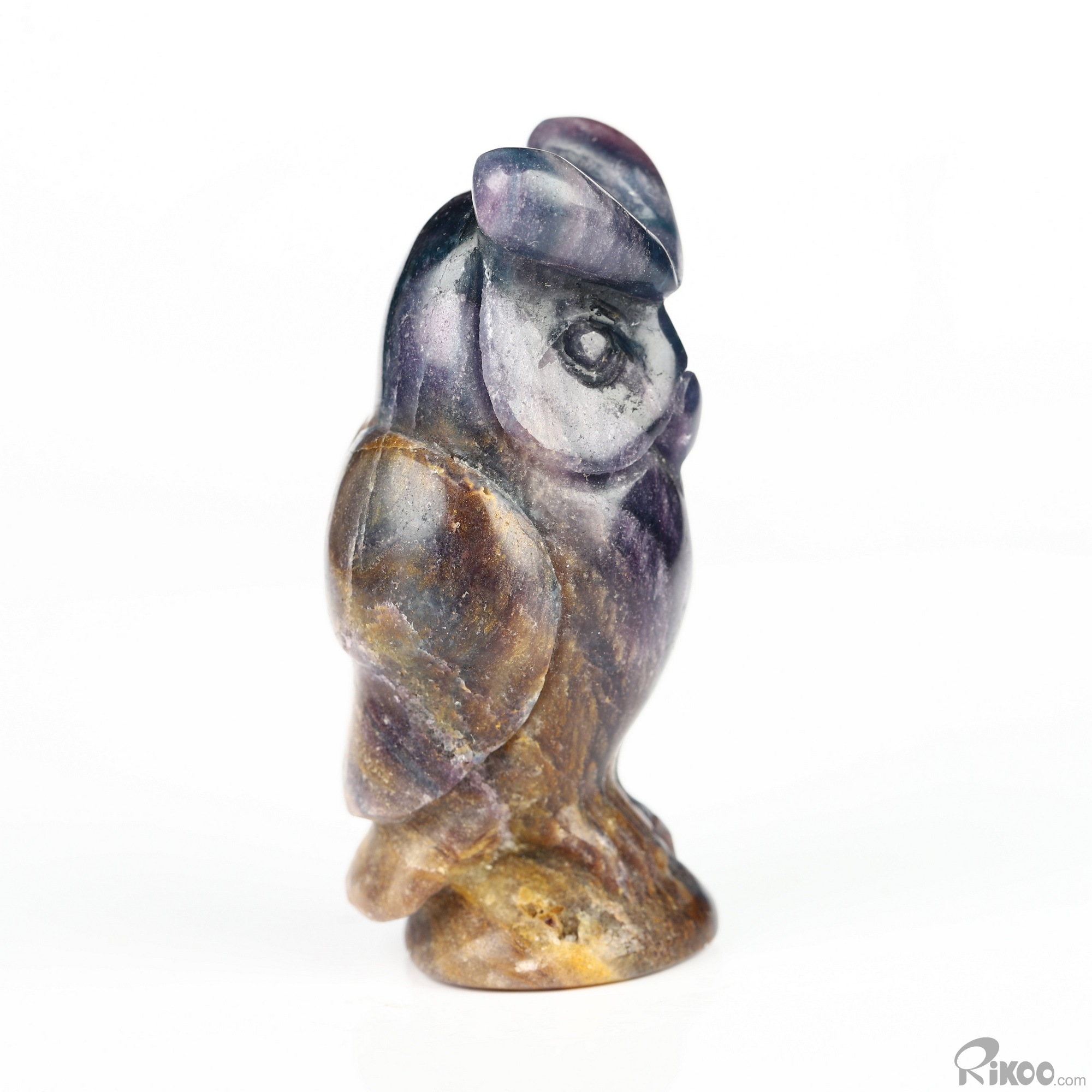 2.5" Fluorite Hand Carved Crystal Owl Sculpture, Crystal Healing