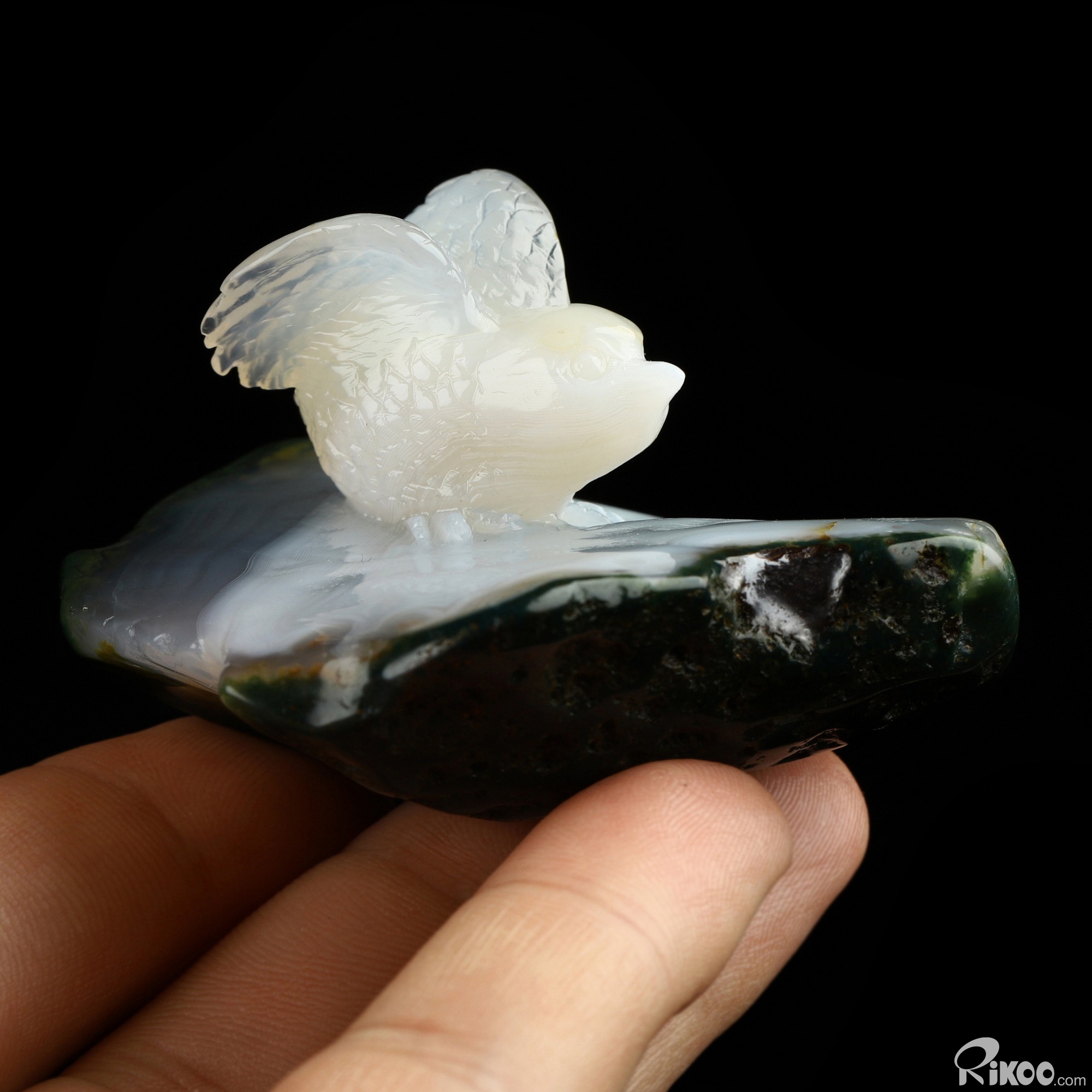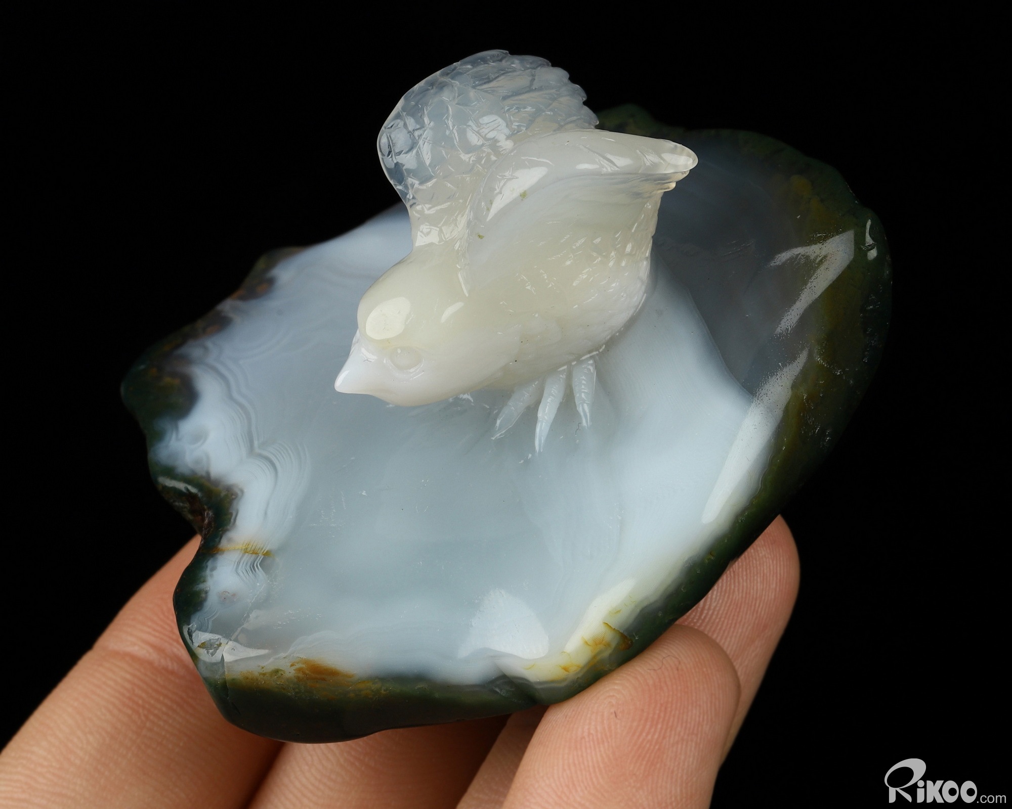 2.5" Gray & White Agate Hand Carved Crystal Animal Sculpture, Crystal Healing